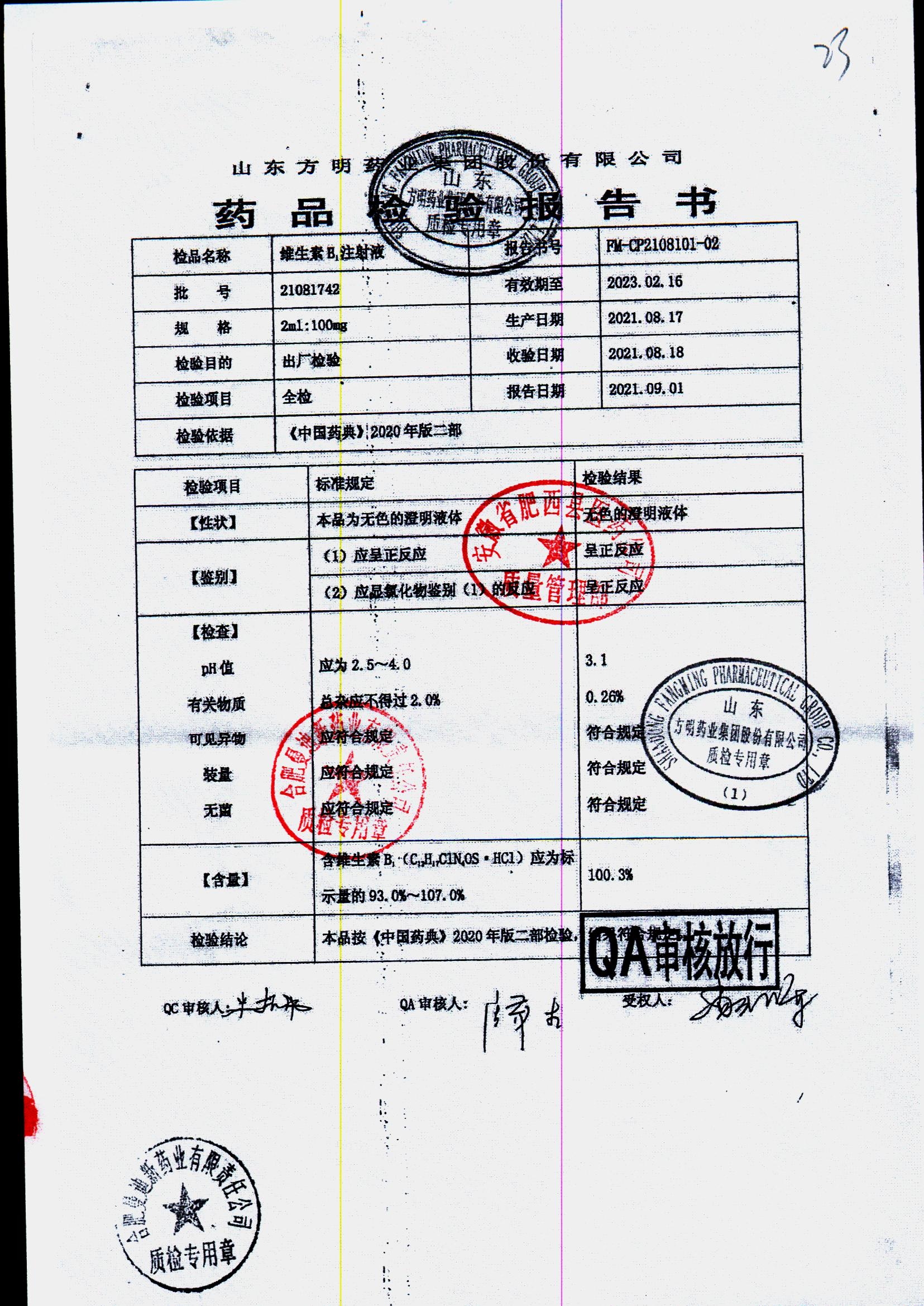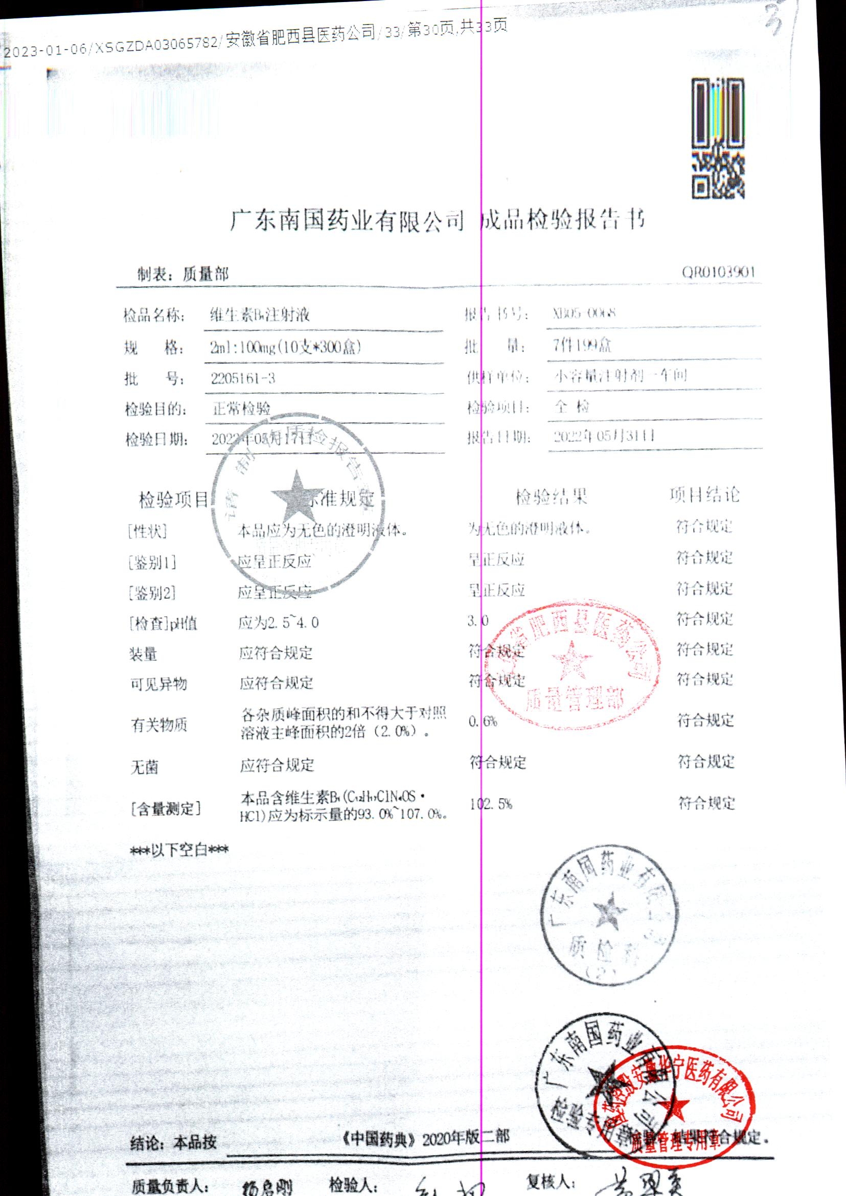 维生素B1注射液 | 2ml:100mg*10支 | 2205161-3 | 查看详情 |