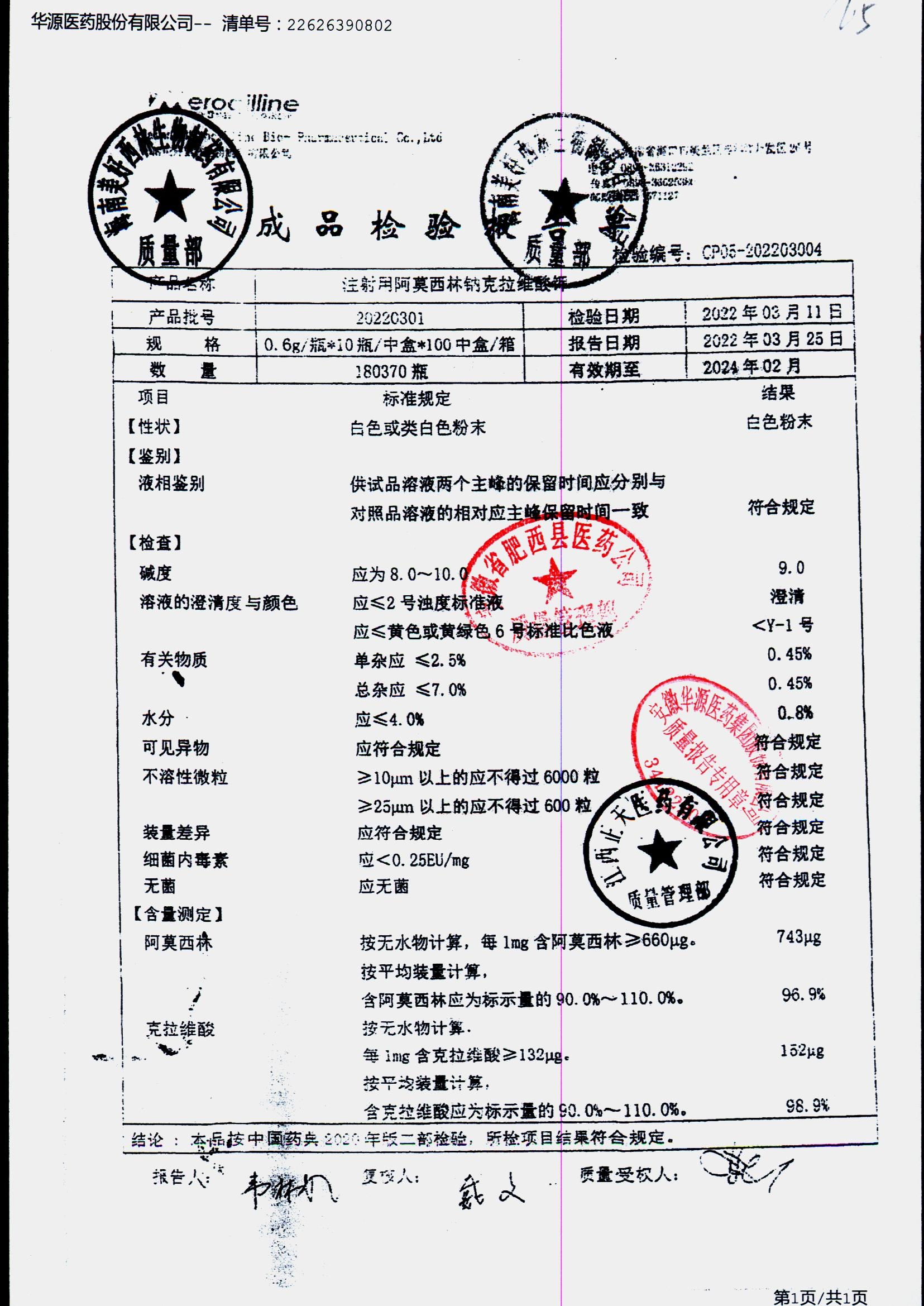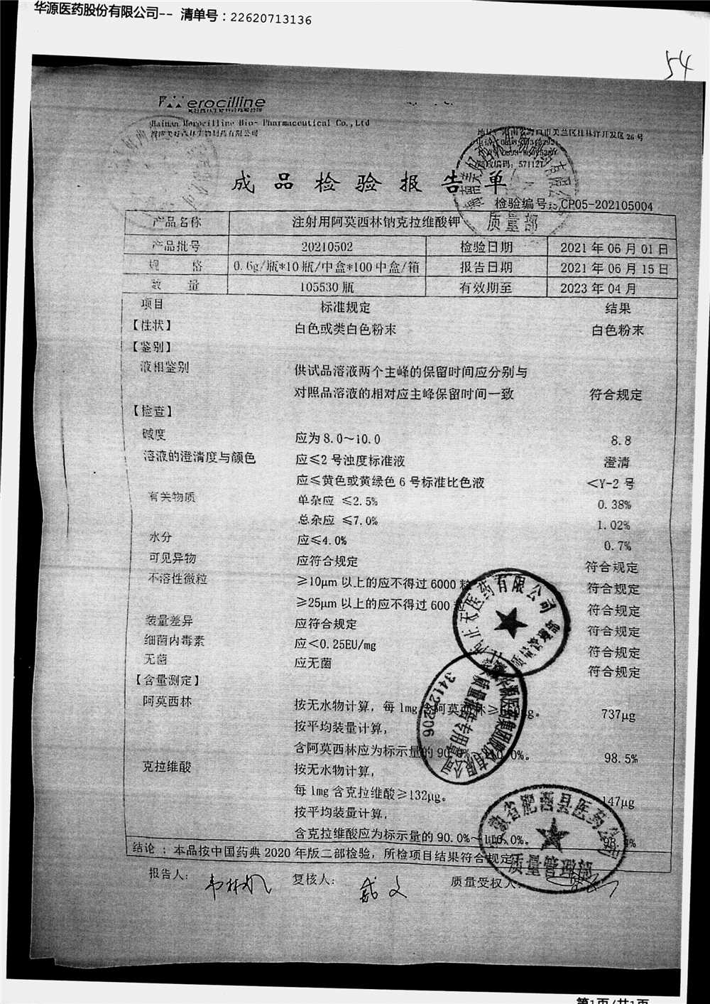 药检报告