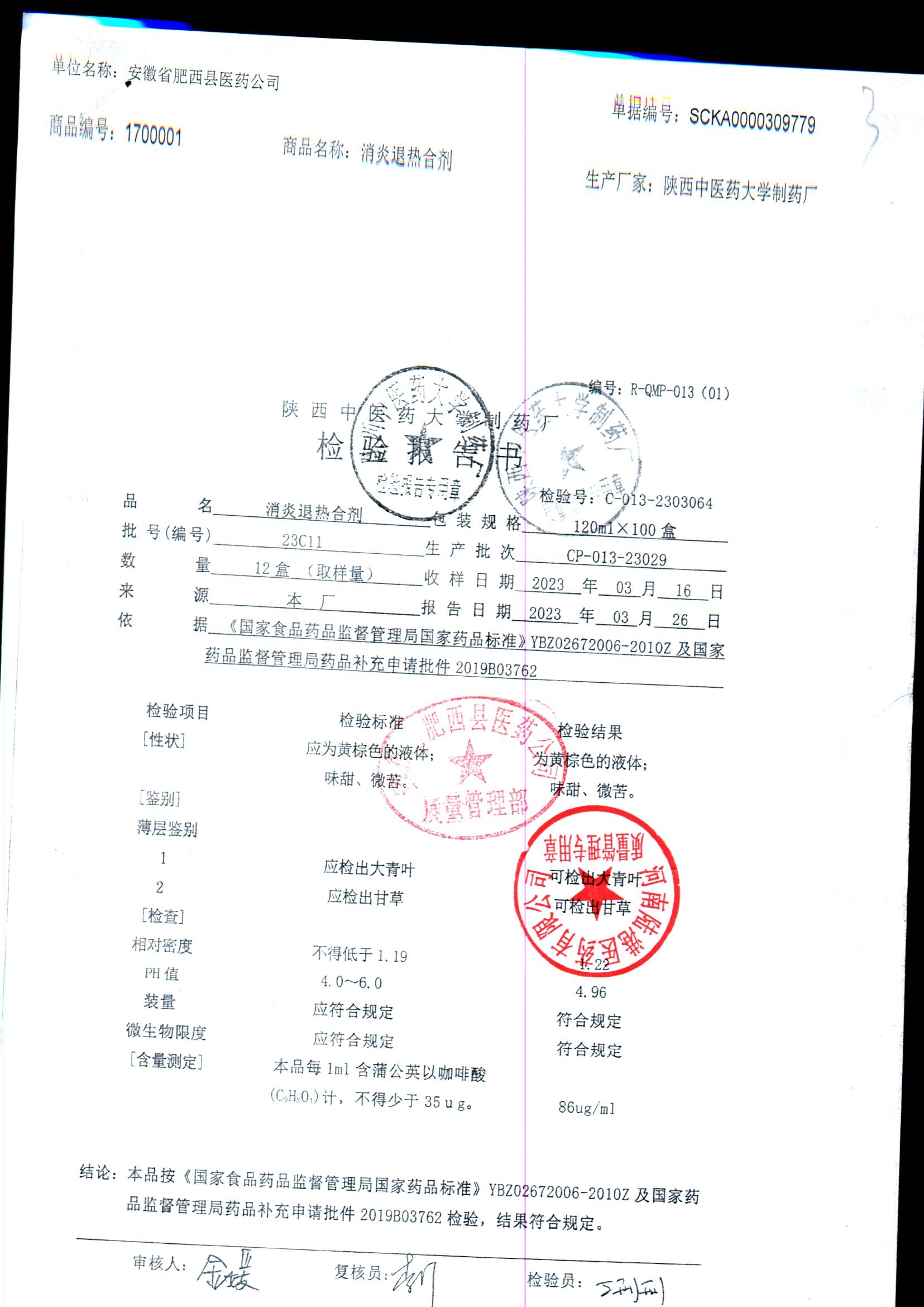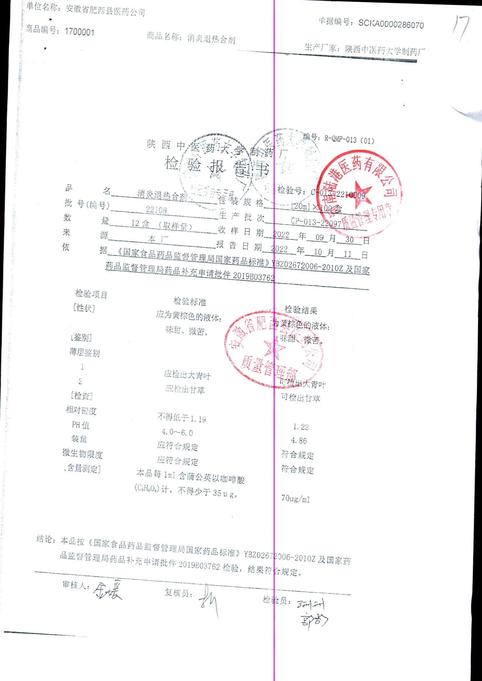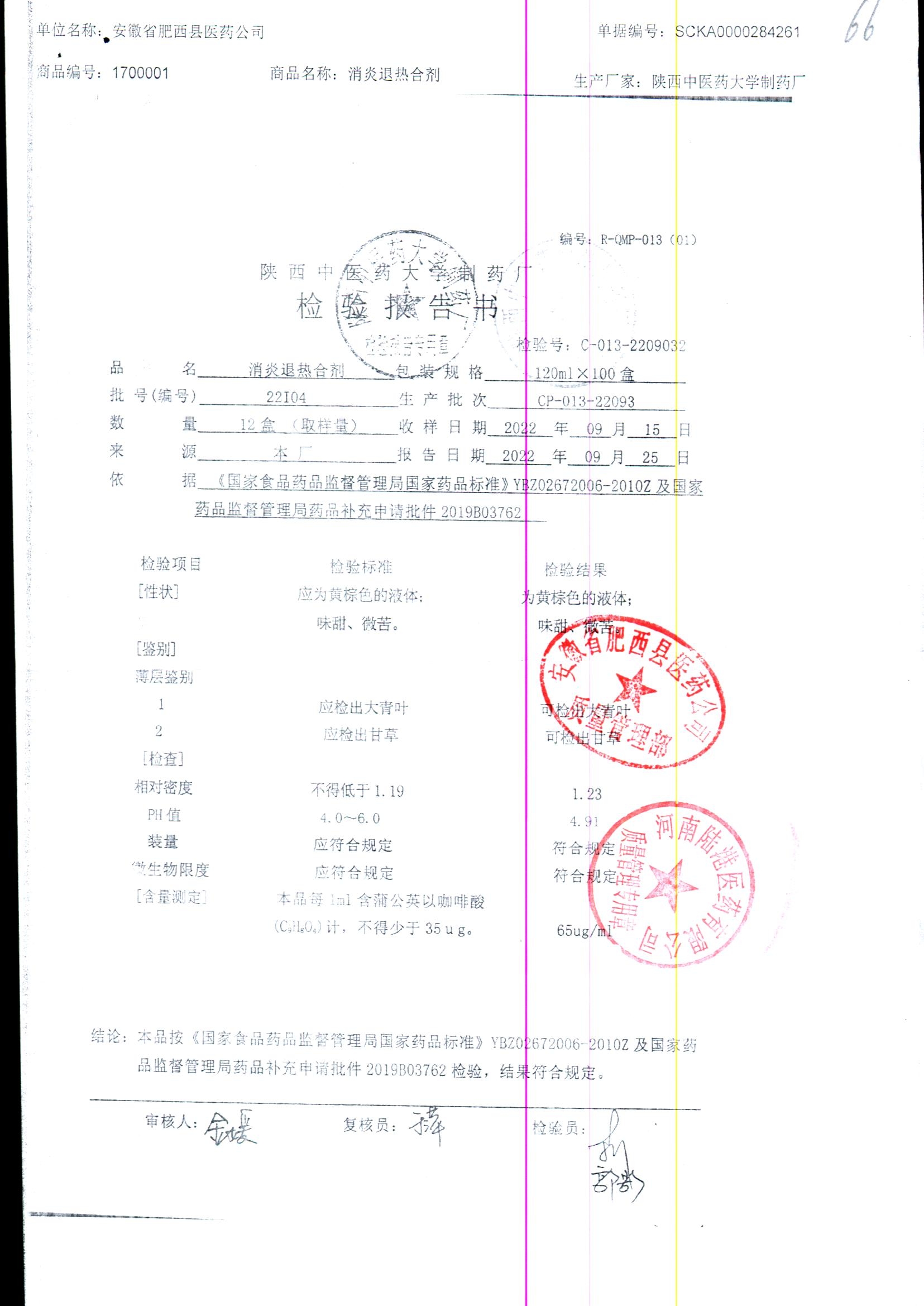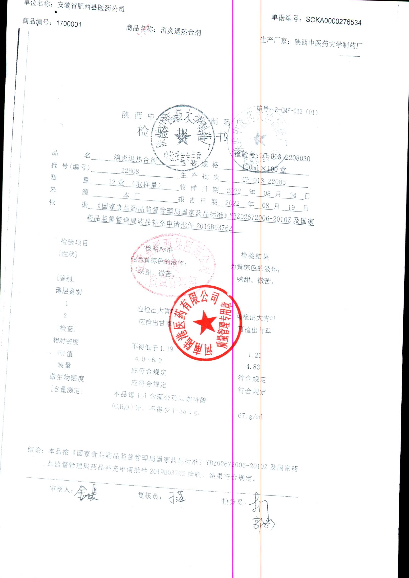 消炎退热合剂 | 120ml | 22G06 | 查看详情 |