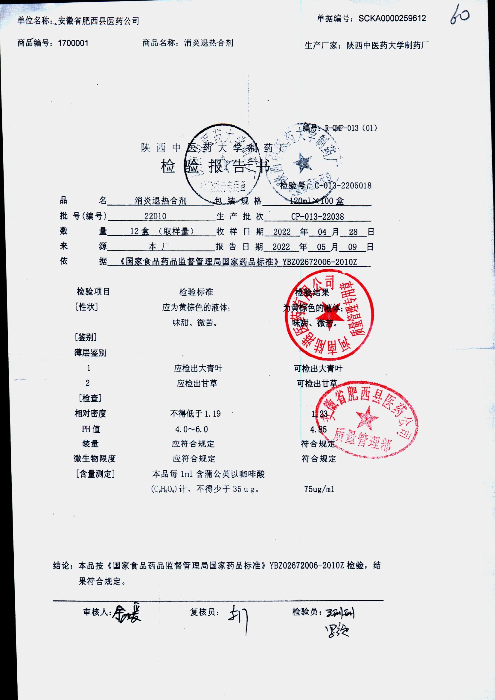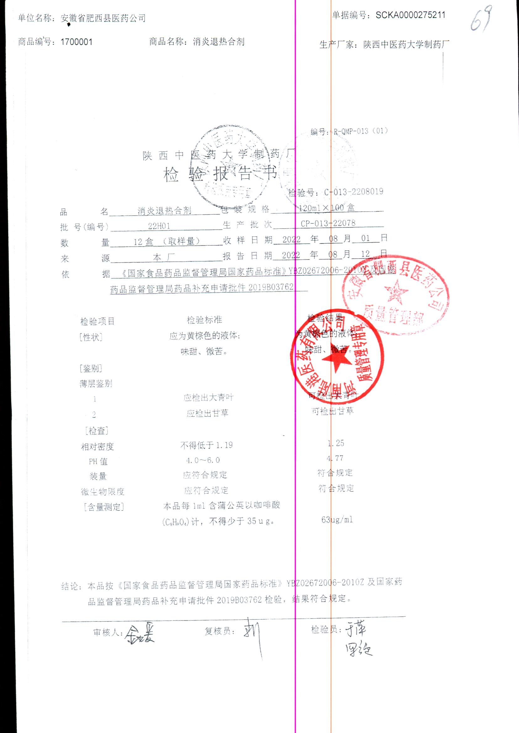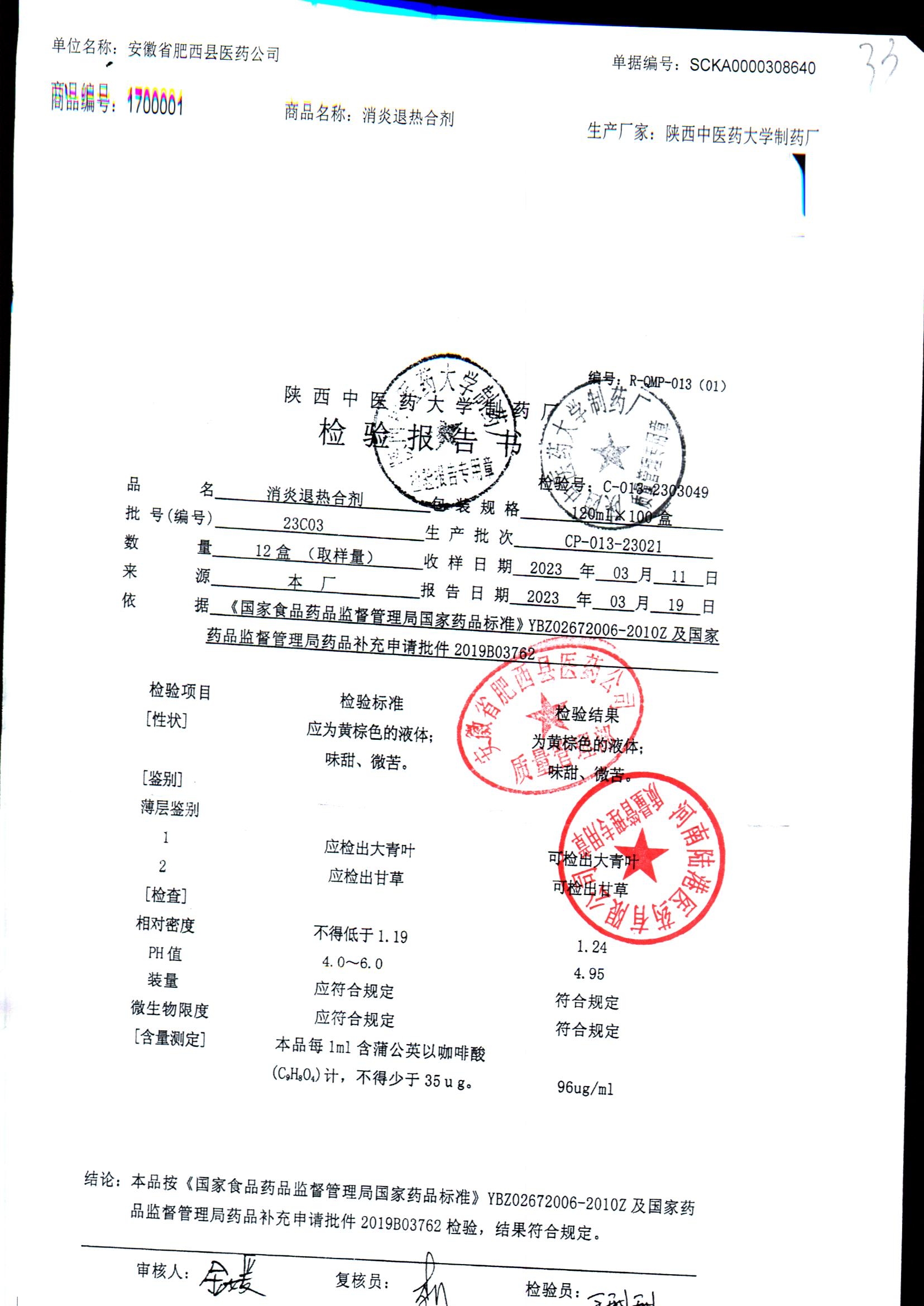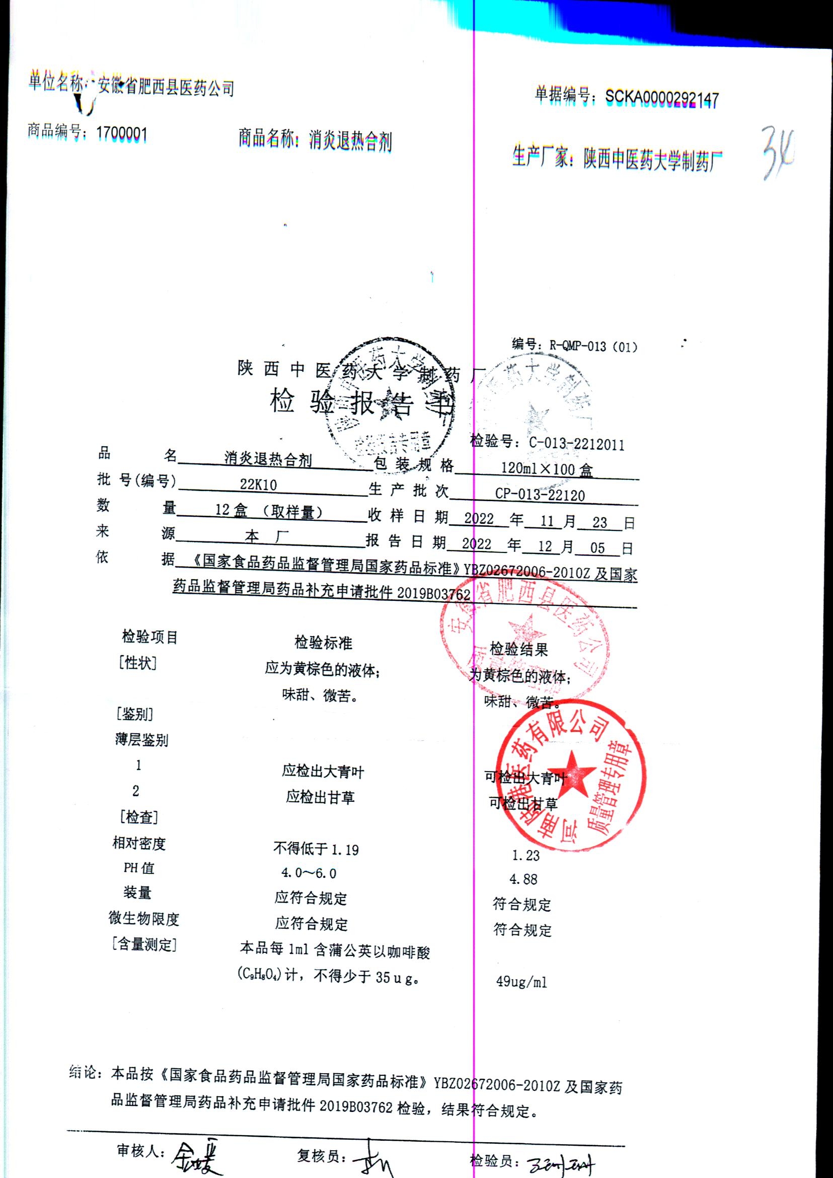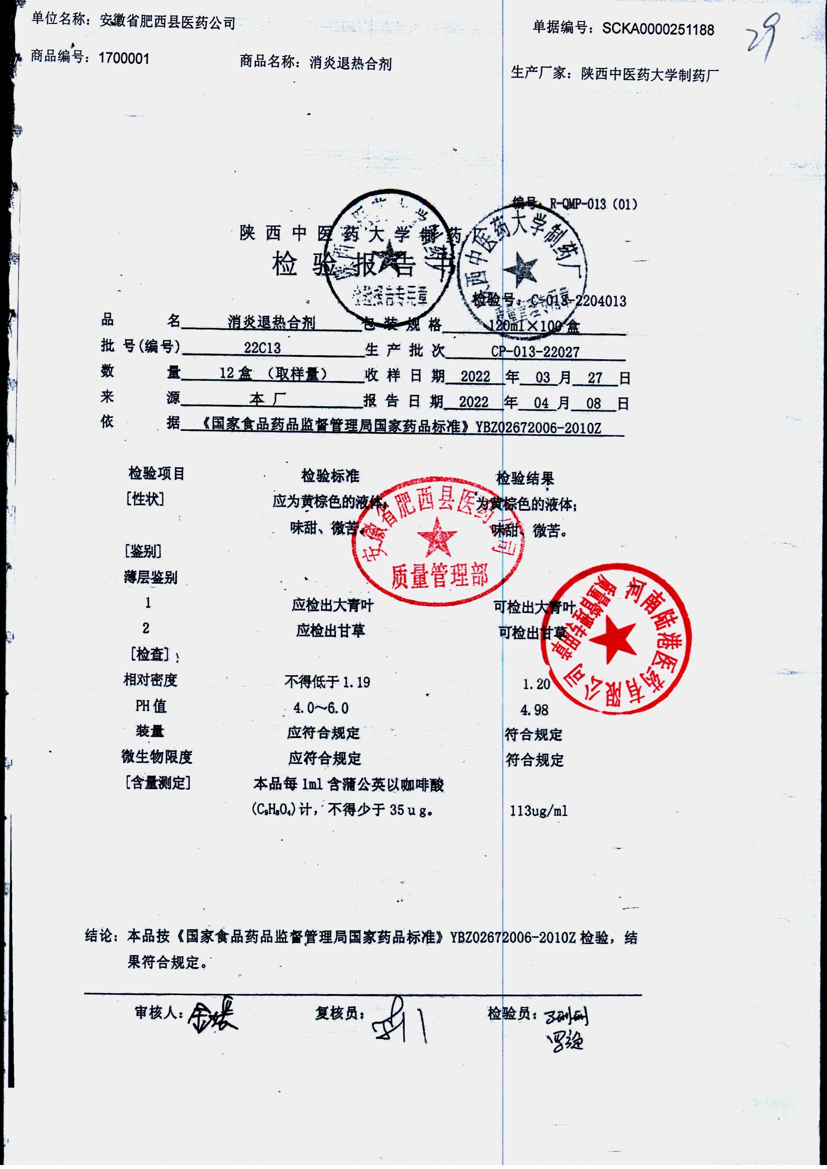消炎退热合剂 | 120ml | 22G06 | 查看详情 |