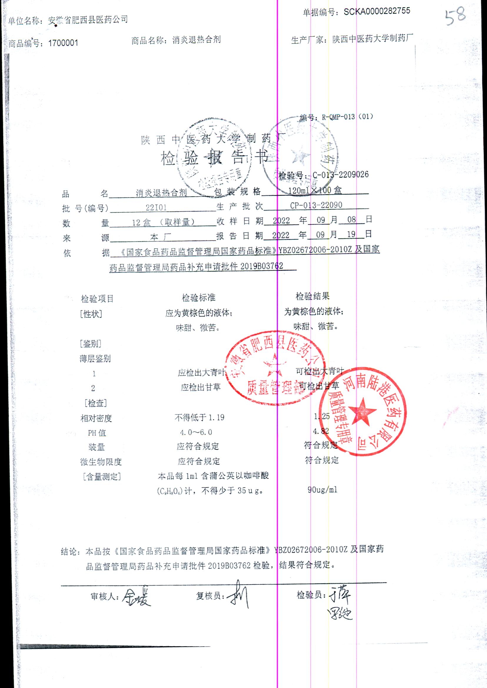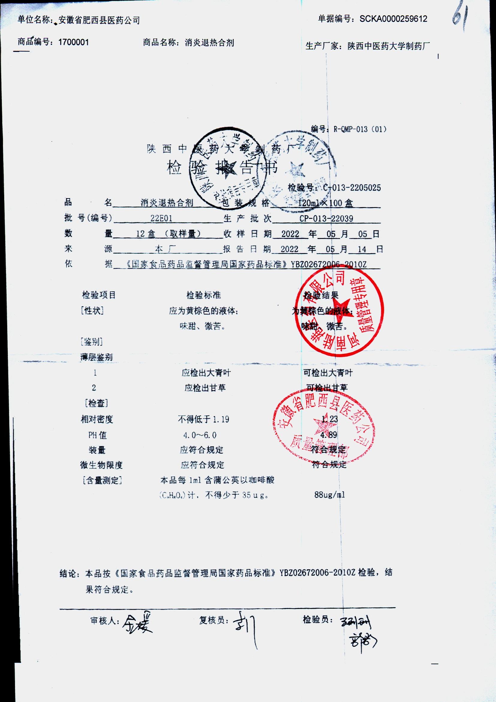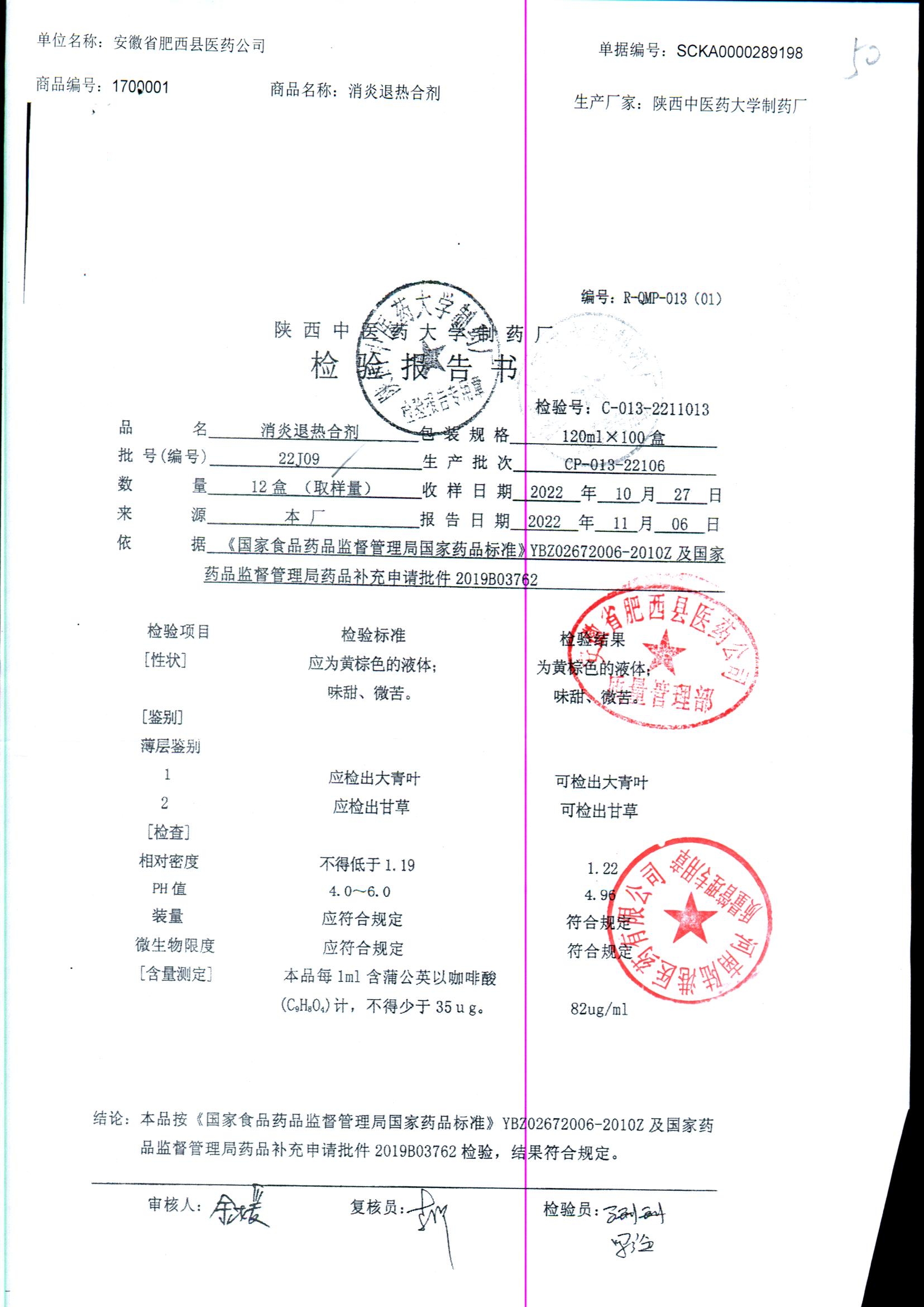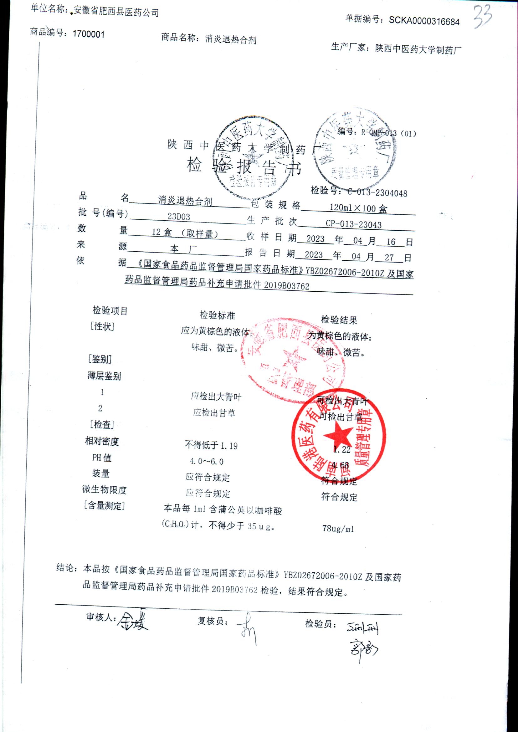 消炎退热合剂 | 120ml | 22G06 | 查看详情 |