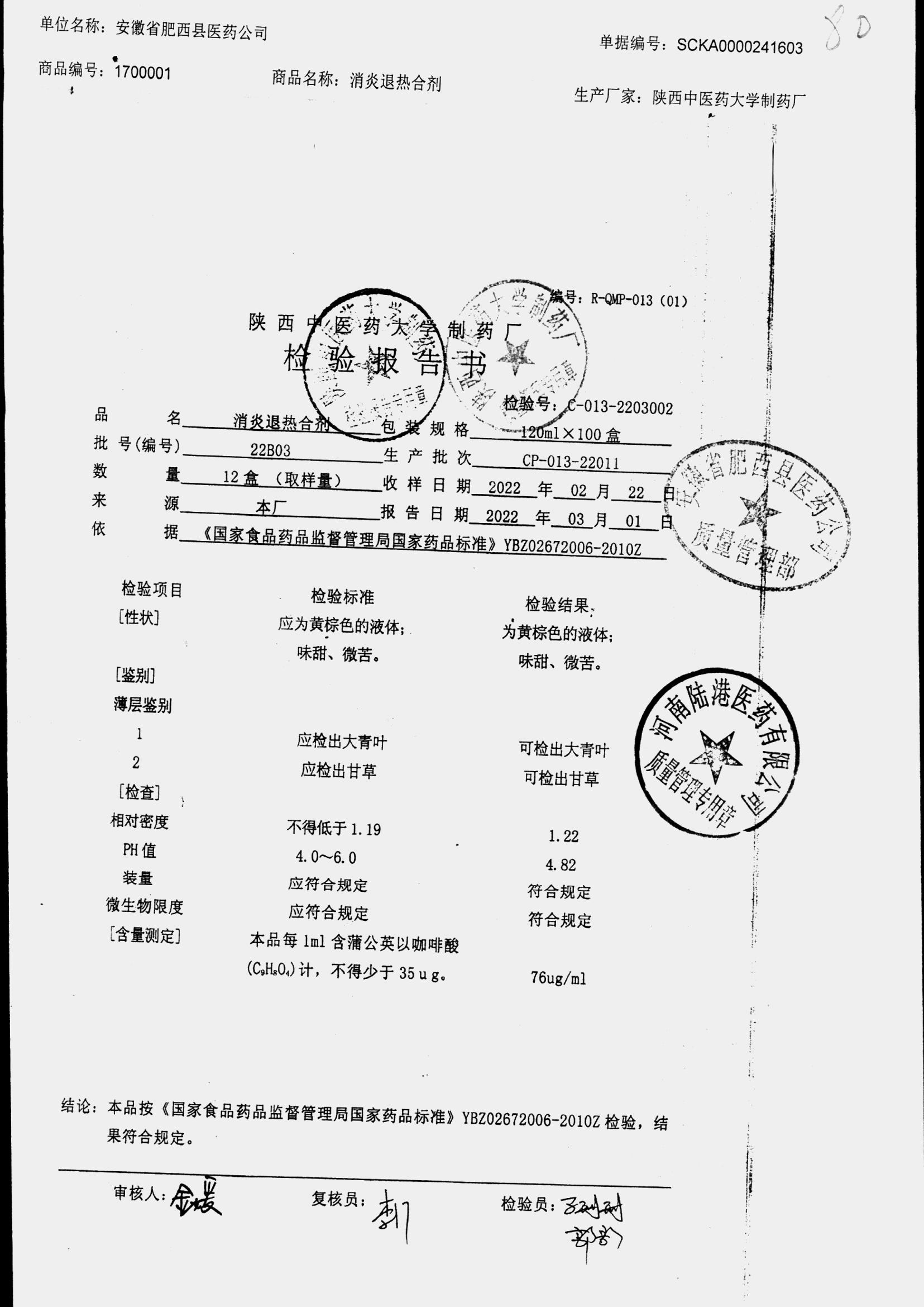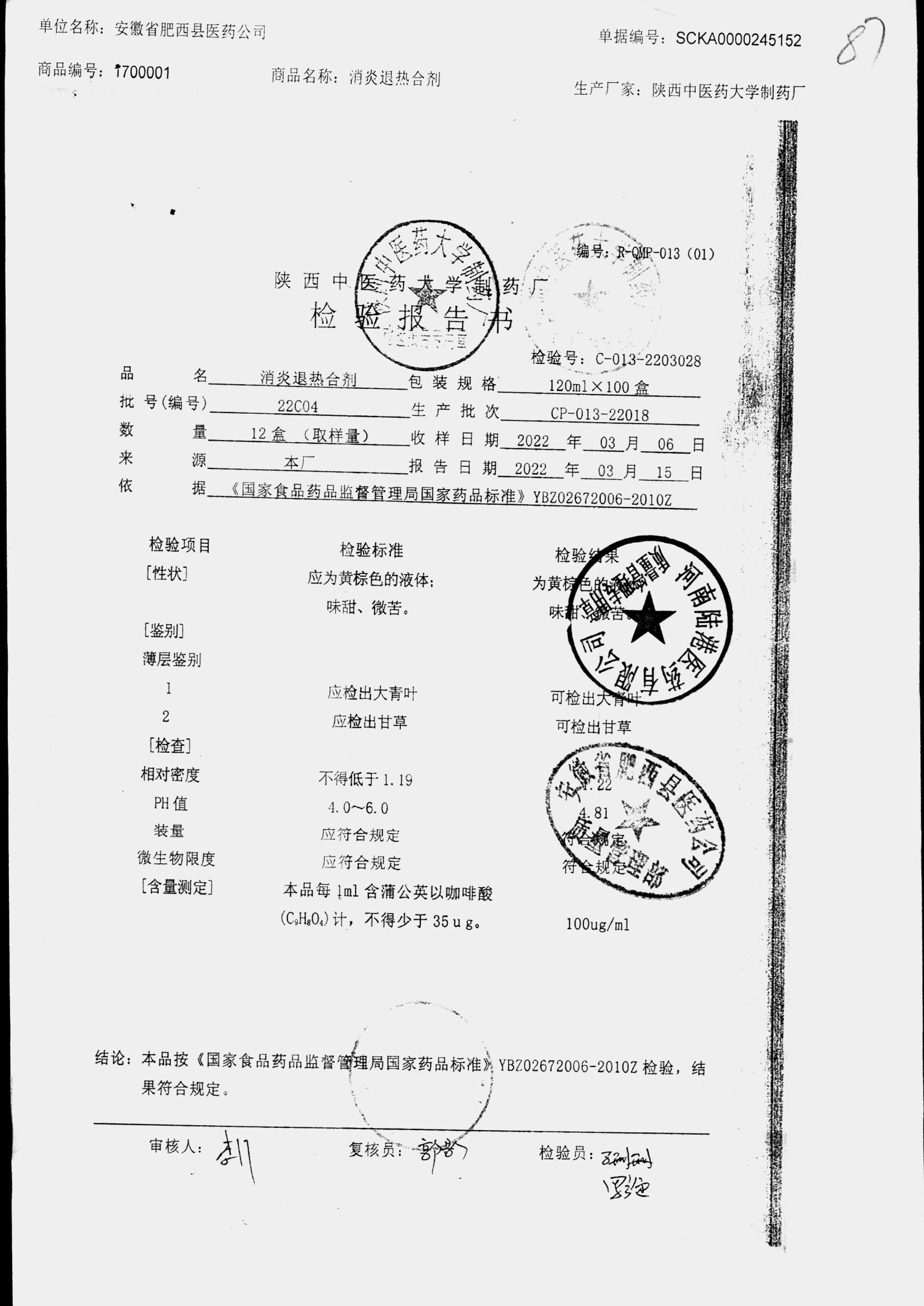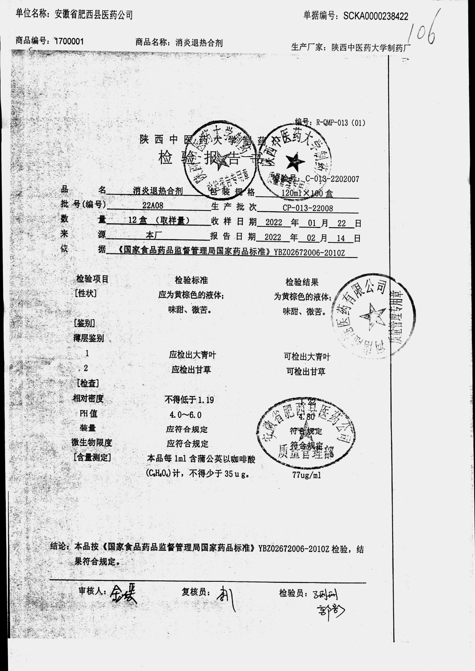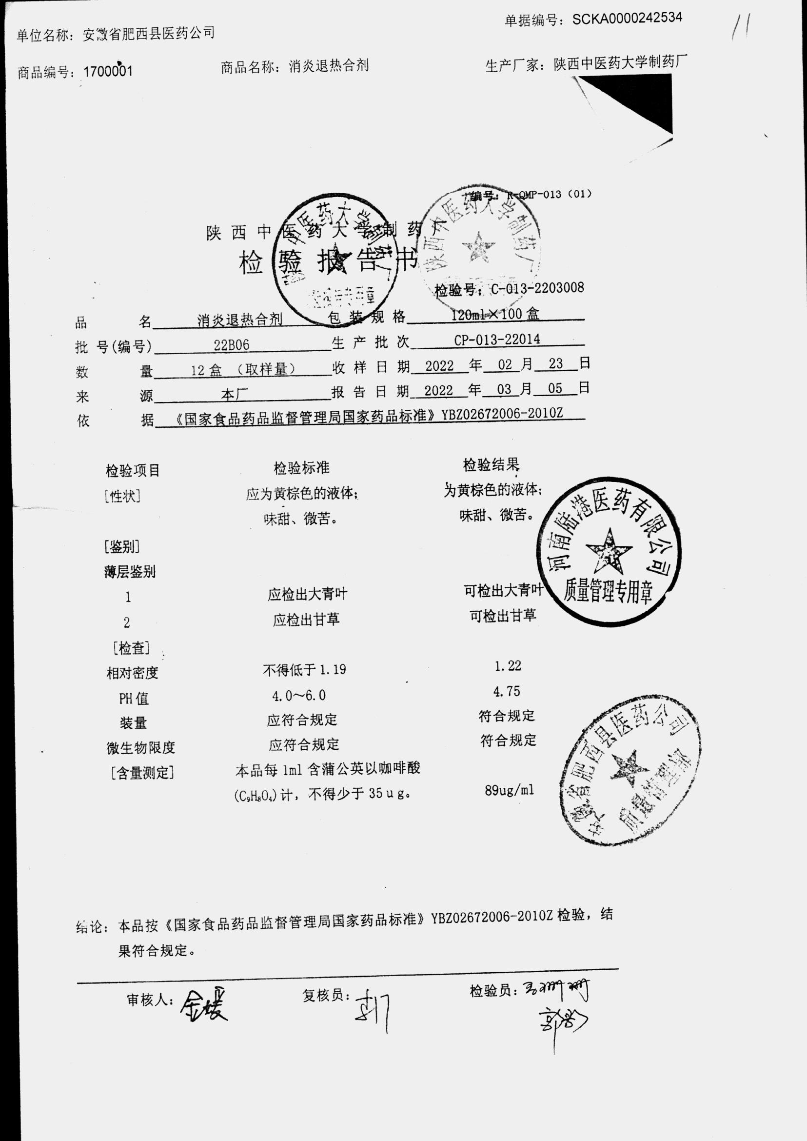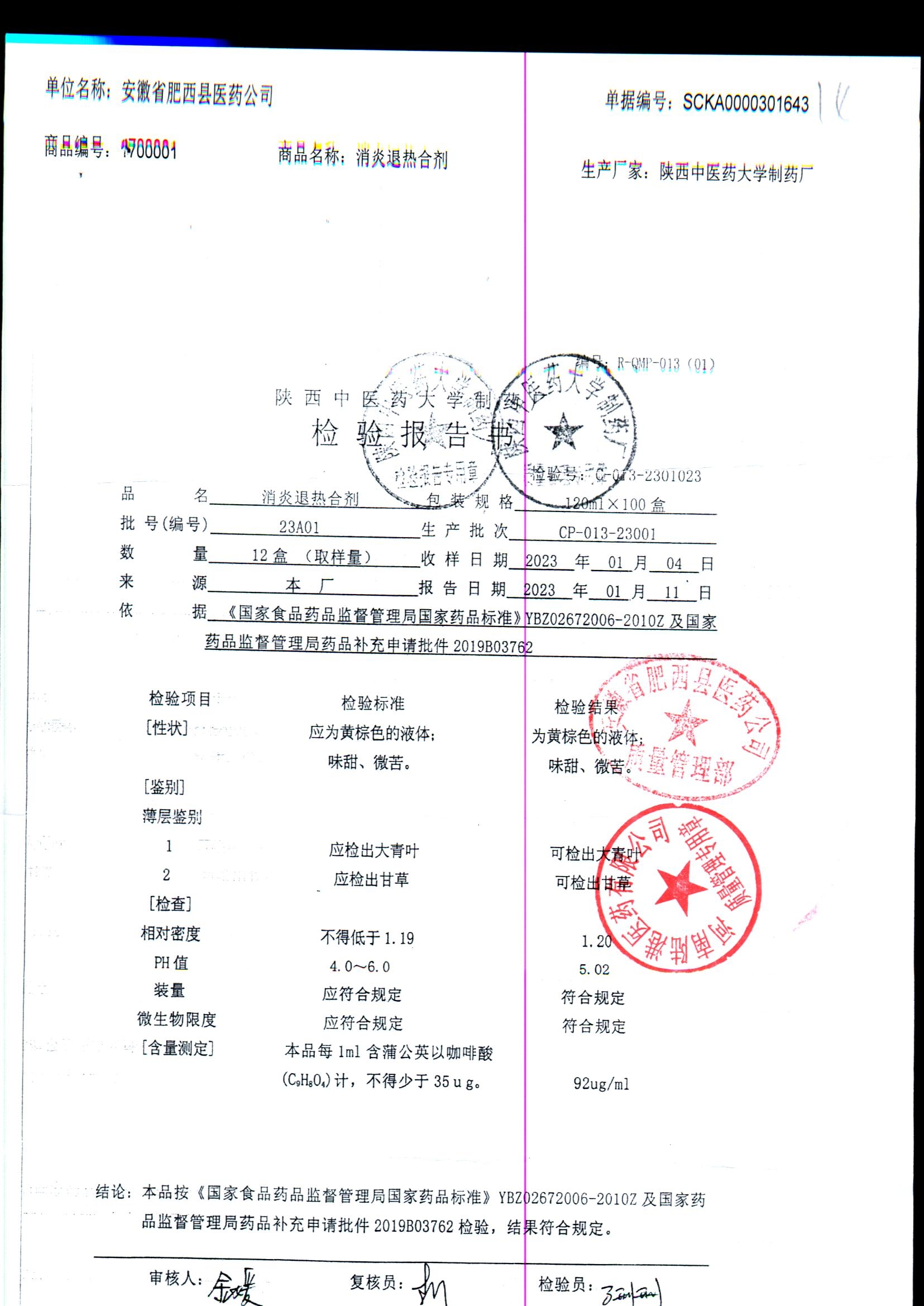 消炎退热合剂 | 120ml | 22G06 | 查看详情 |