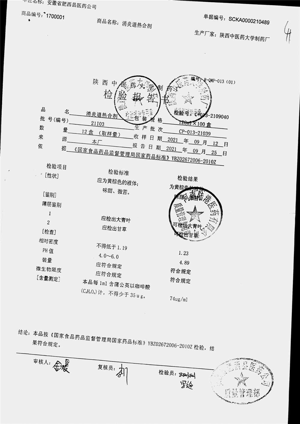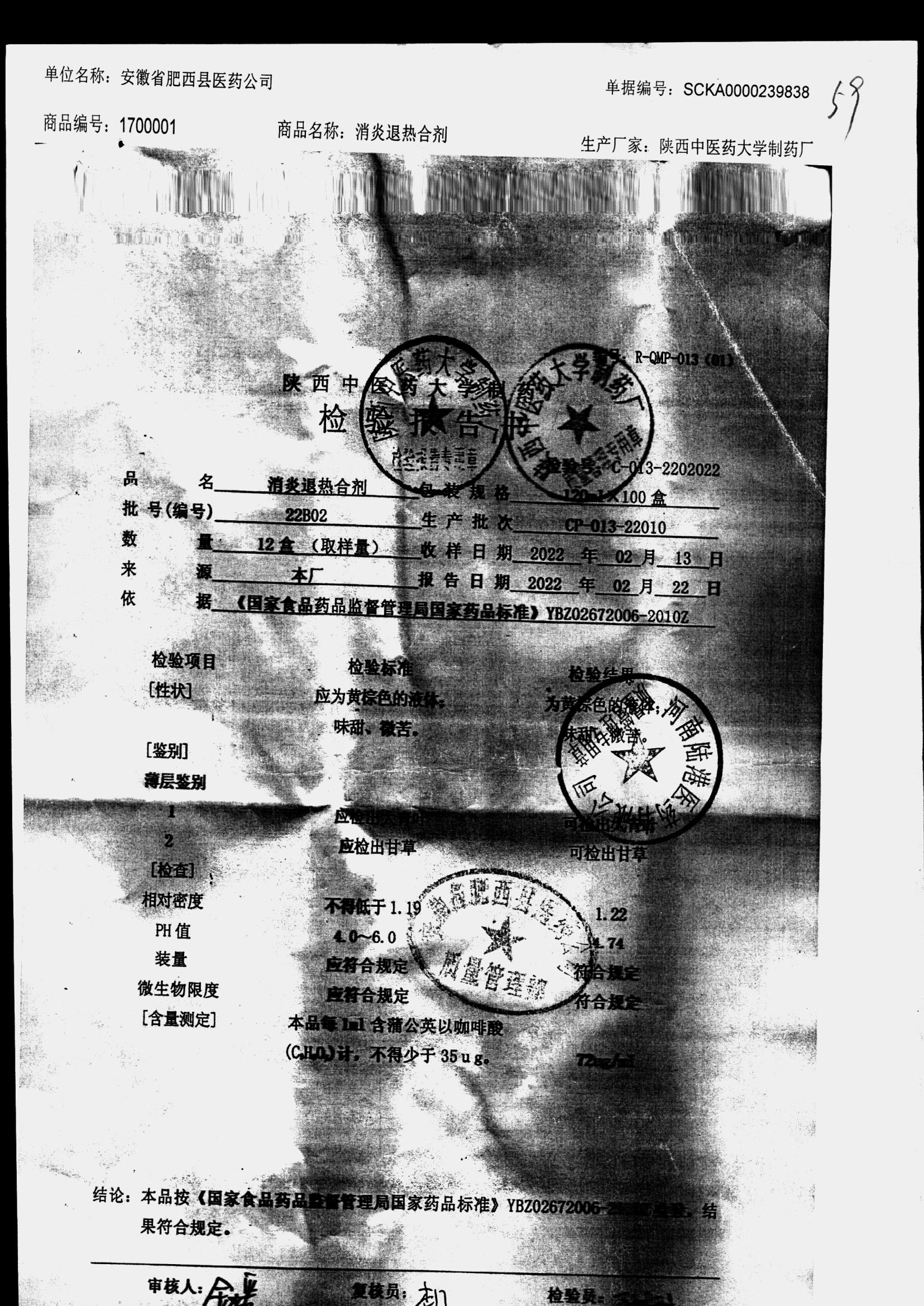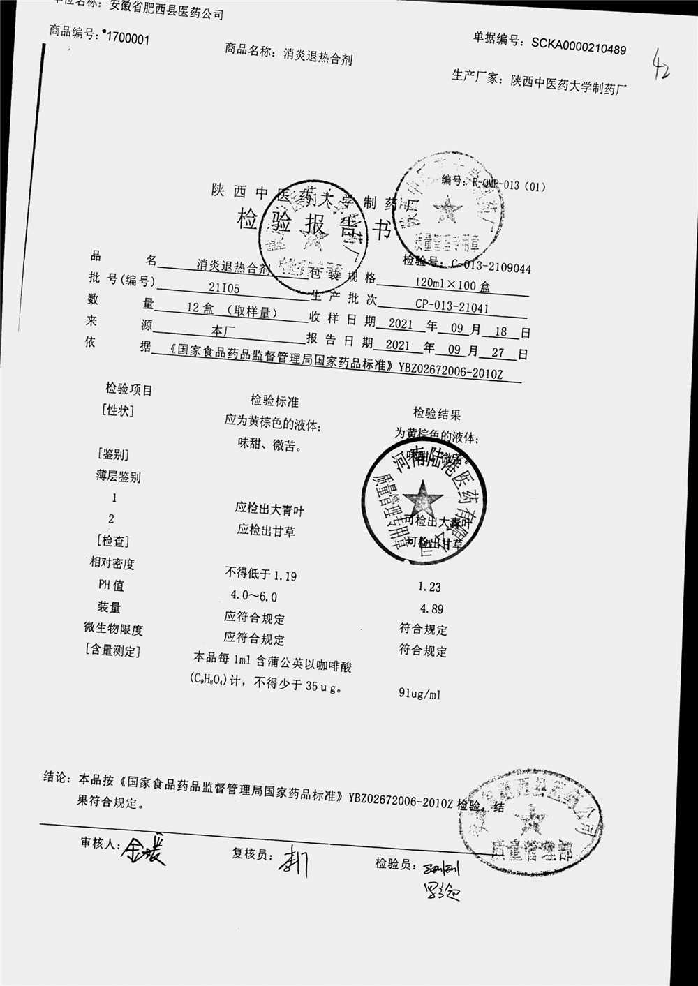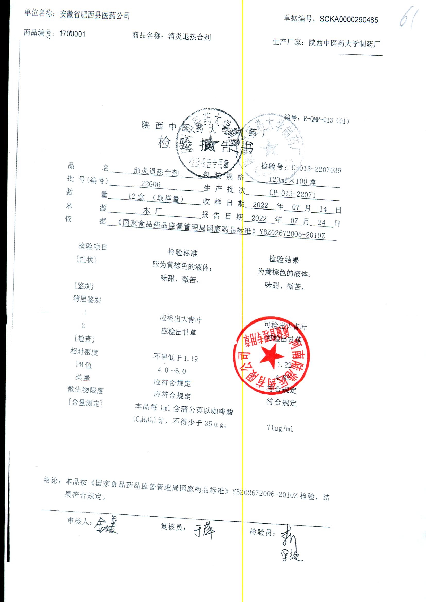 消炎退热合剂 | 120ml | 22G06 | 查看详情 |