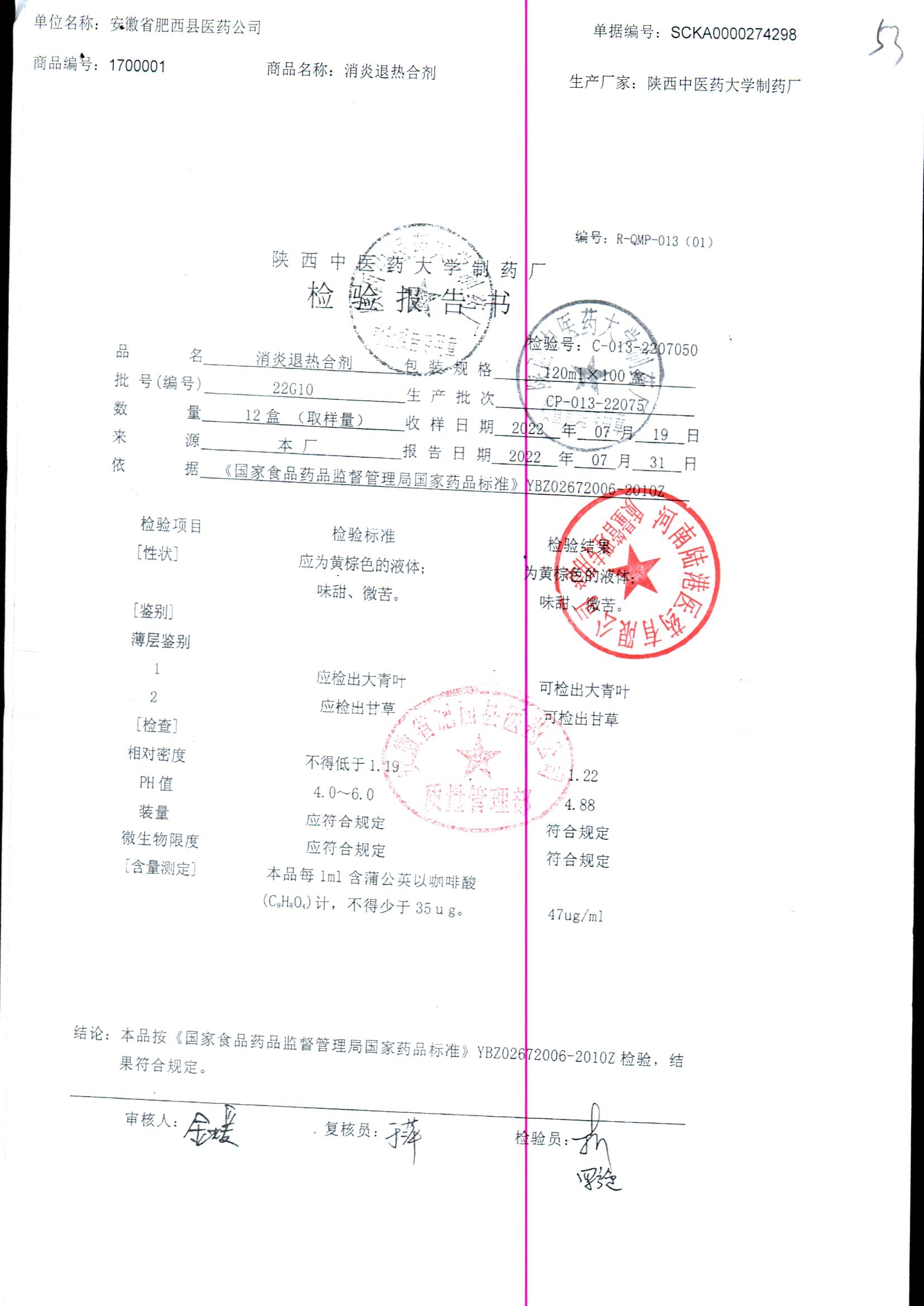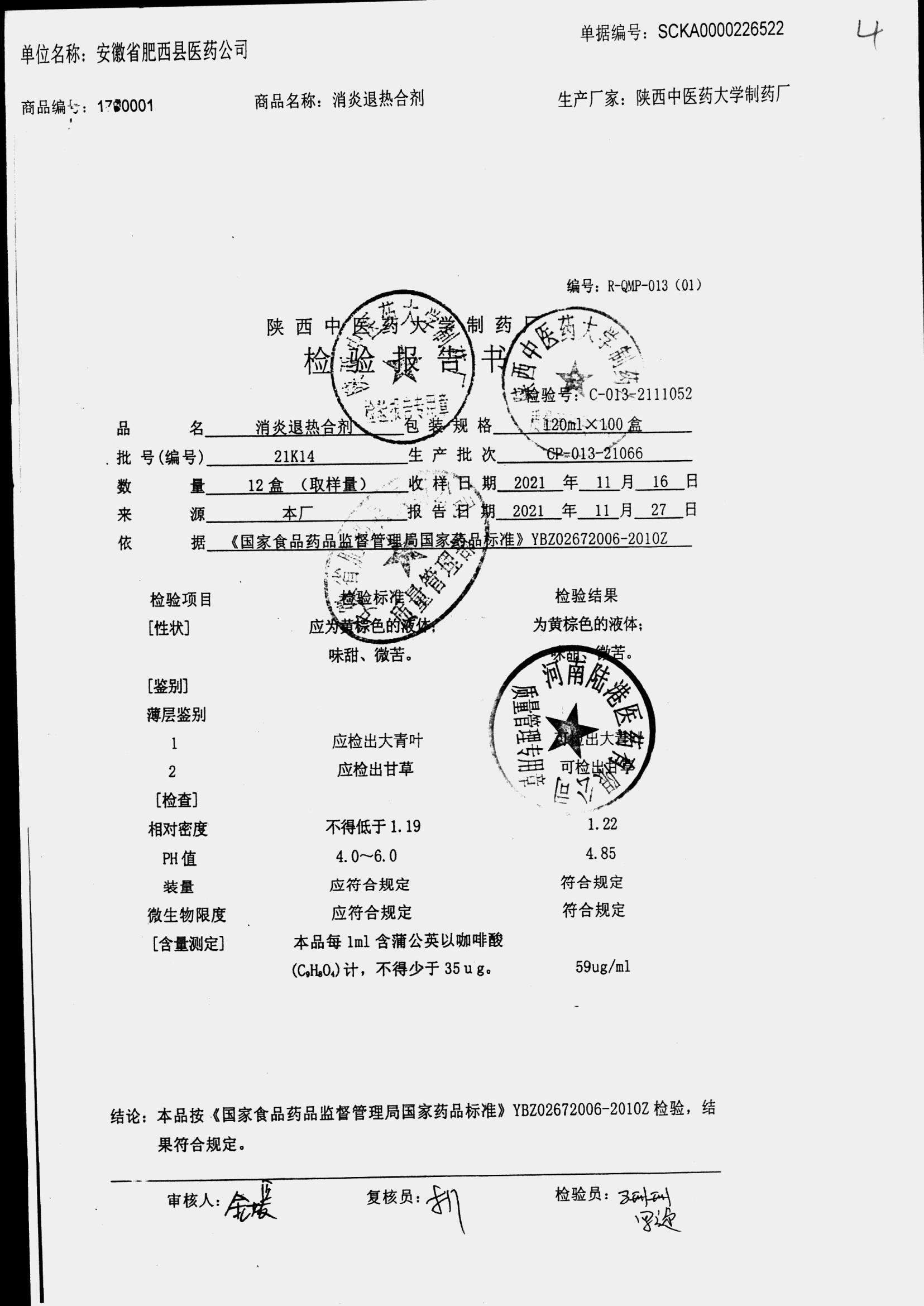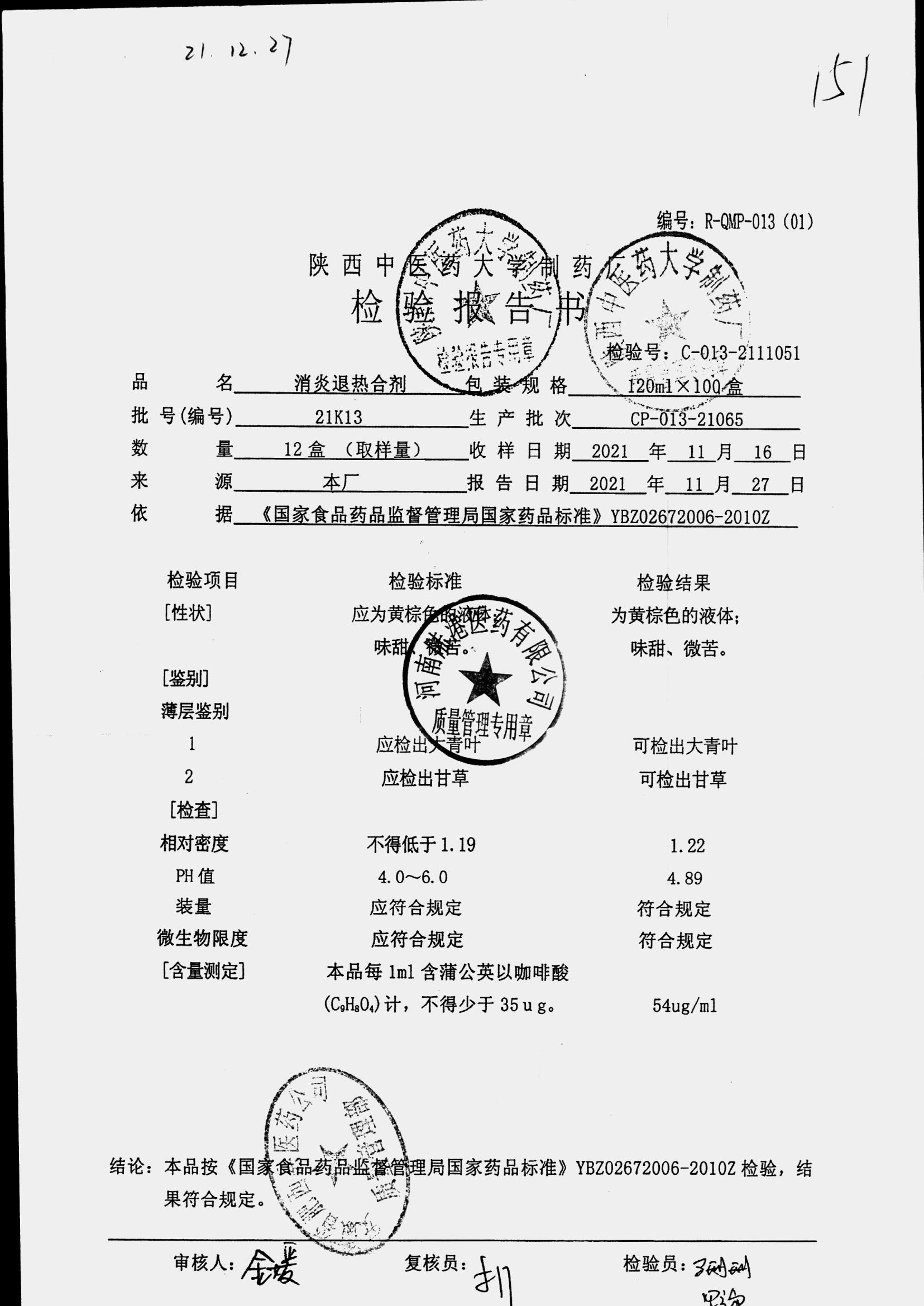 消炎退热合剂 | 120ml | 22I08 | 查看详情 |