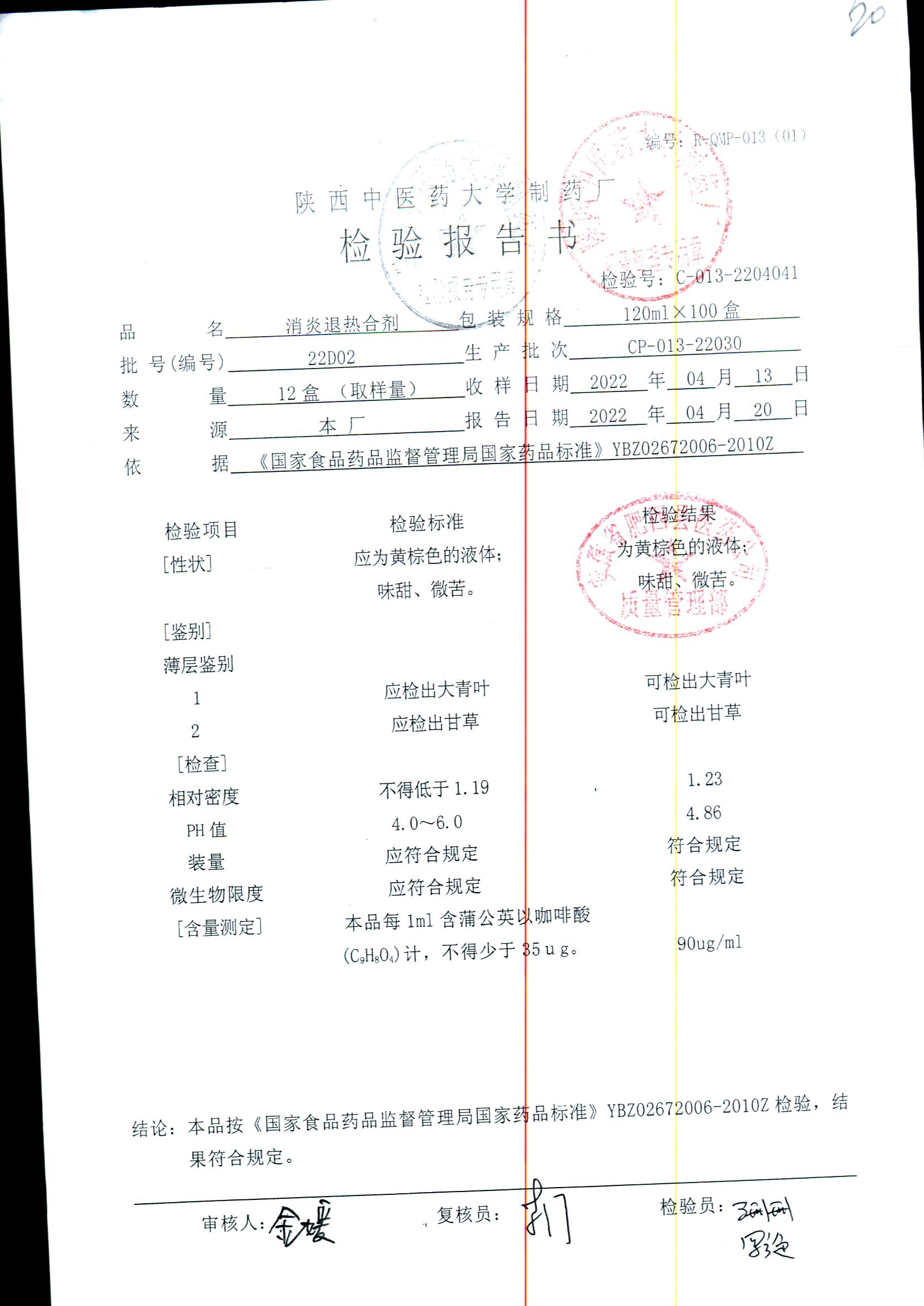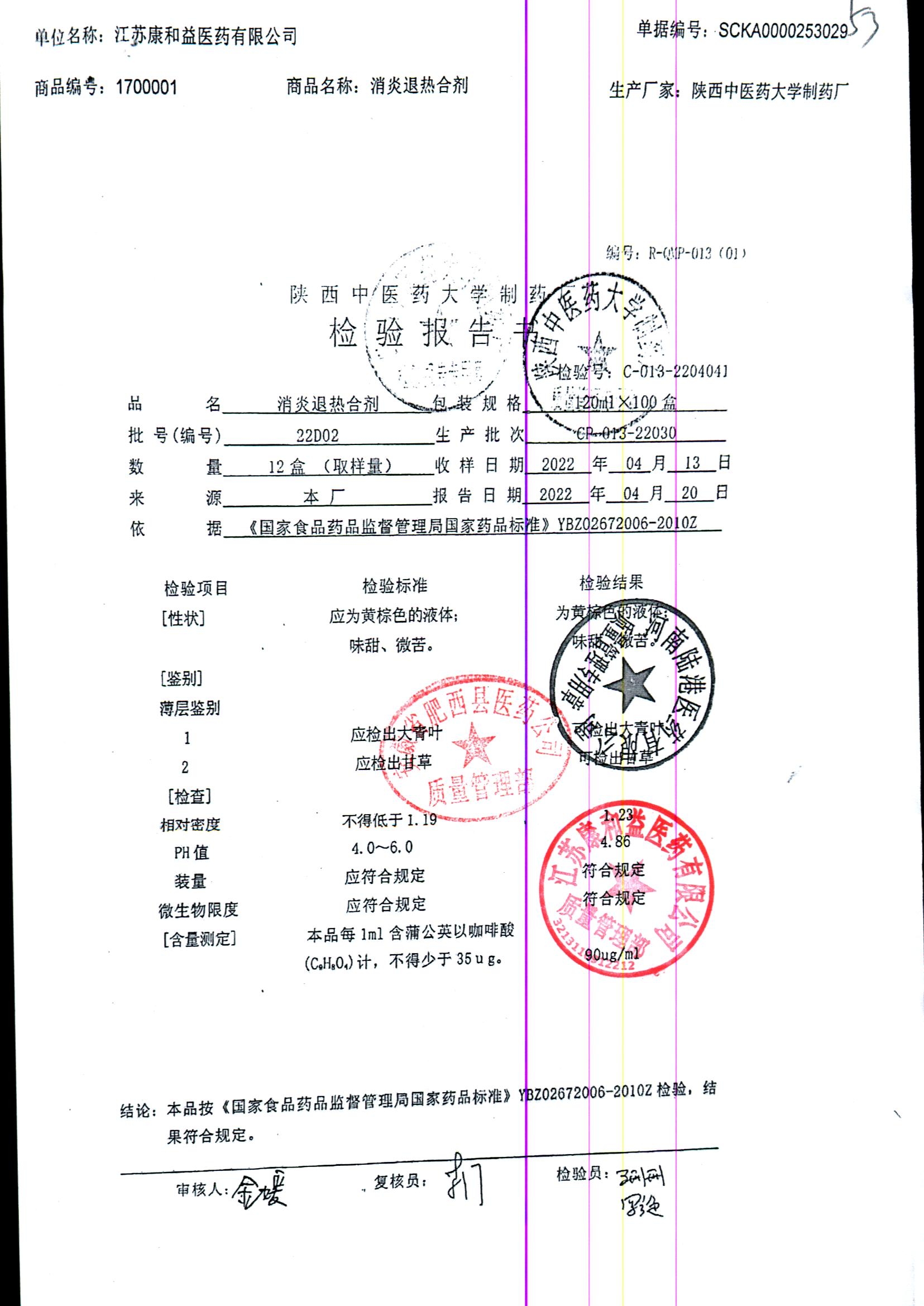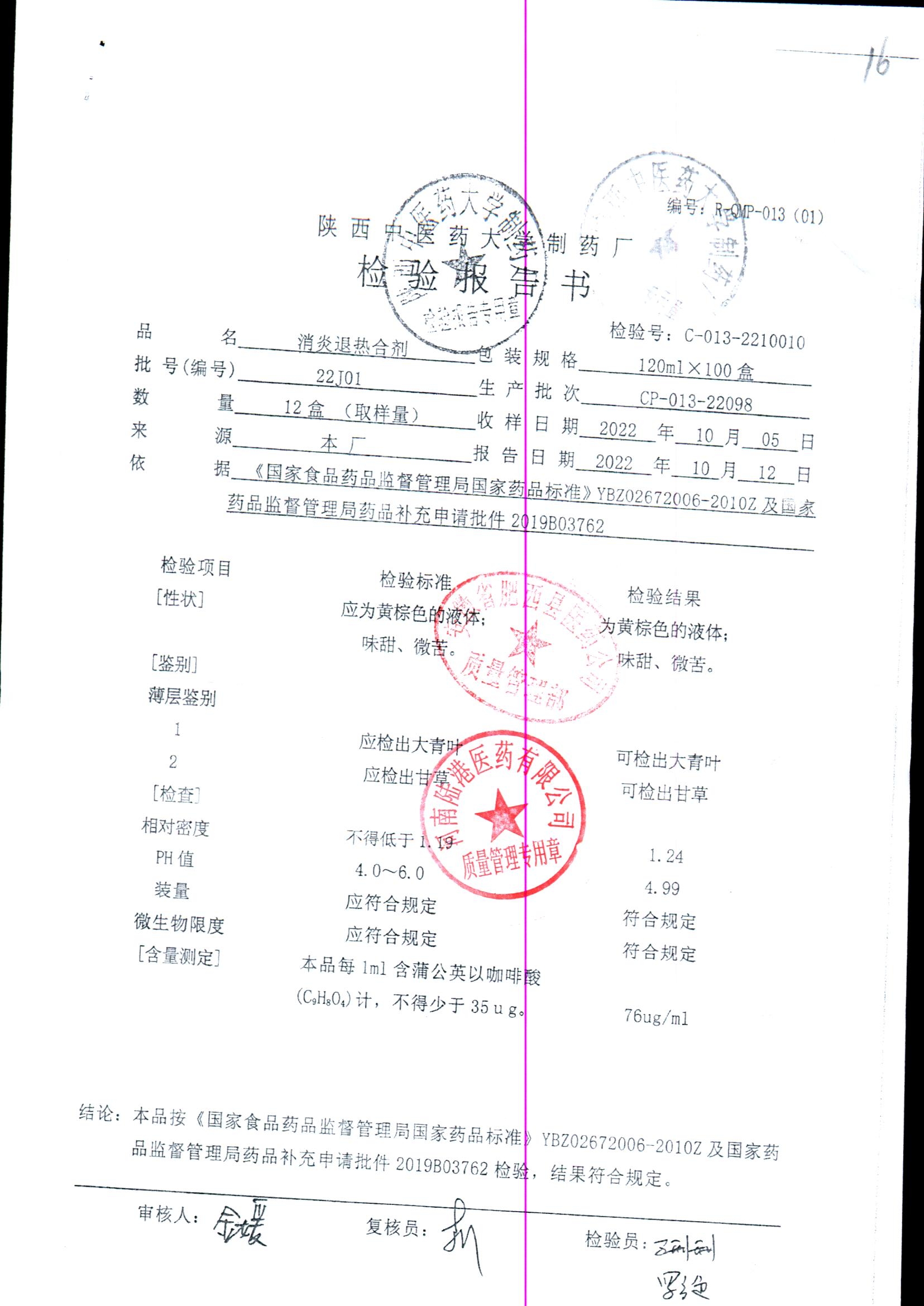 消炎退热合剂 | 120ml | 22D02 | 查看详情 |