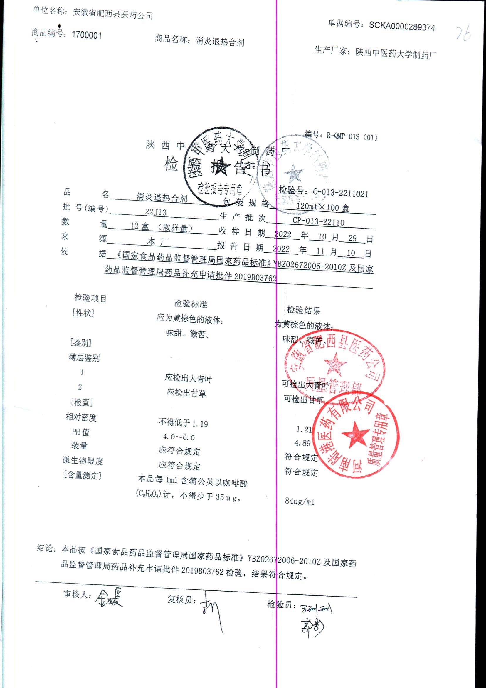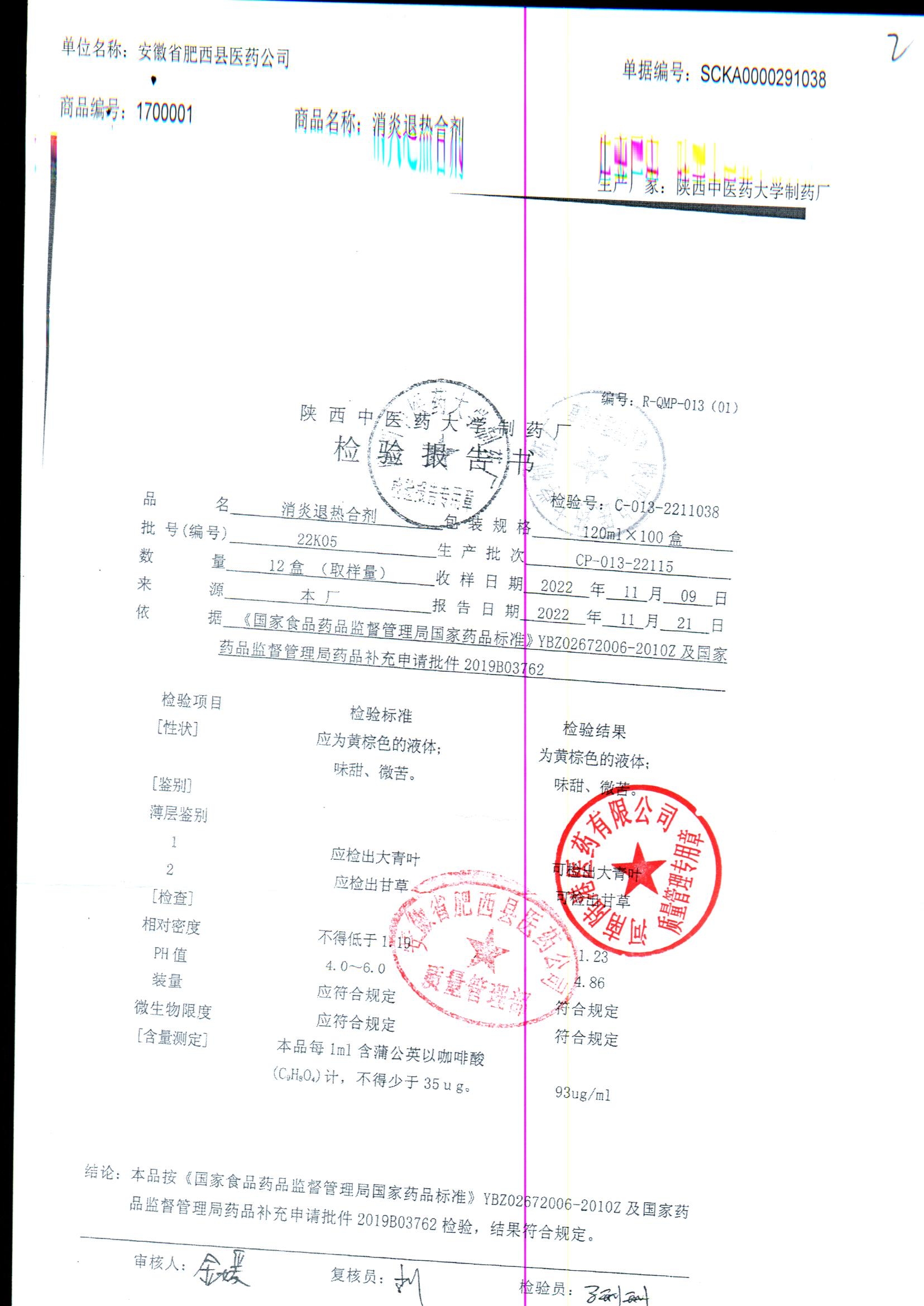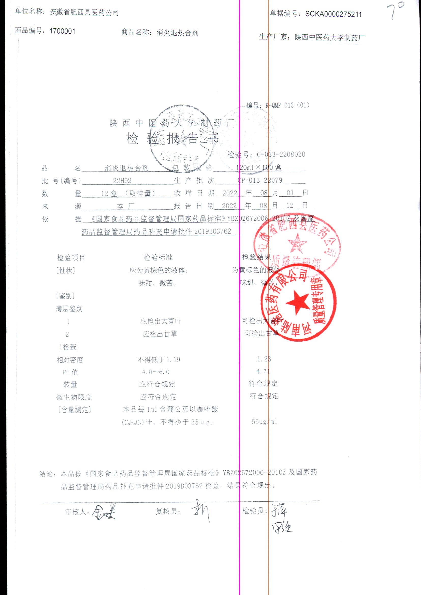 消炎退热合剂 | 120ml | 22D02 | 查看详情 |