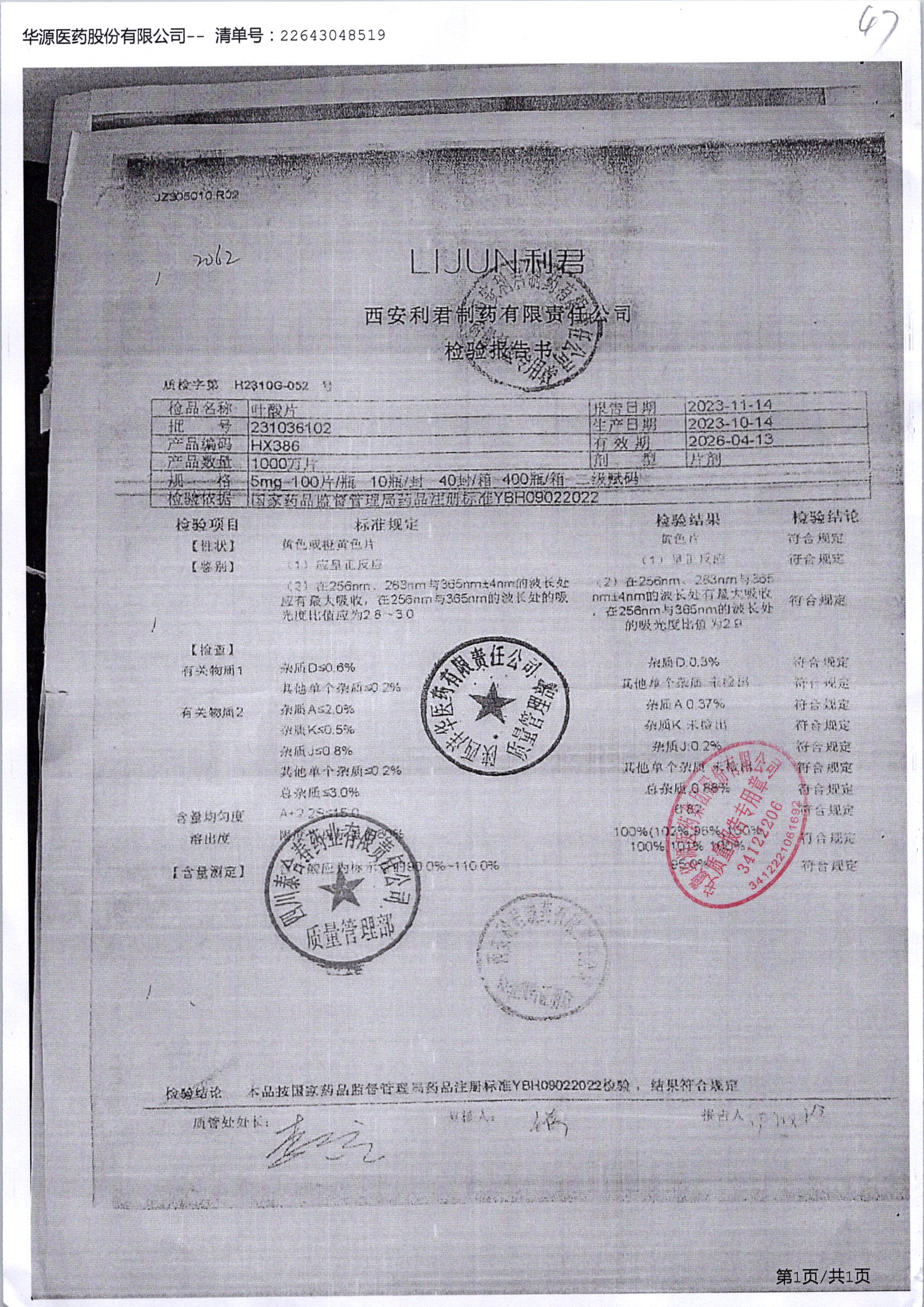 叶酸片 | 5mg*100片 | 231033801 | 查看详情 |