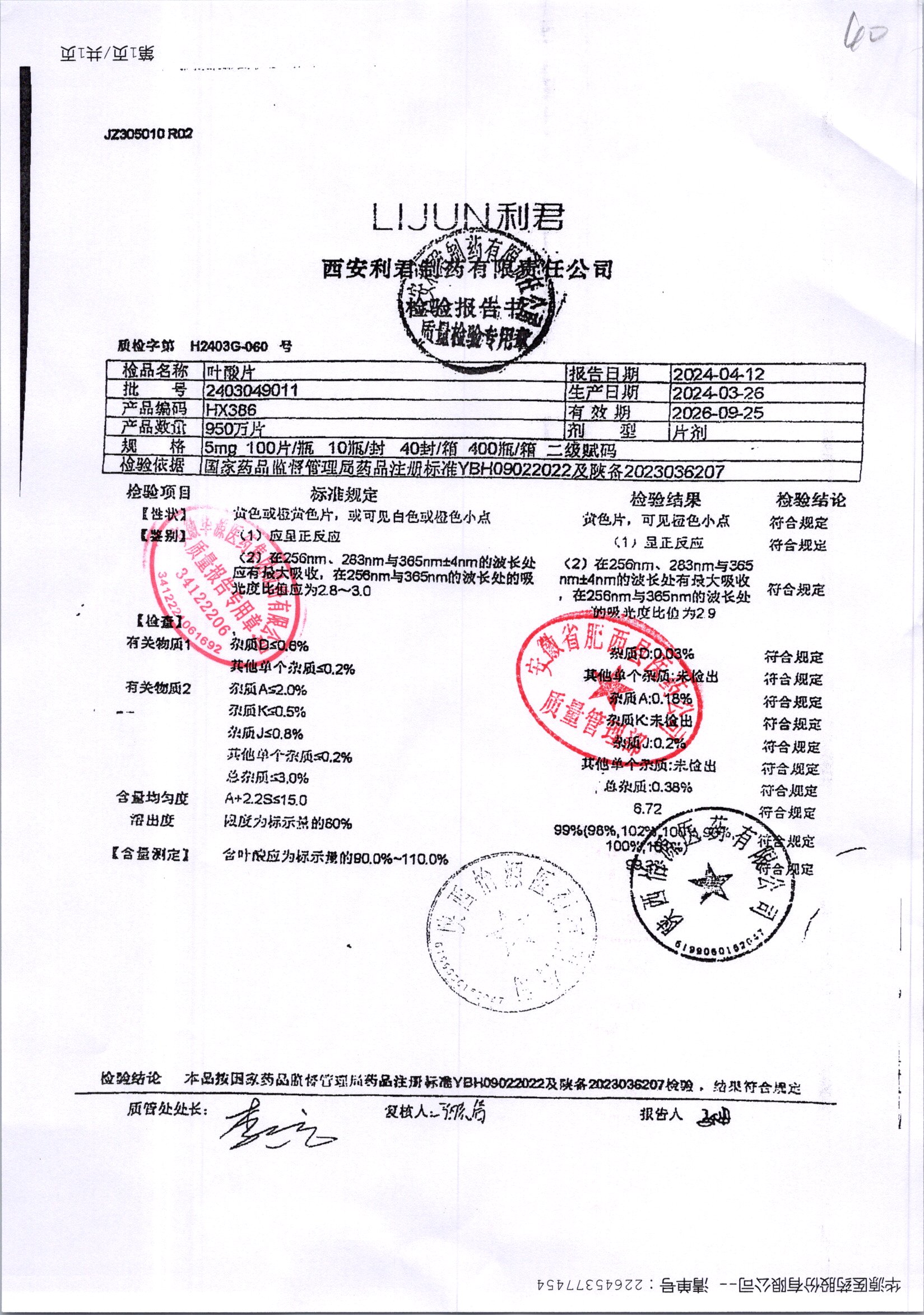 叶酸片 | 5mg*100片 | 231036102 | 查看详情 |