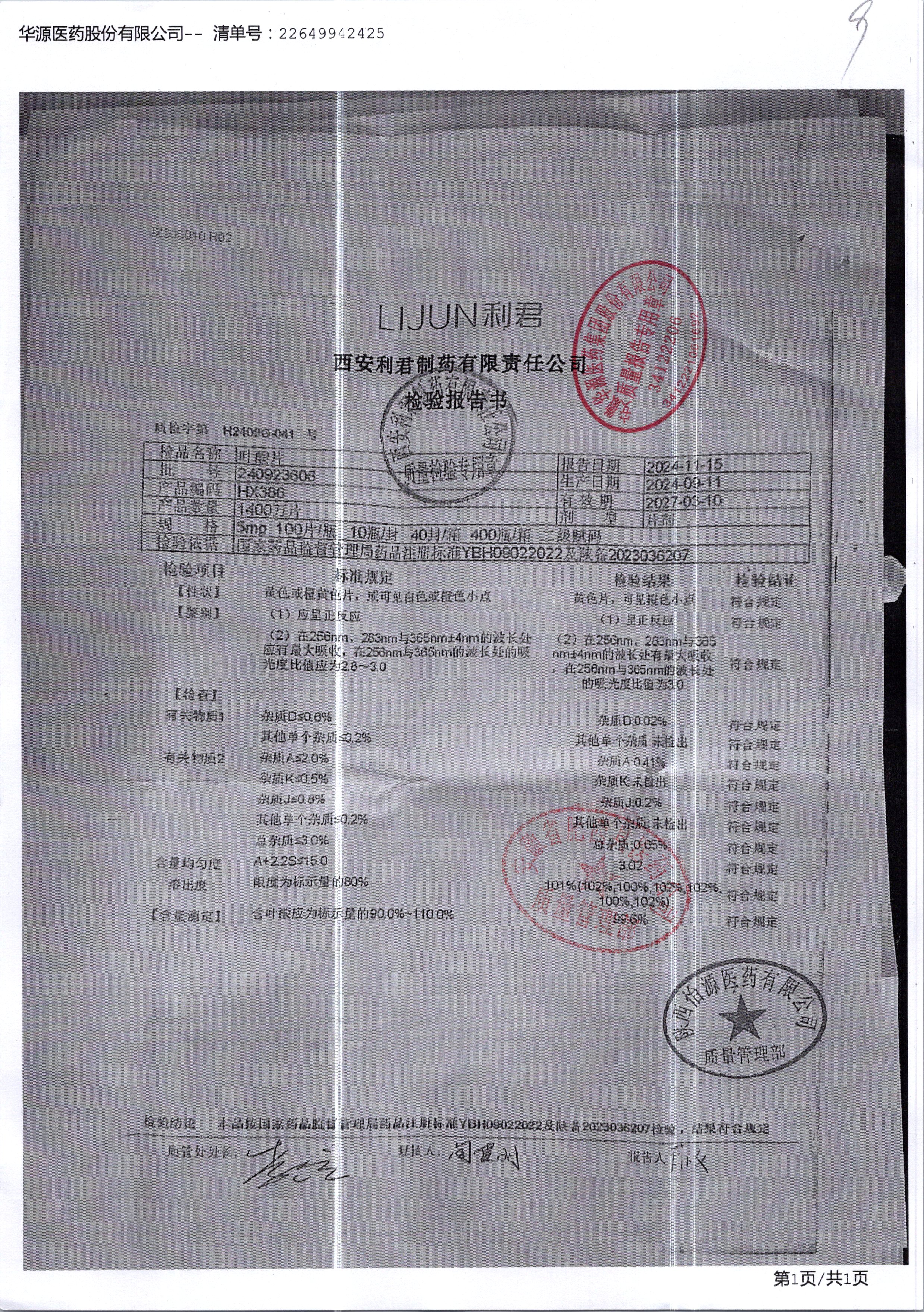 叶酸片 | 5mg*100片 | 240923606 | 查看详情 |