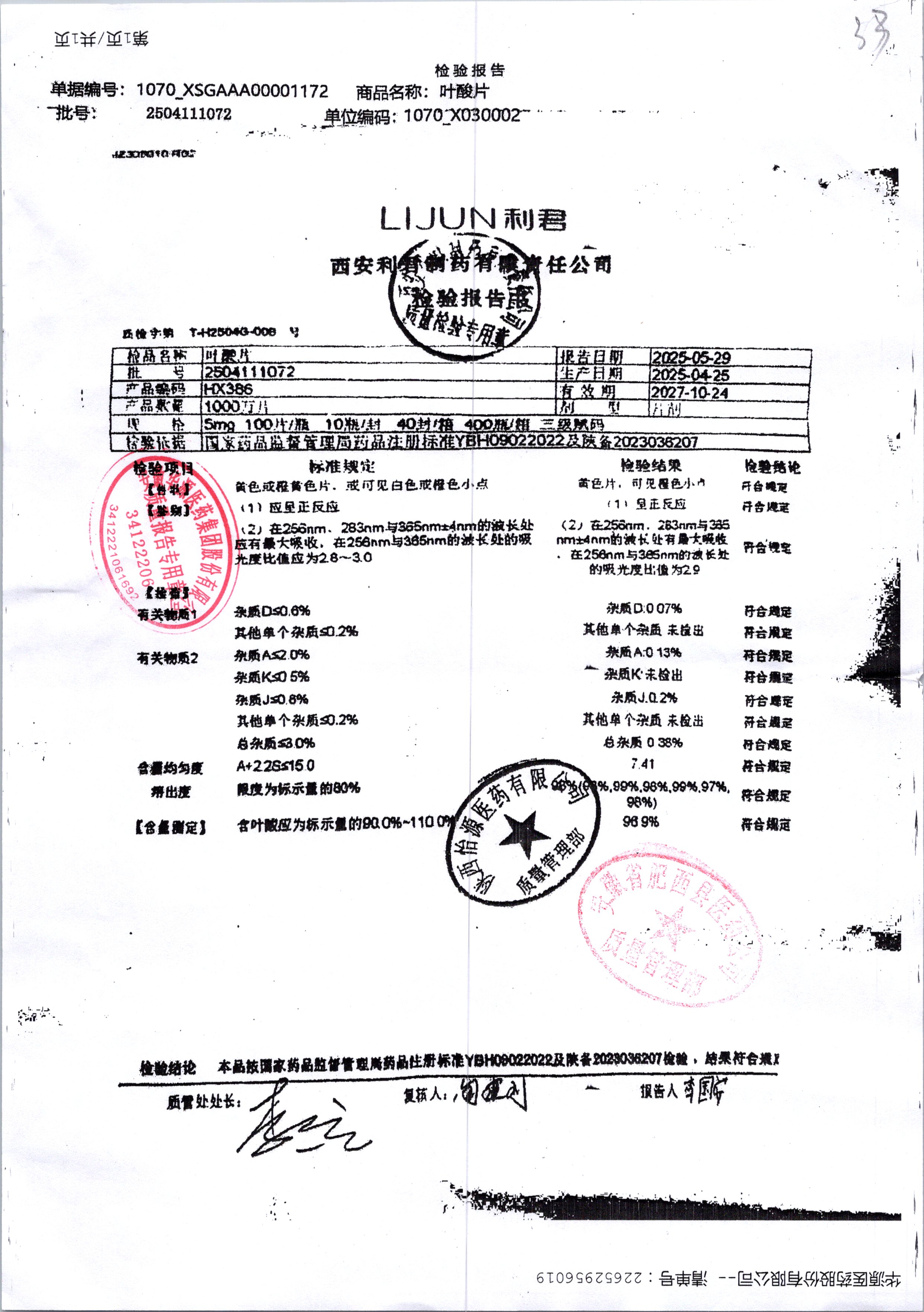 叶酸片 | 5mg*100片 | 2504111072 | 查看详情 |