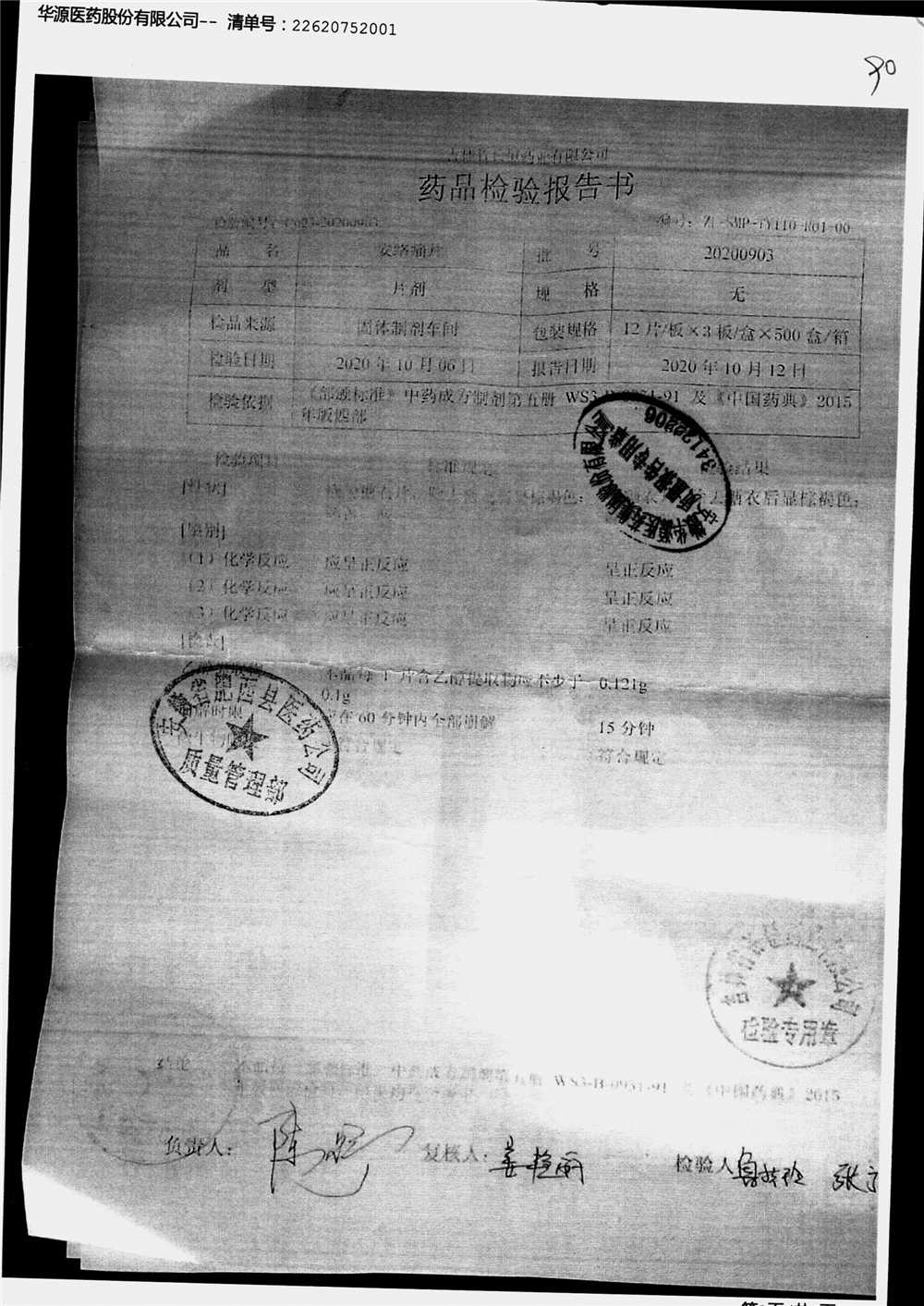 药检报告