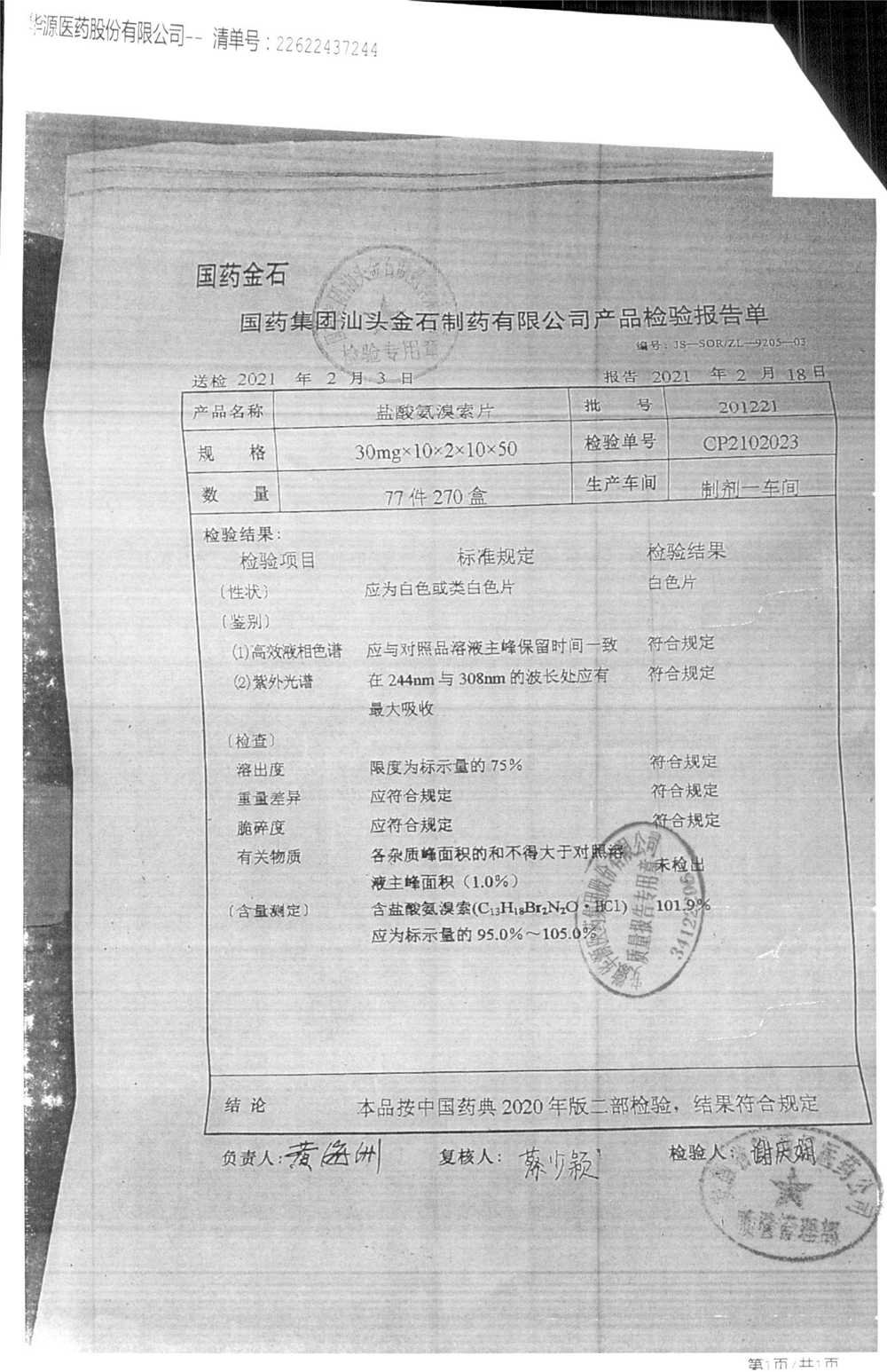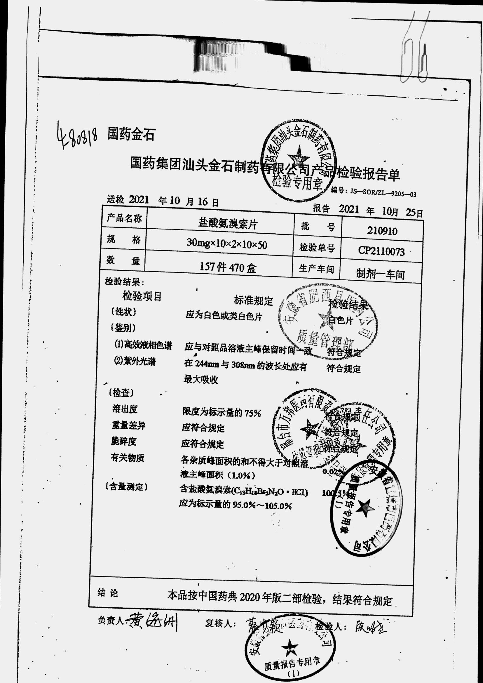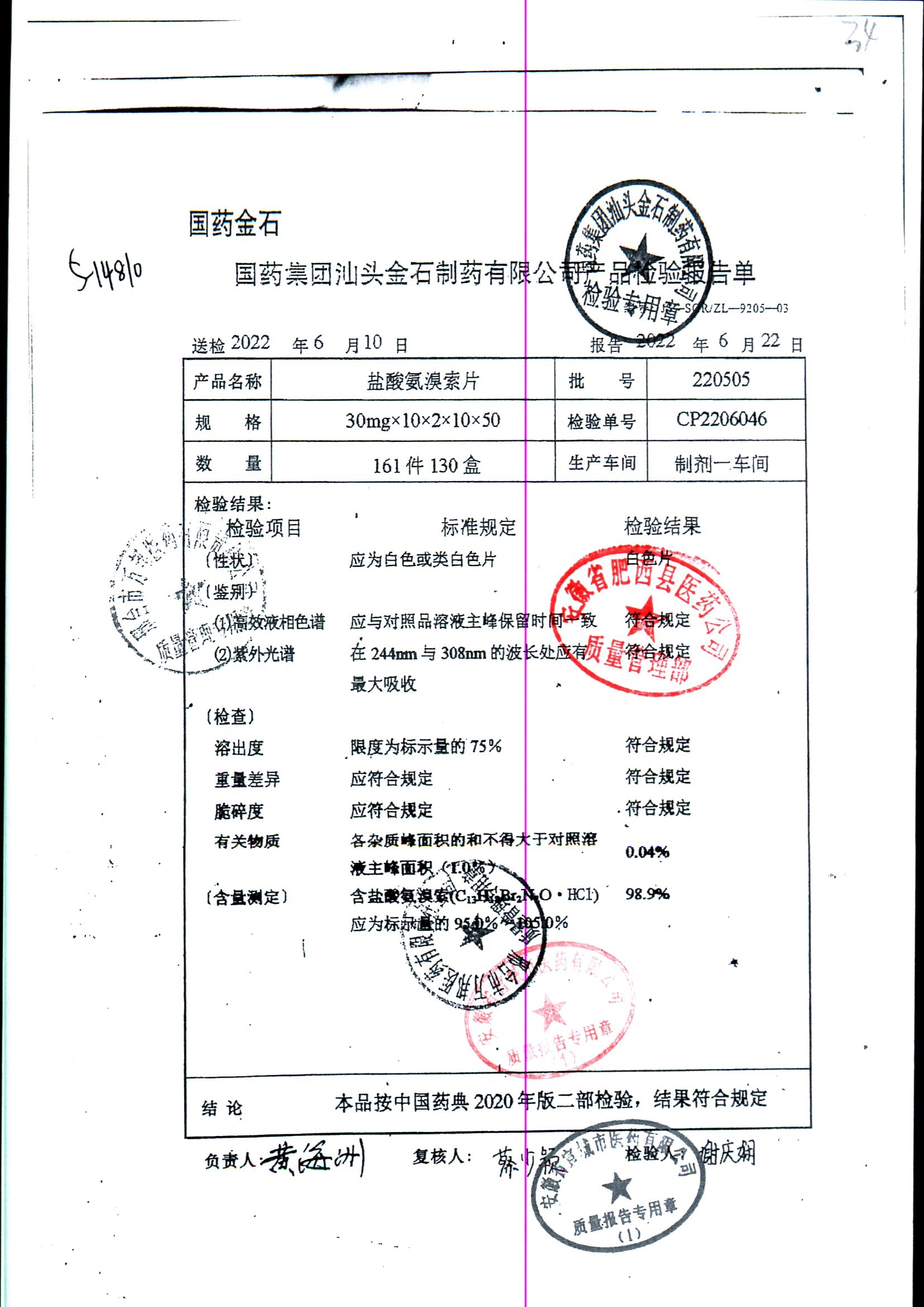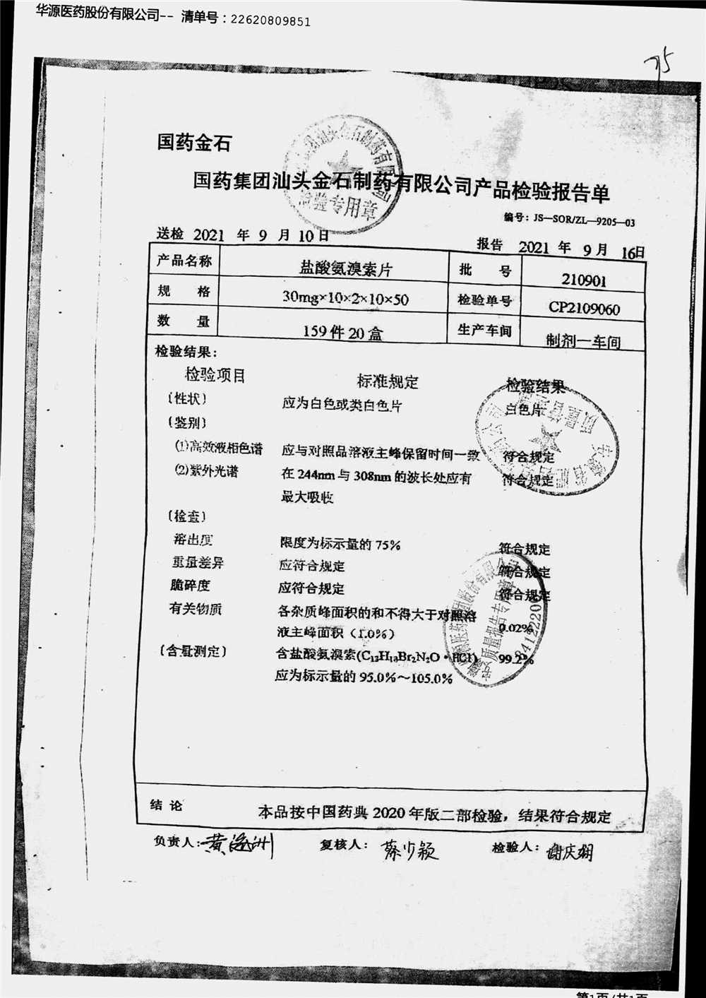 盐酸氨溴索片 | 30mg*20s | 220505 | 查看详情 |