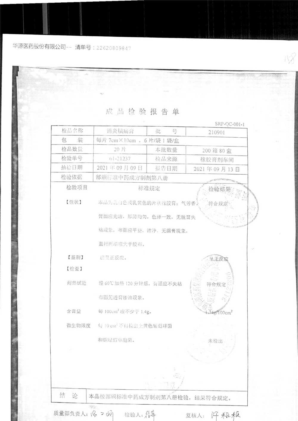 药检报告