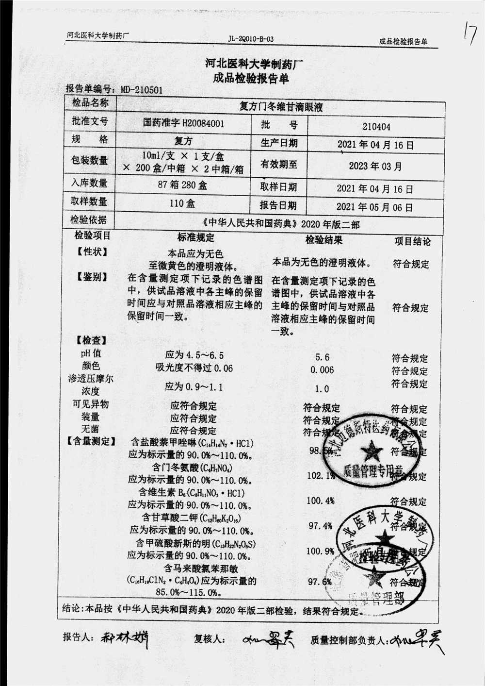 药检报告