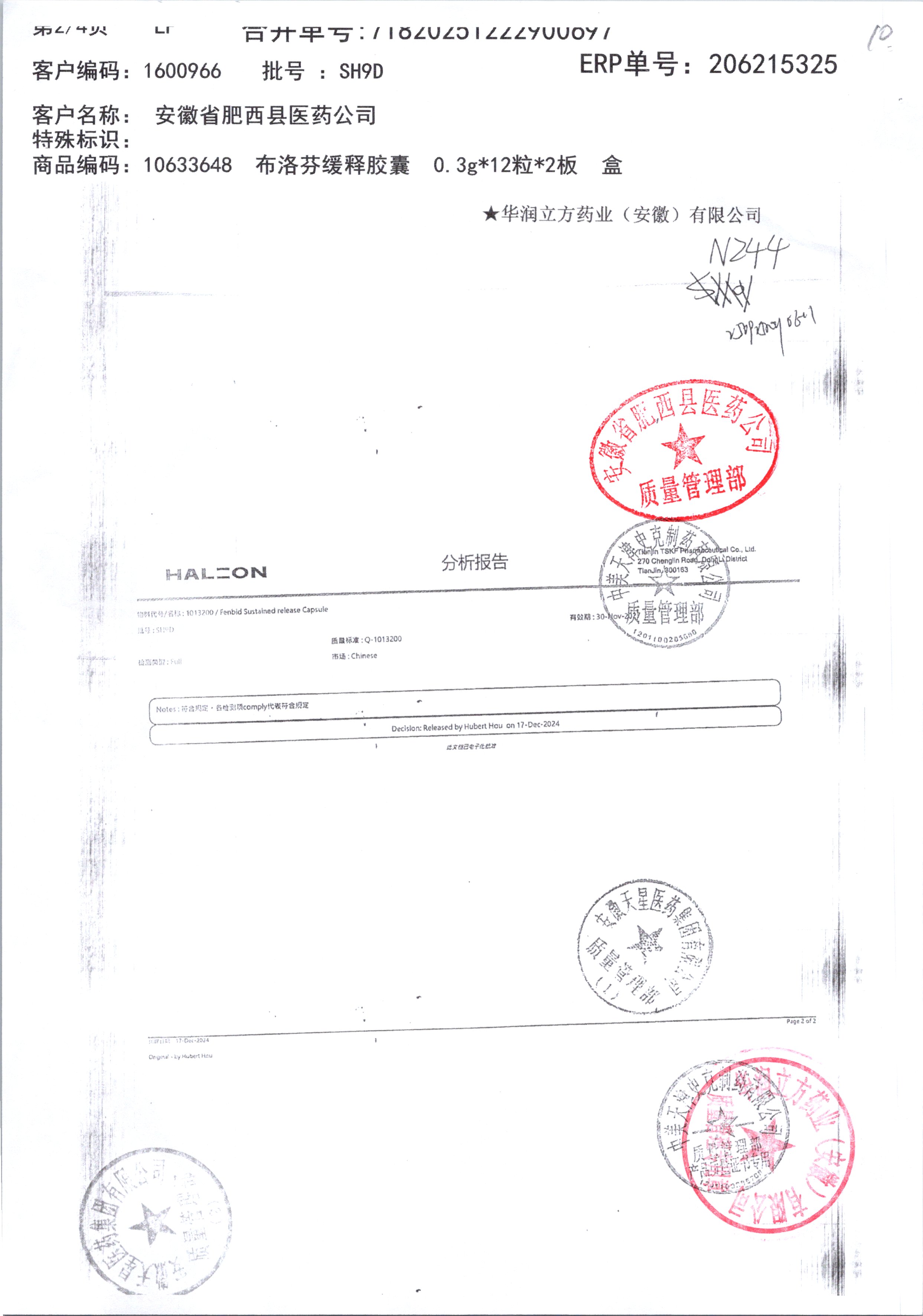 | 布洛芬缓释胶囊/芬必得 | 24s | AD8V | 查看详情 |