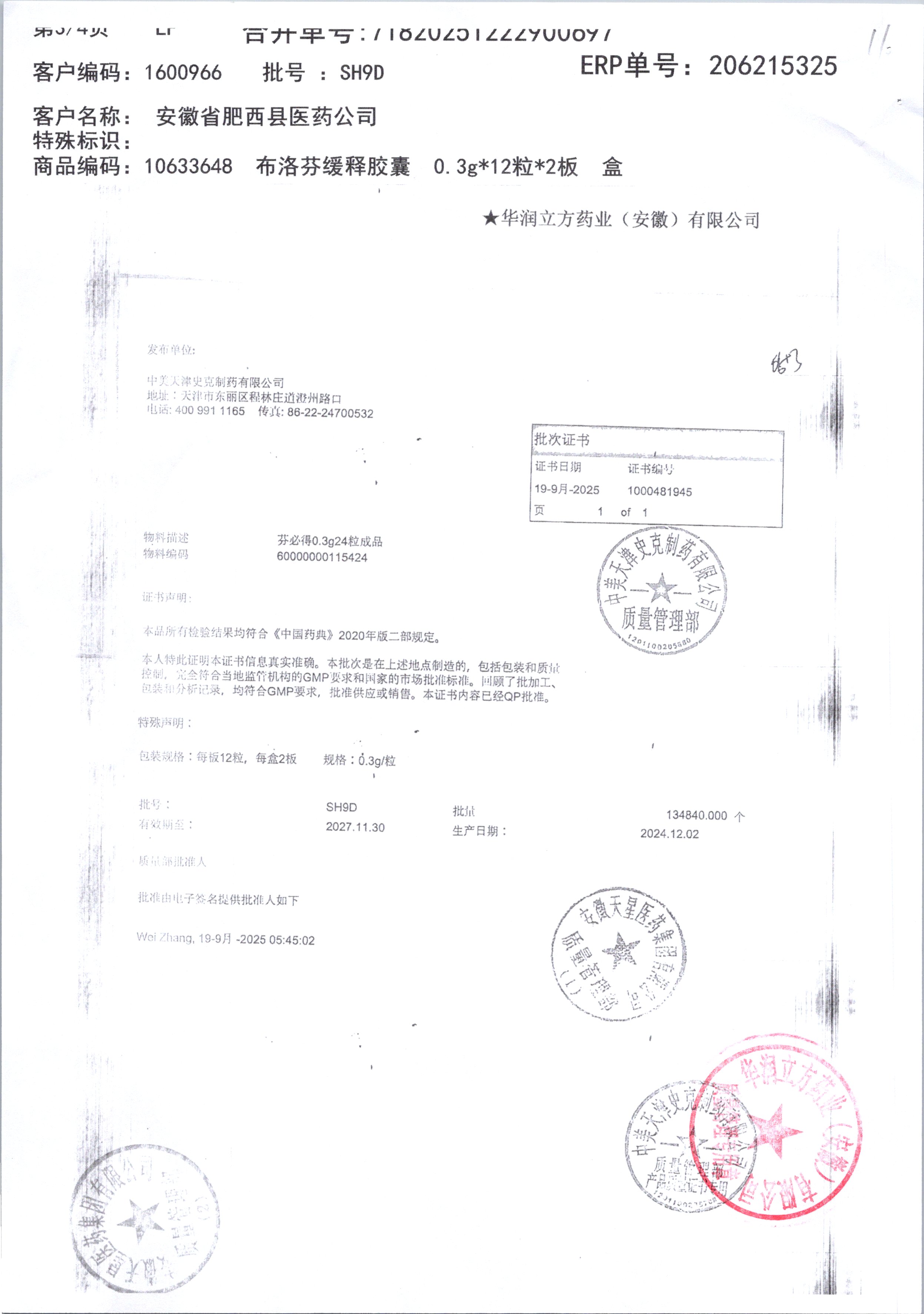 | 布洛芬缓释胶囊/芬必得 | 24s | SH9D/3 | 查看详情 |