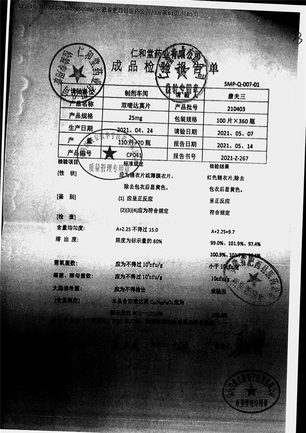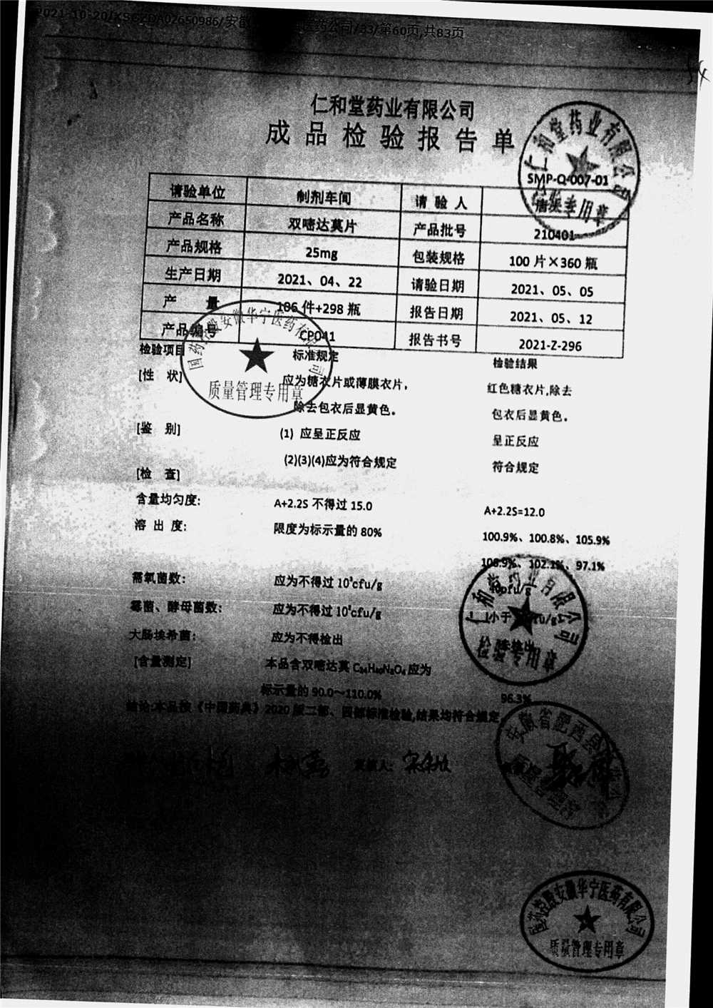 药检报告