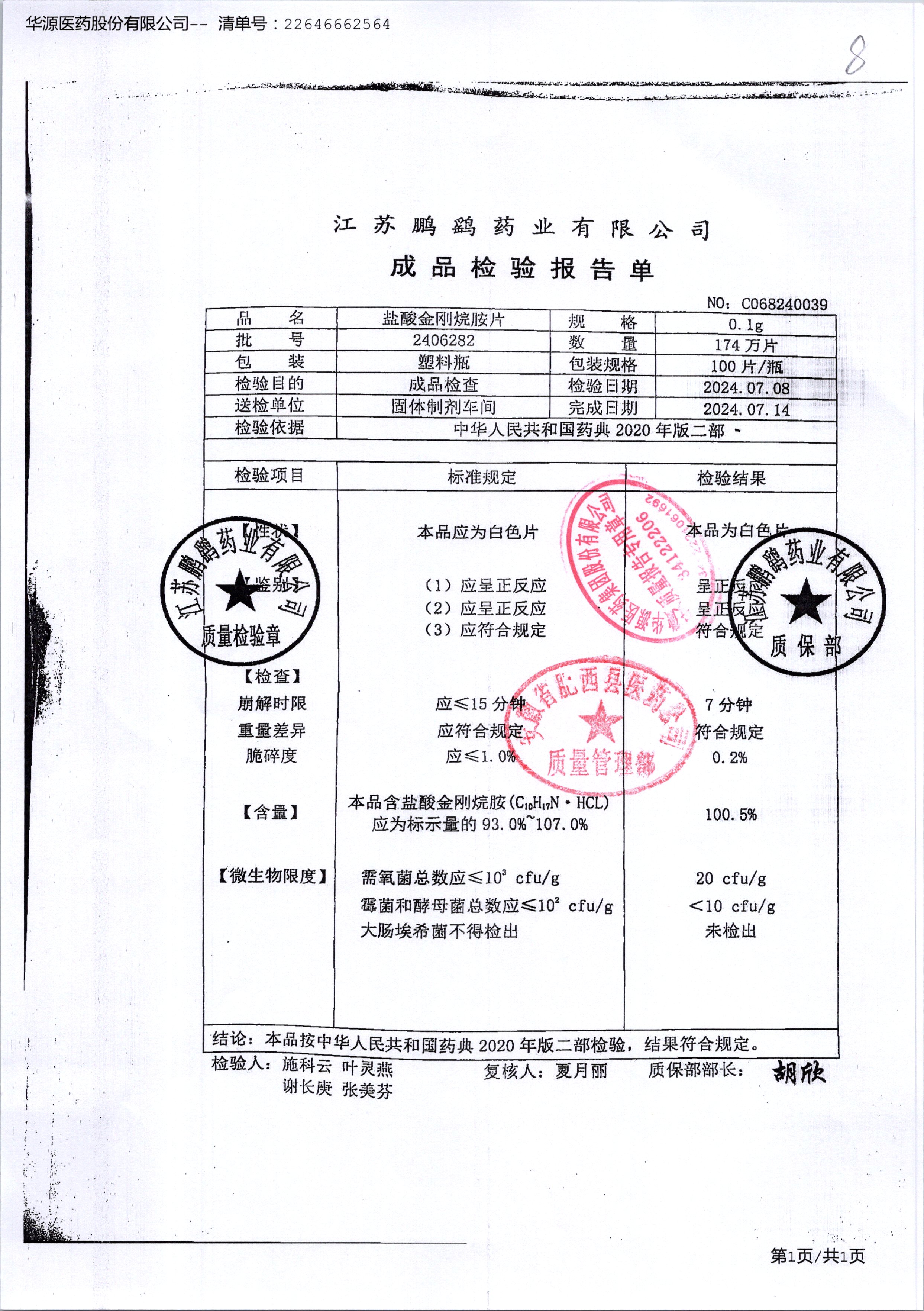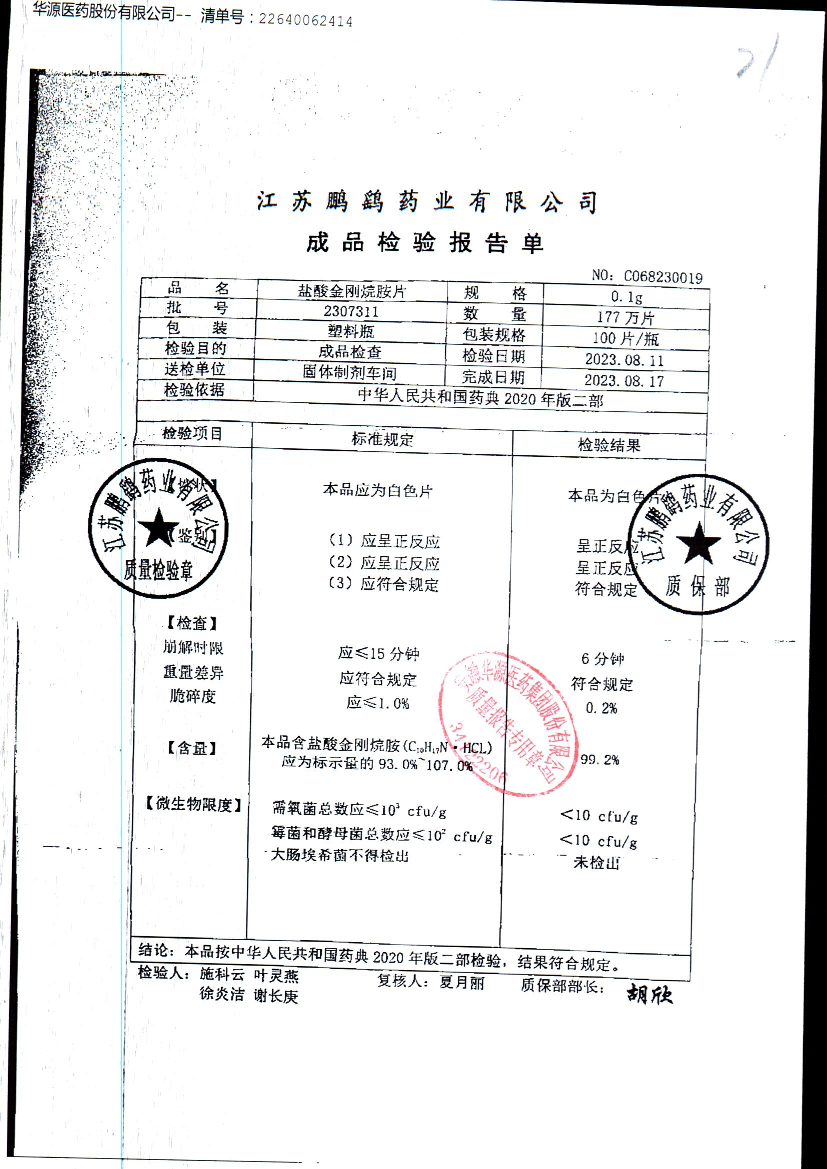盐酸金刚烷胺片 | 0.1g*100片 | 2402181 | 查看详情 |