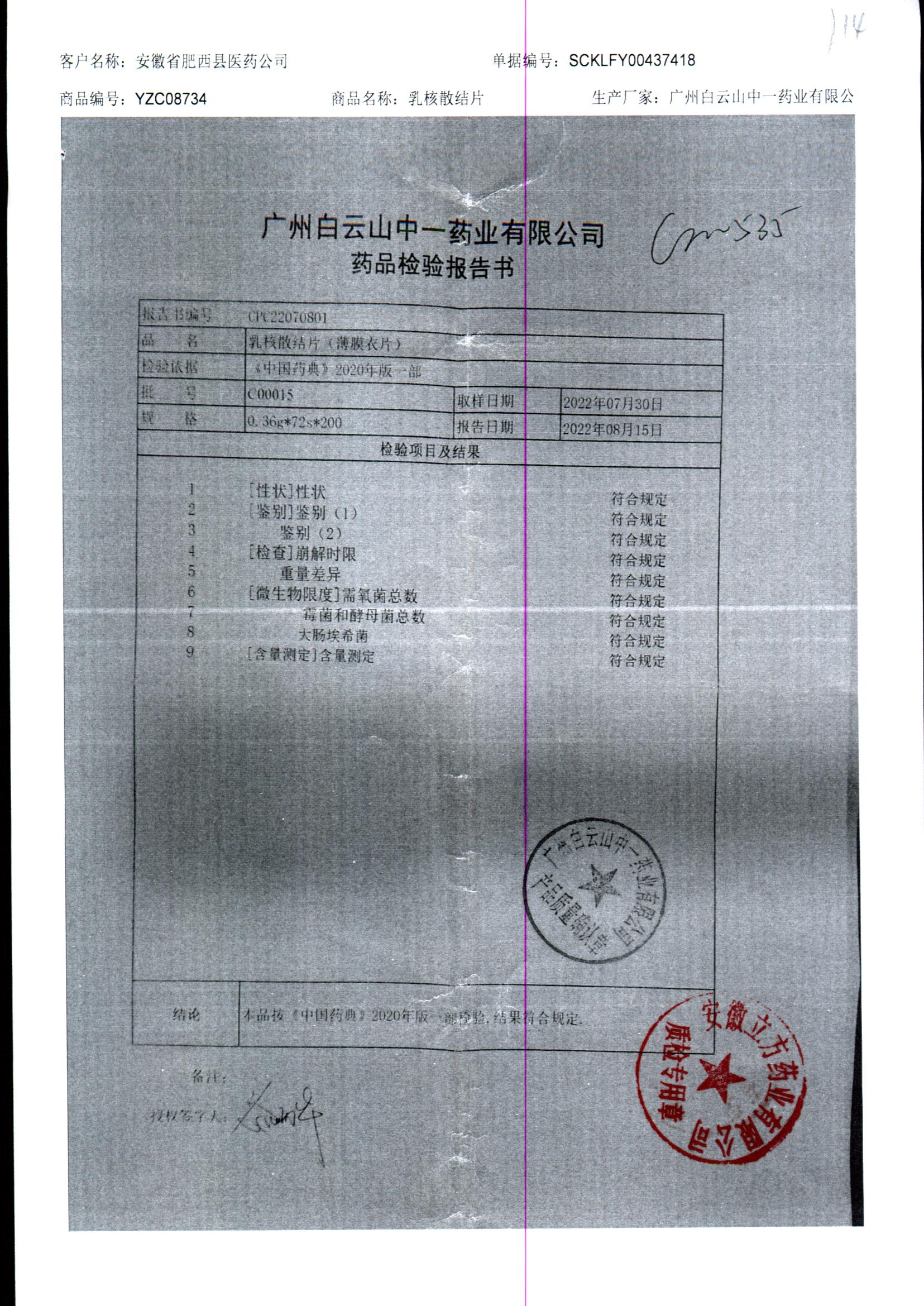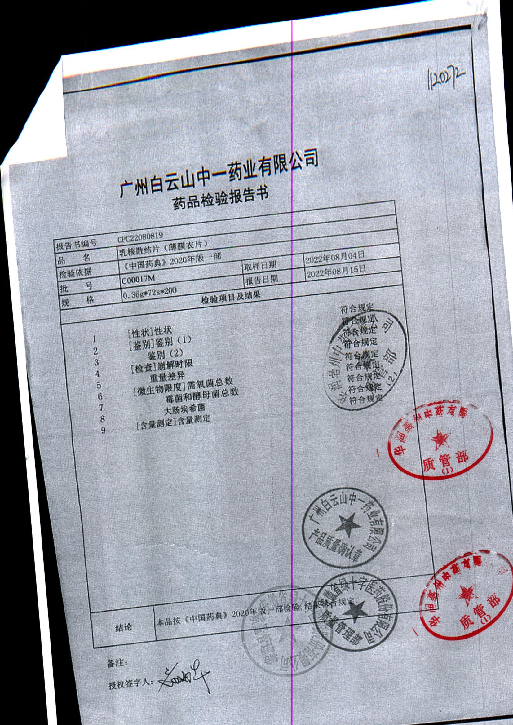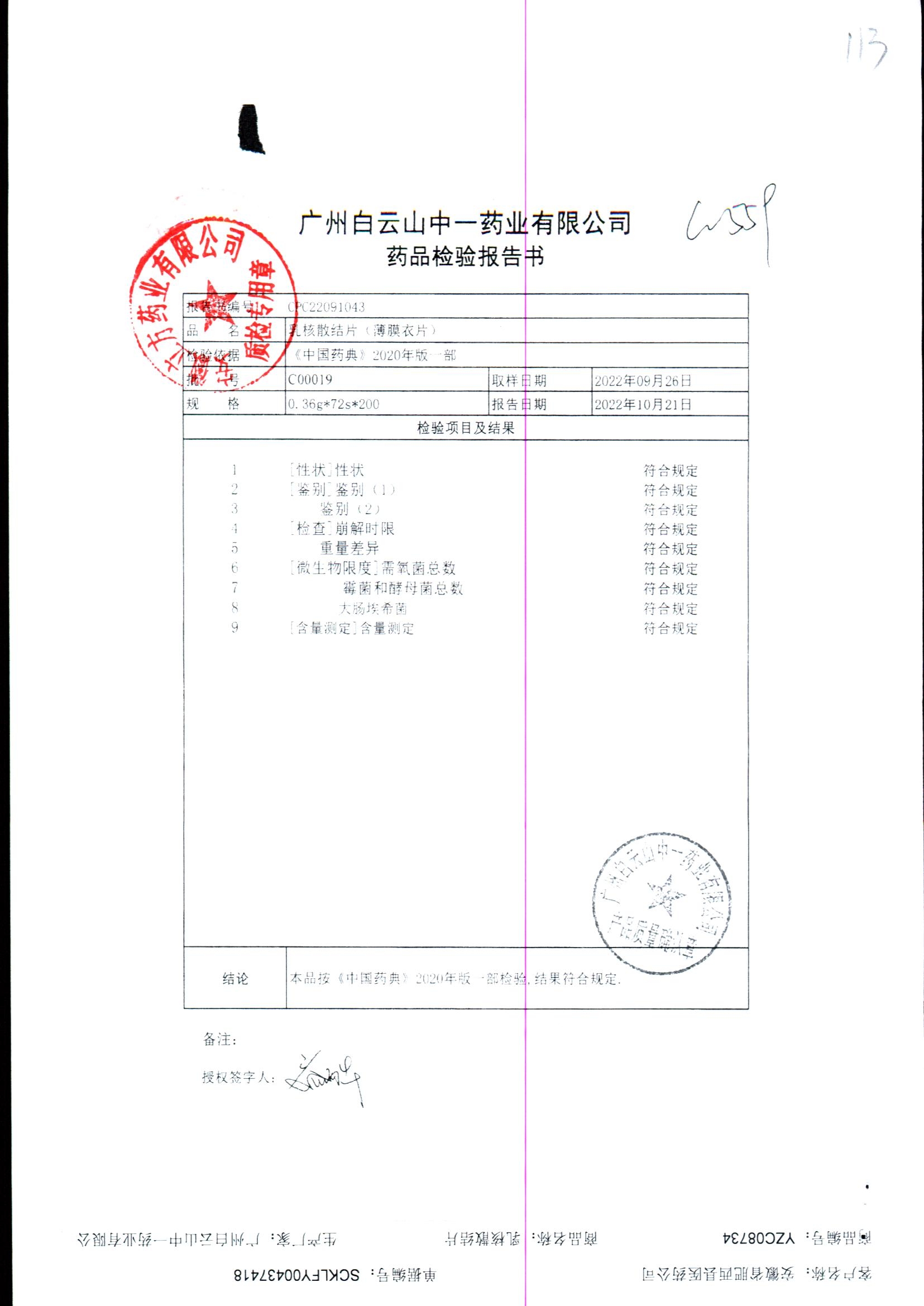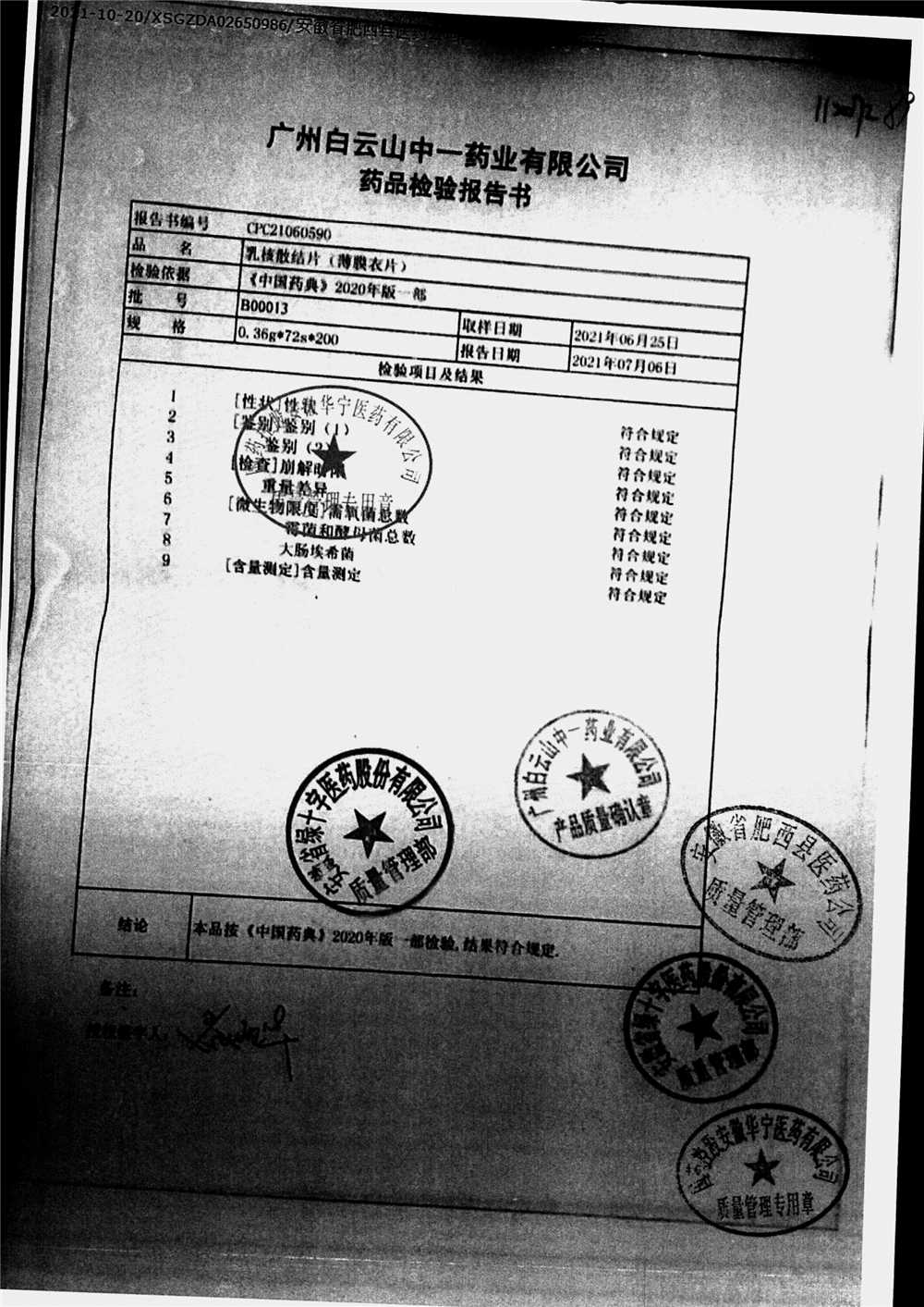 药检报告