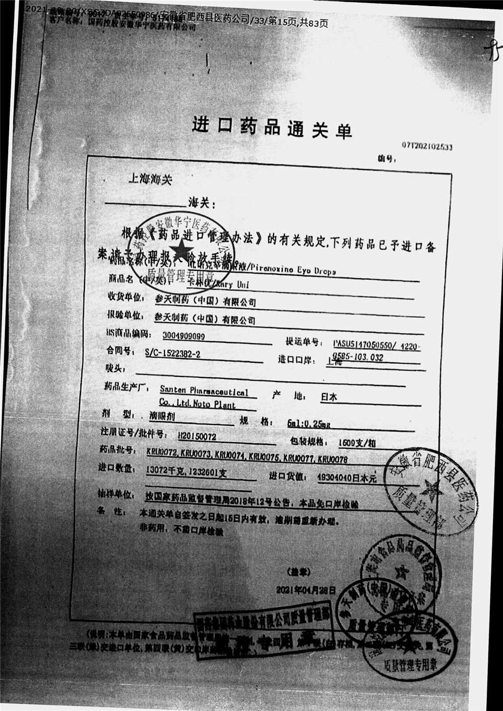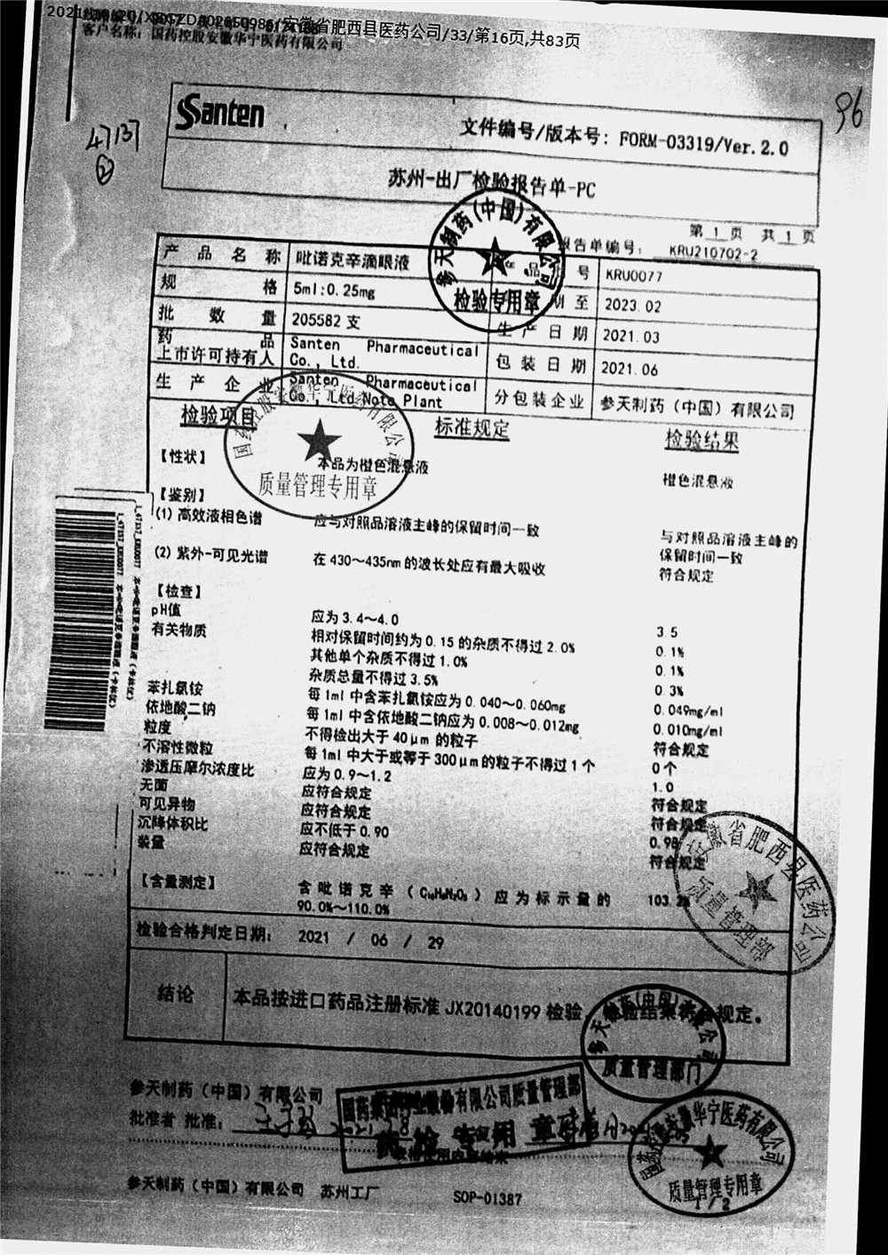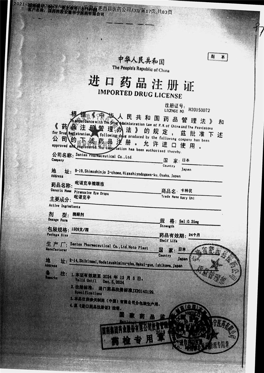 吡诺克辛滴眼液/卡林优 | 5ml:0.25mg | KRU0077(3/3) | 查看详情 |