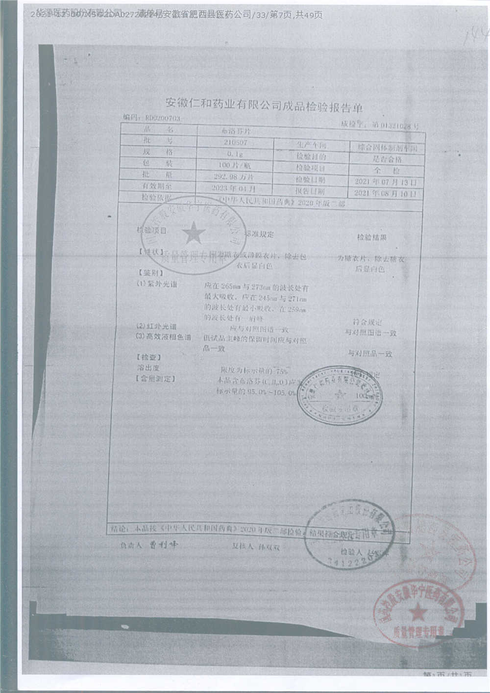 布洛芬片 | 0.1g*100片 | 210507 | 查看详情 |