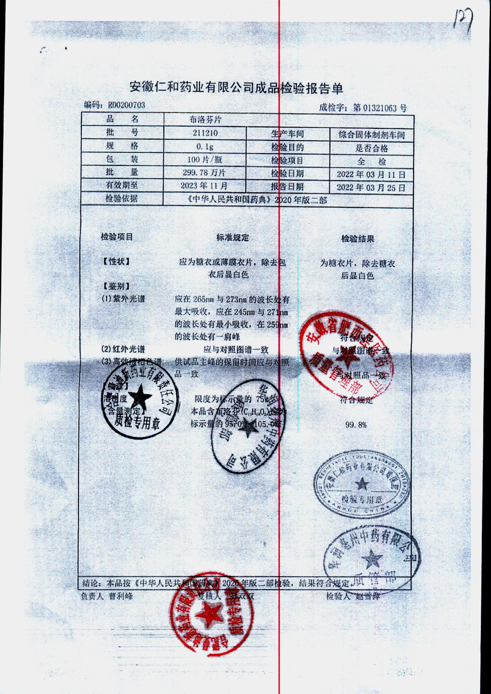 布洛芬片 | 0.1g*100片 | 210506 | 查看详情 |