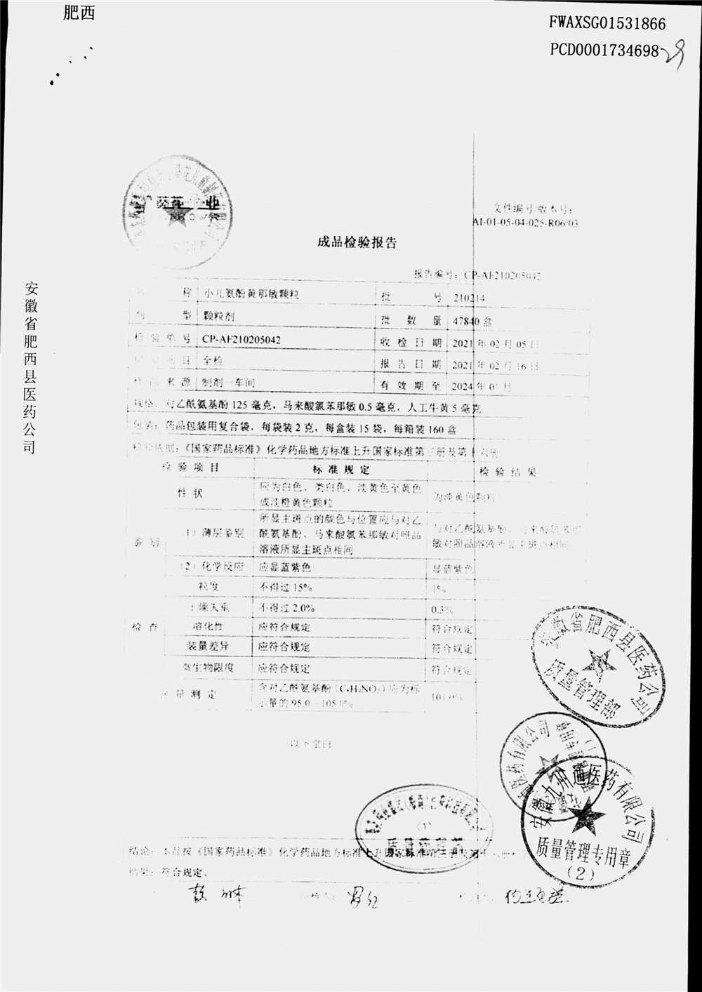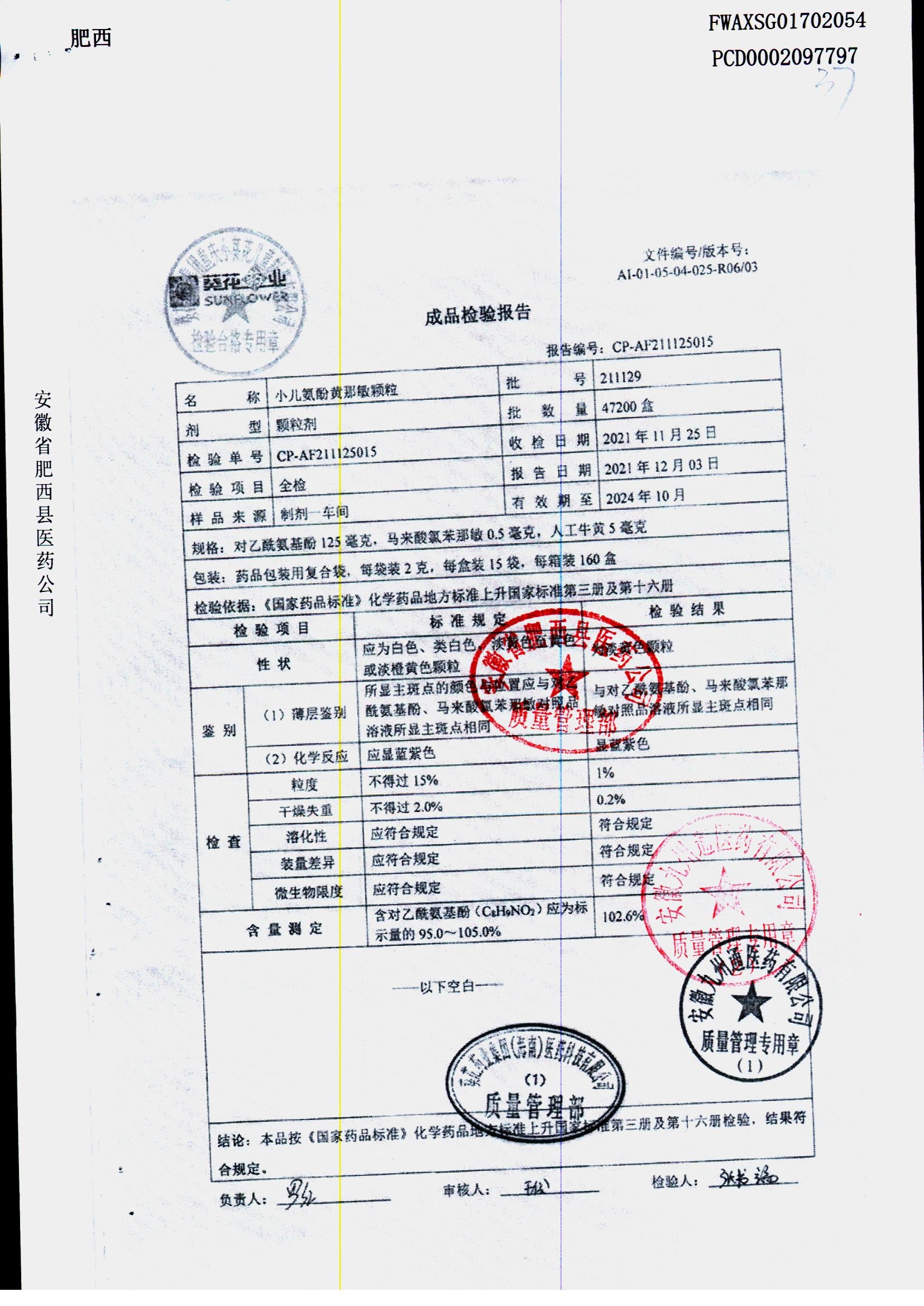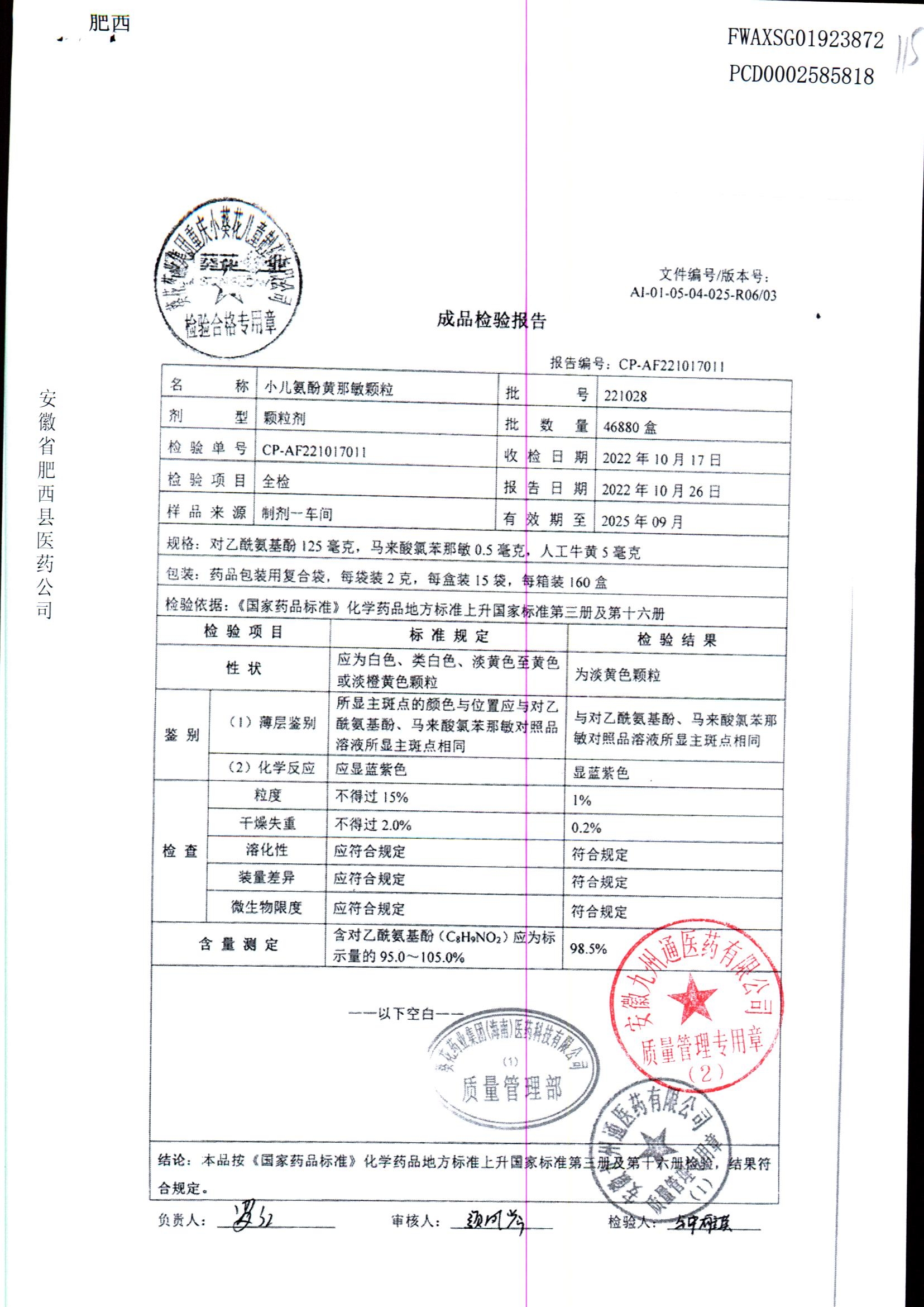 小儿氨酚黄那敏颗粒 | 2g*15袋 | 211129 | 查看详情 |