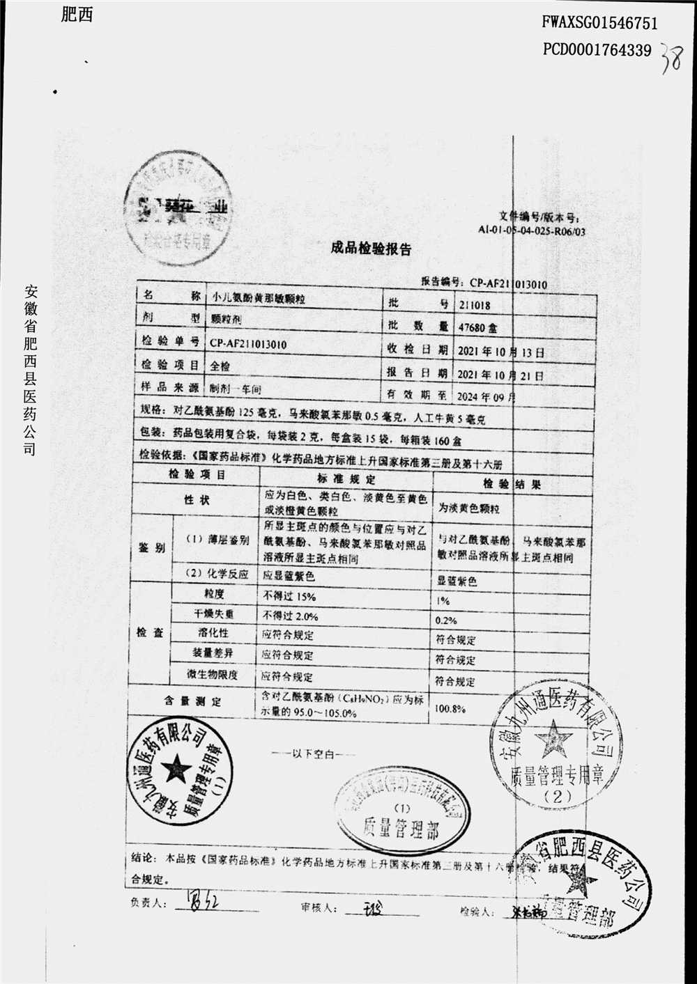 小儿氨酚黄那敏颗粒 | 2g*15袋 | 211027 | 查看详情 |