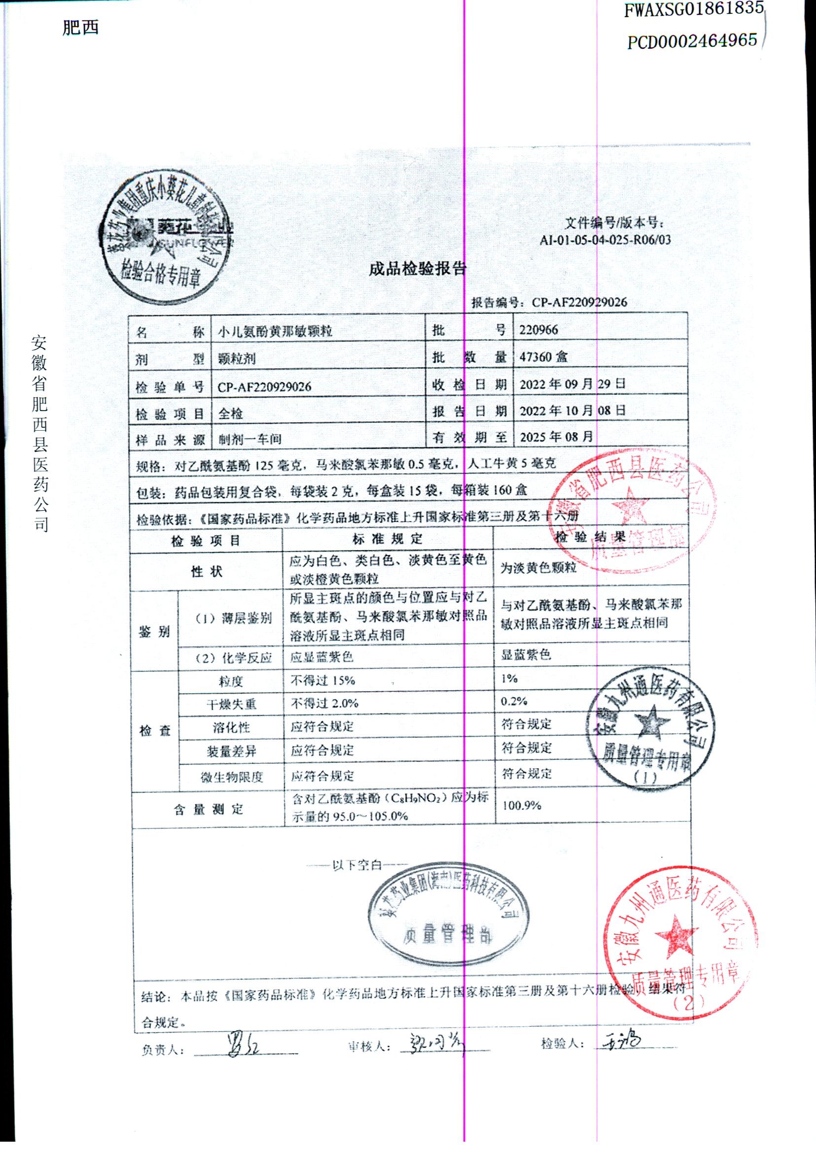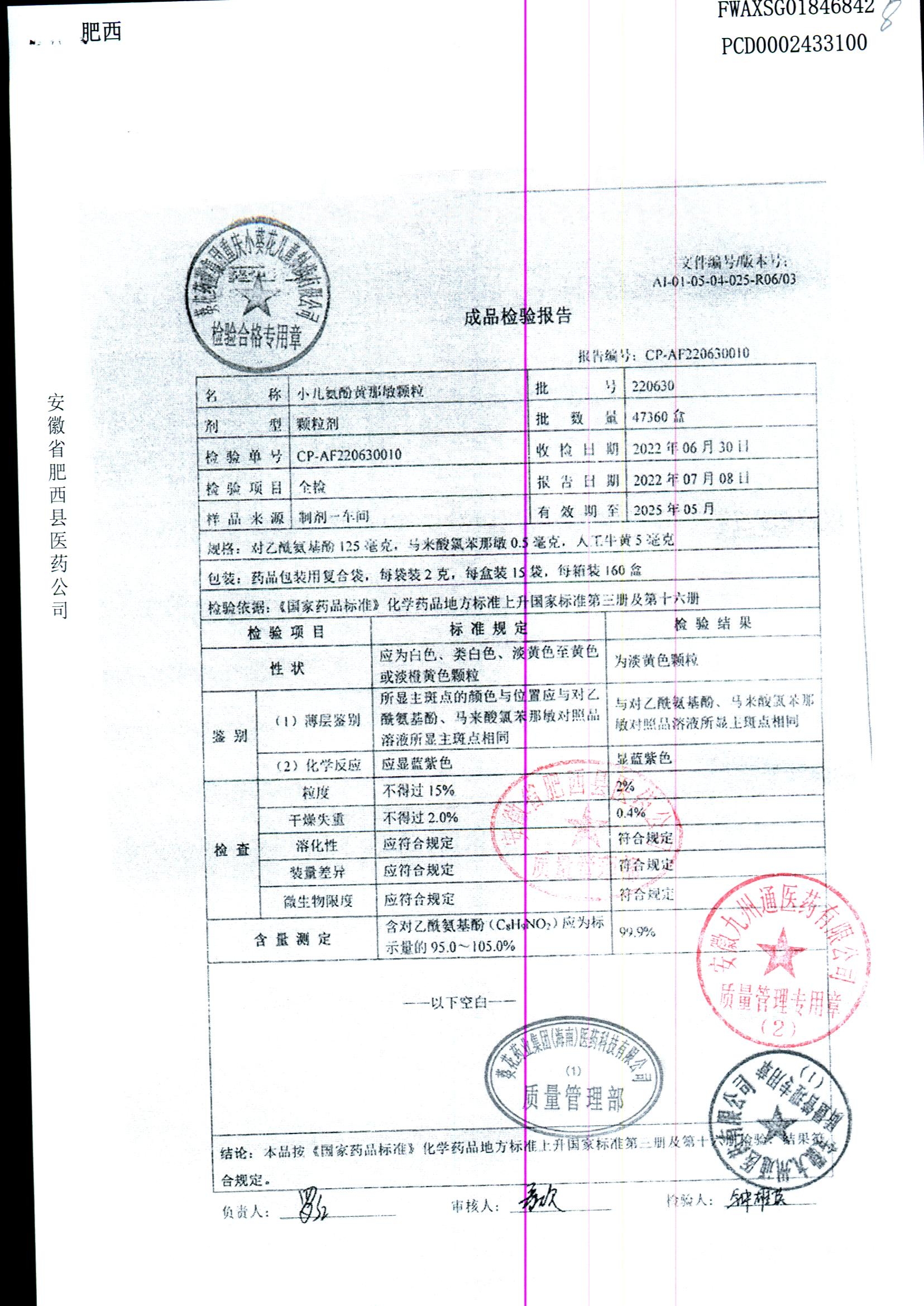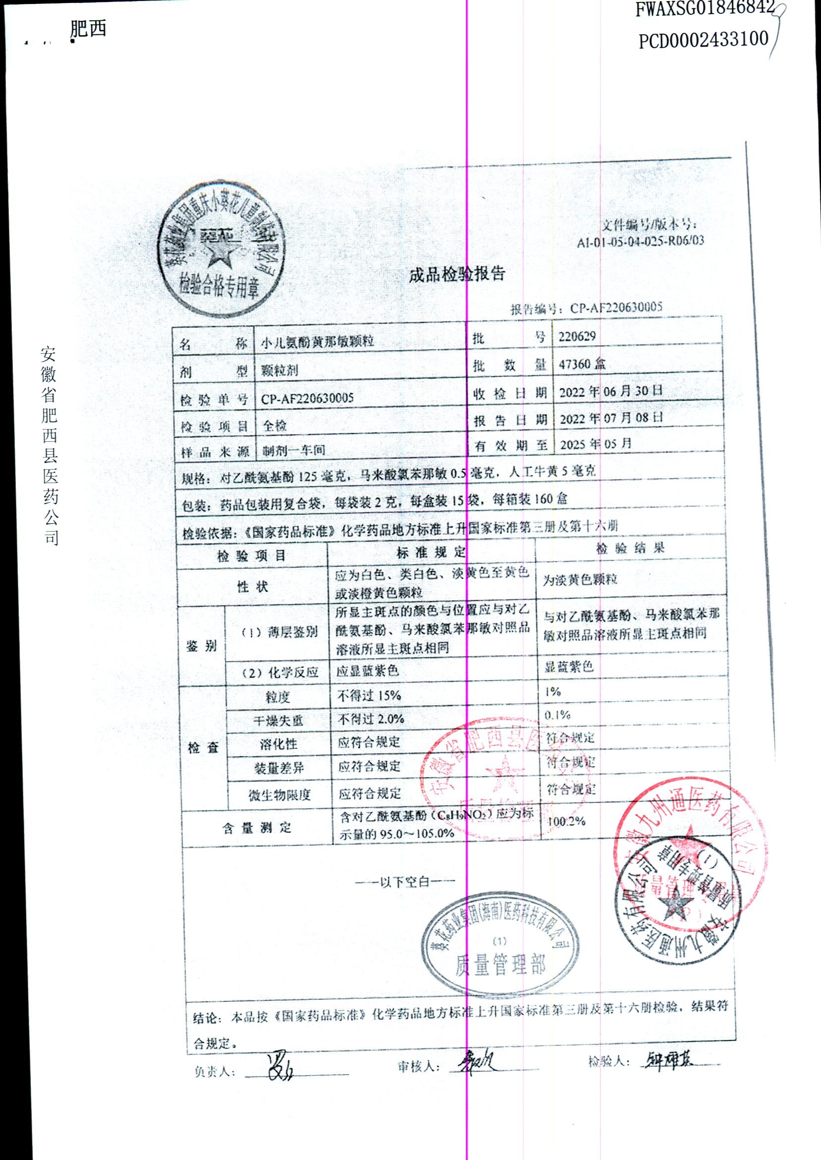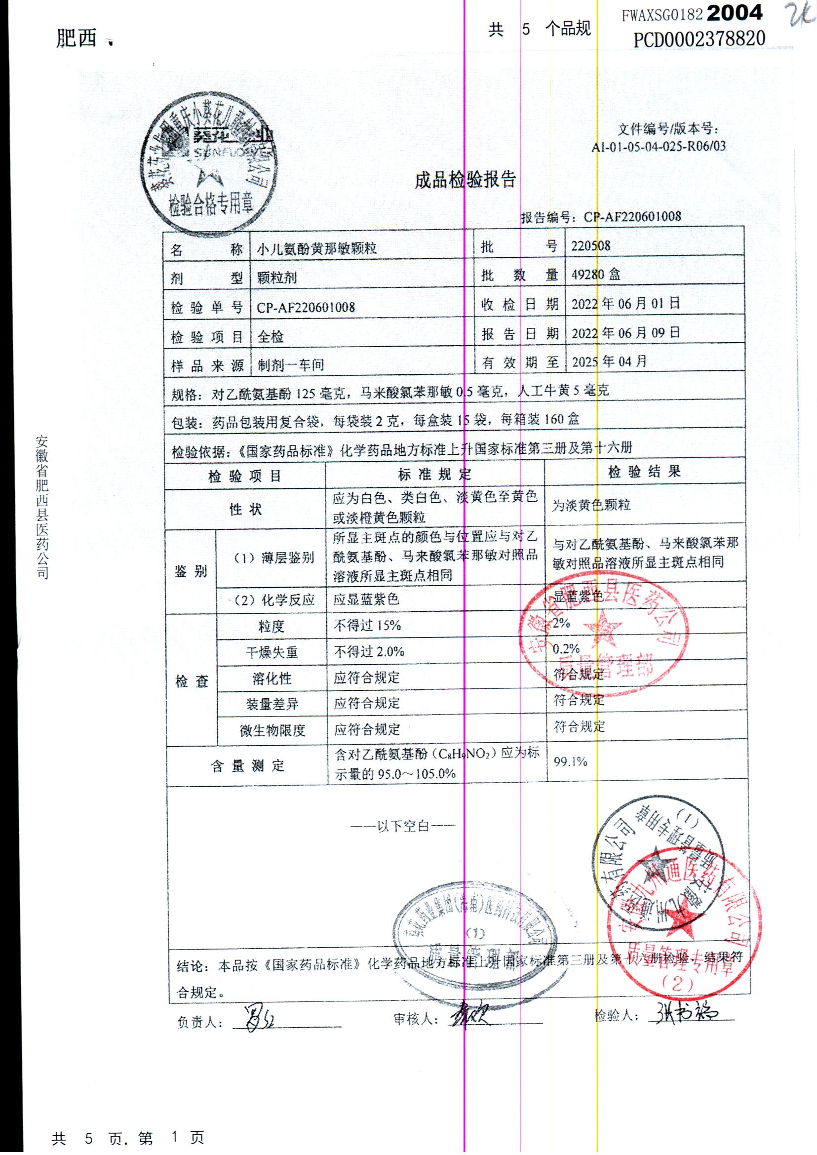 小儿氨酚黄那敏颗粒 | 2g*15袋 | 220508 | 查看详情 |