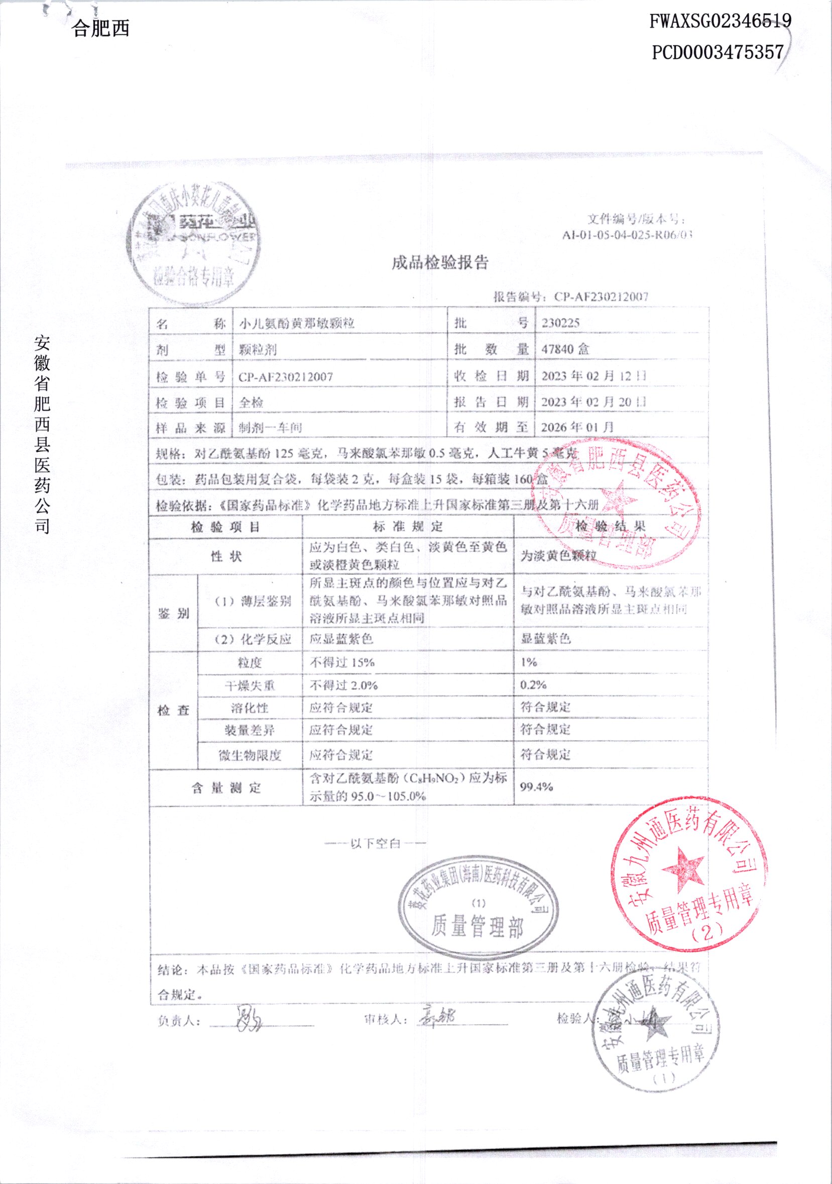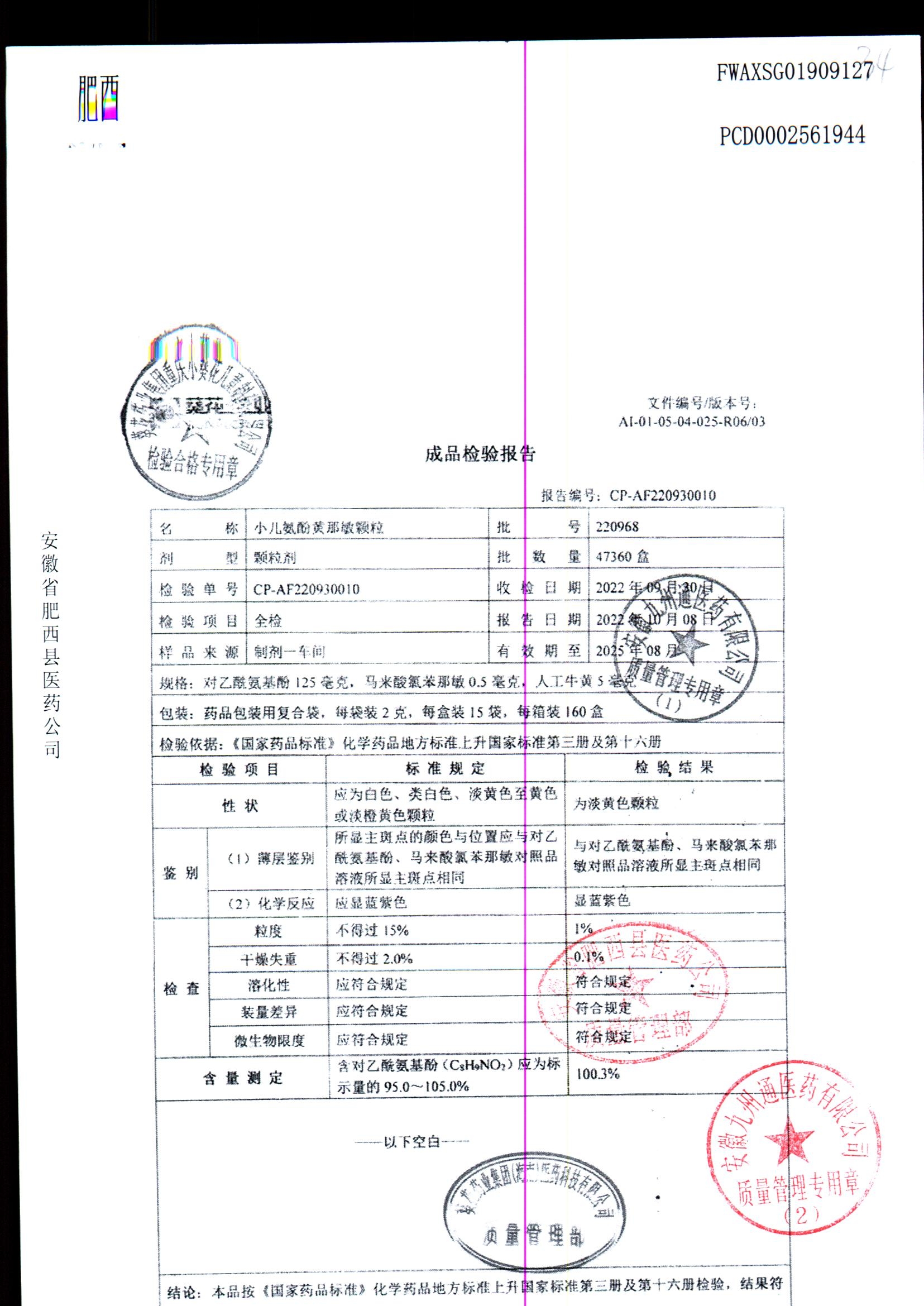 小儿氨酚黄那敏颗粒 | 2g*15袋 | 230225 | 查看详情 |