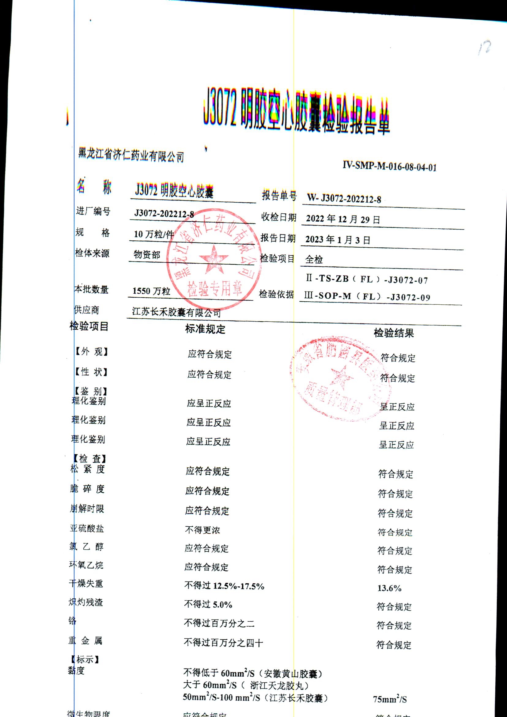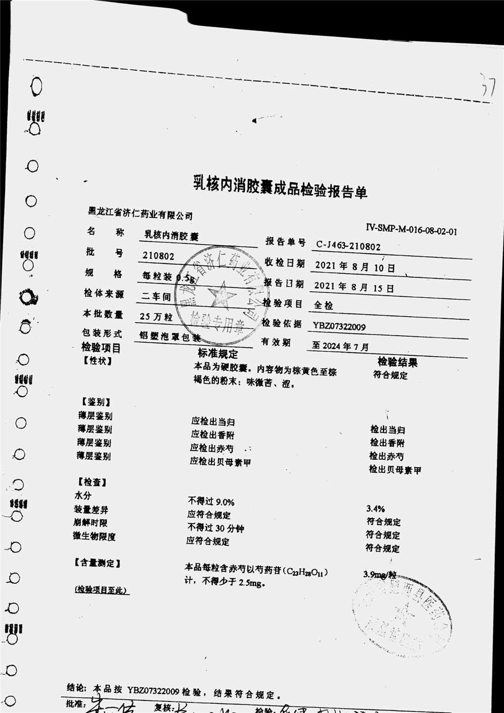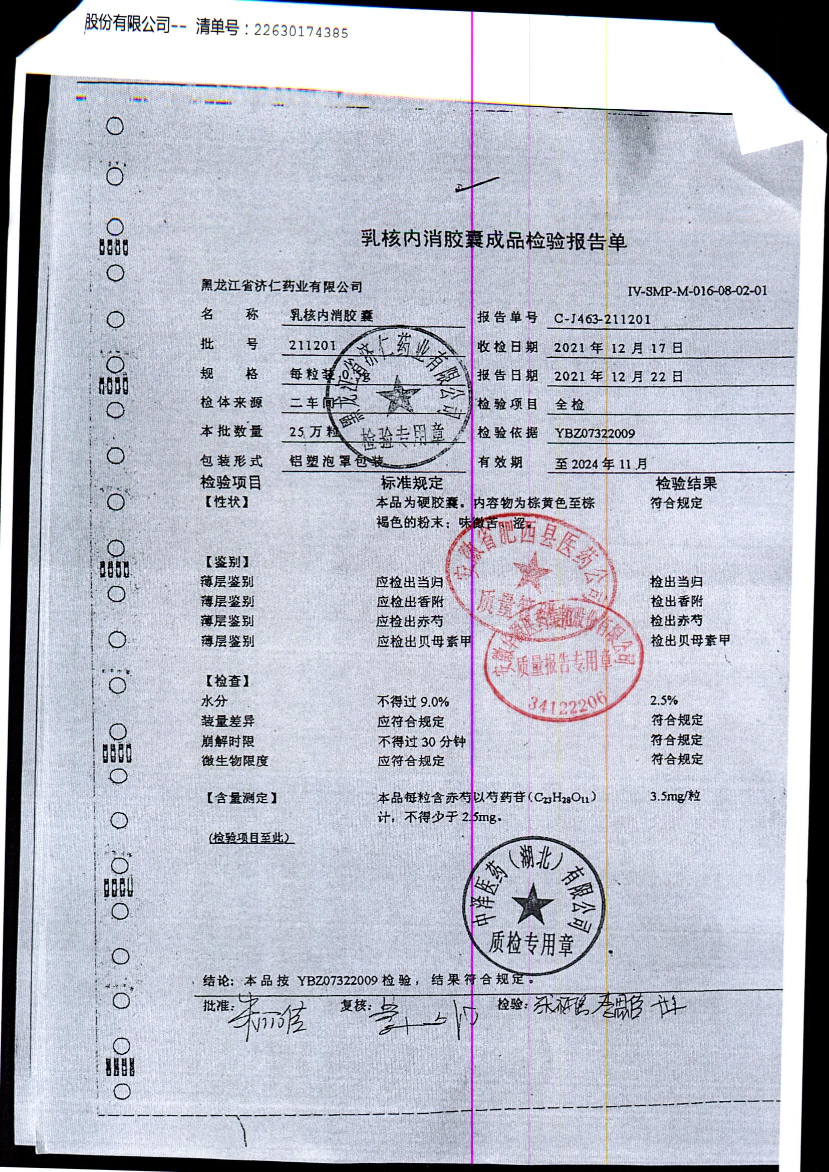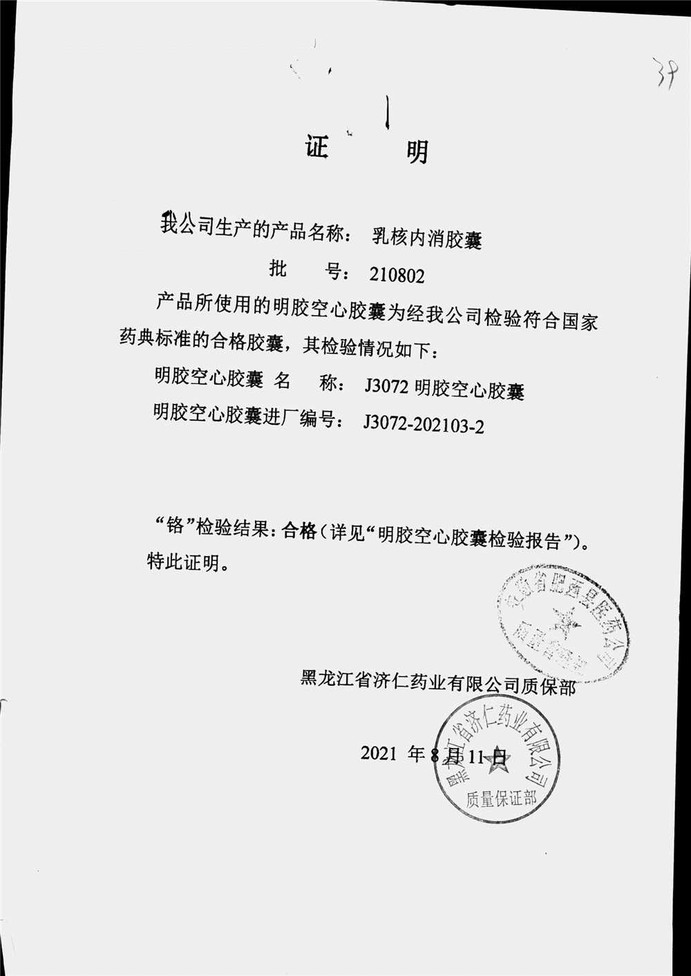 乳核内消胶囊 | 0.5g*10s*3板 | 210802(2/3) | 查看详情 |