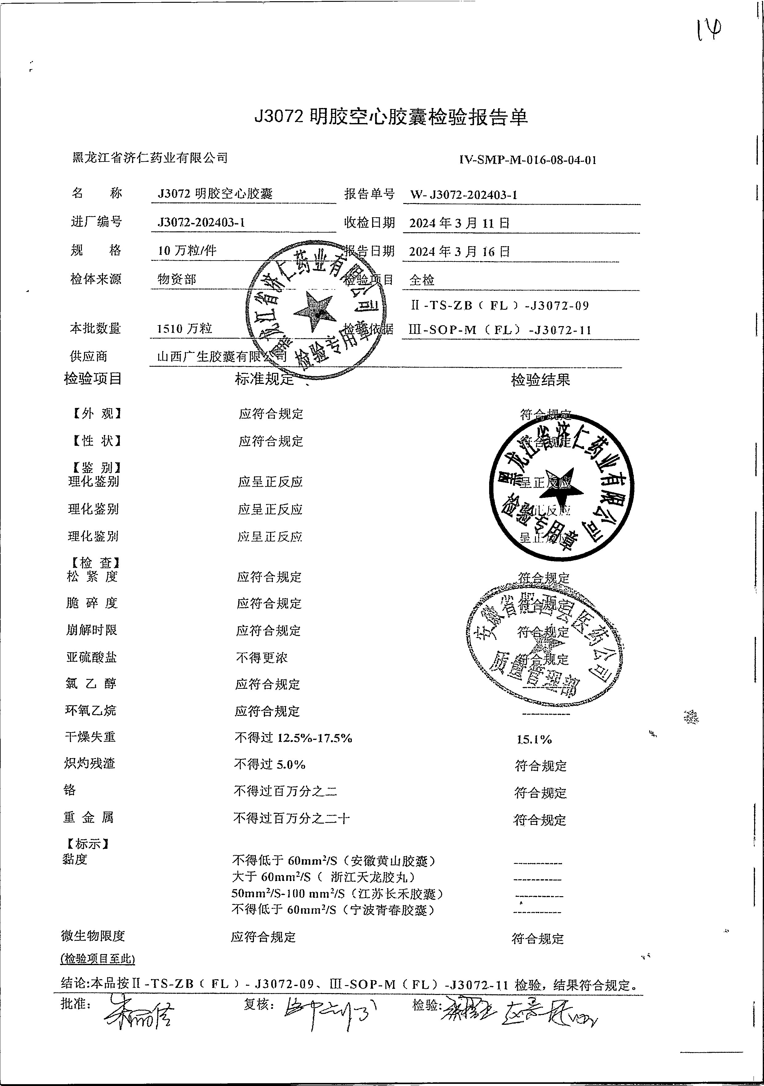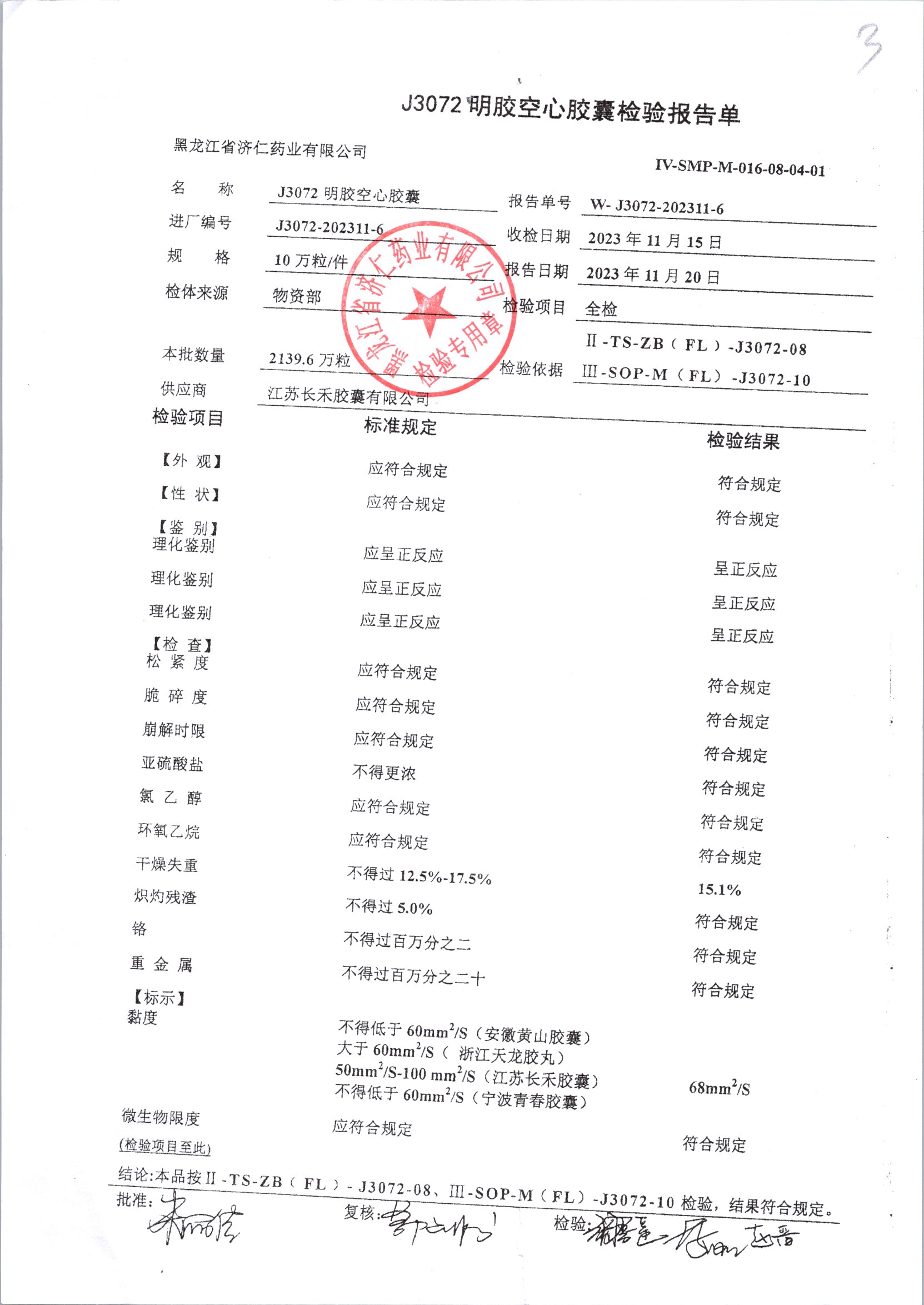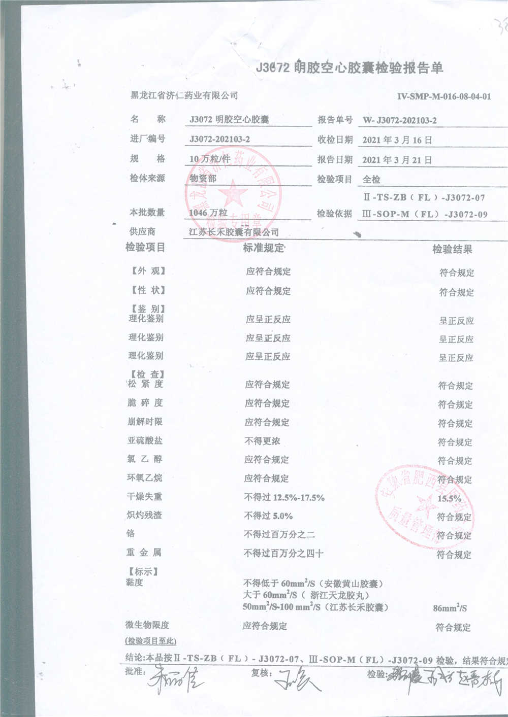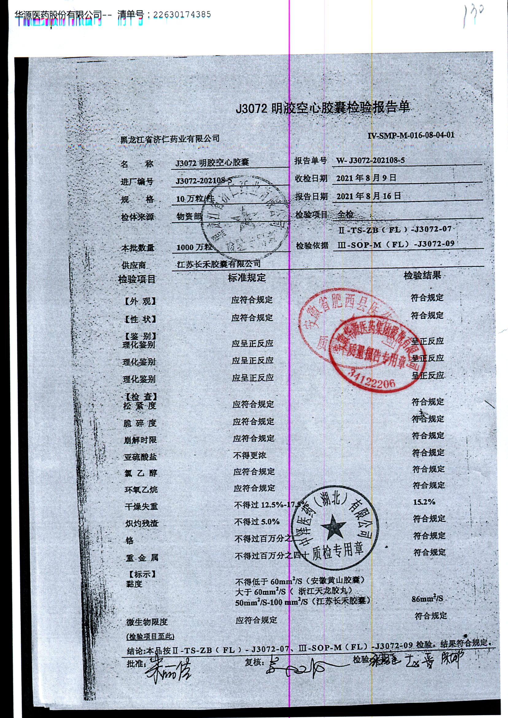 乳核内消胶囊 | 0.5g*10s*3板 | 210802(2/3) | 查看详情 |
