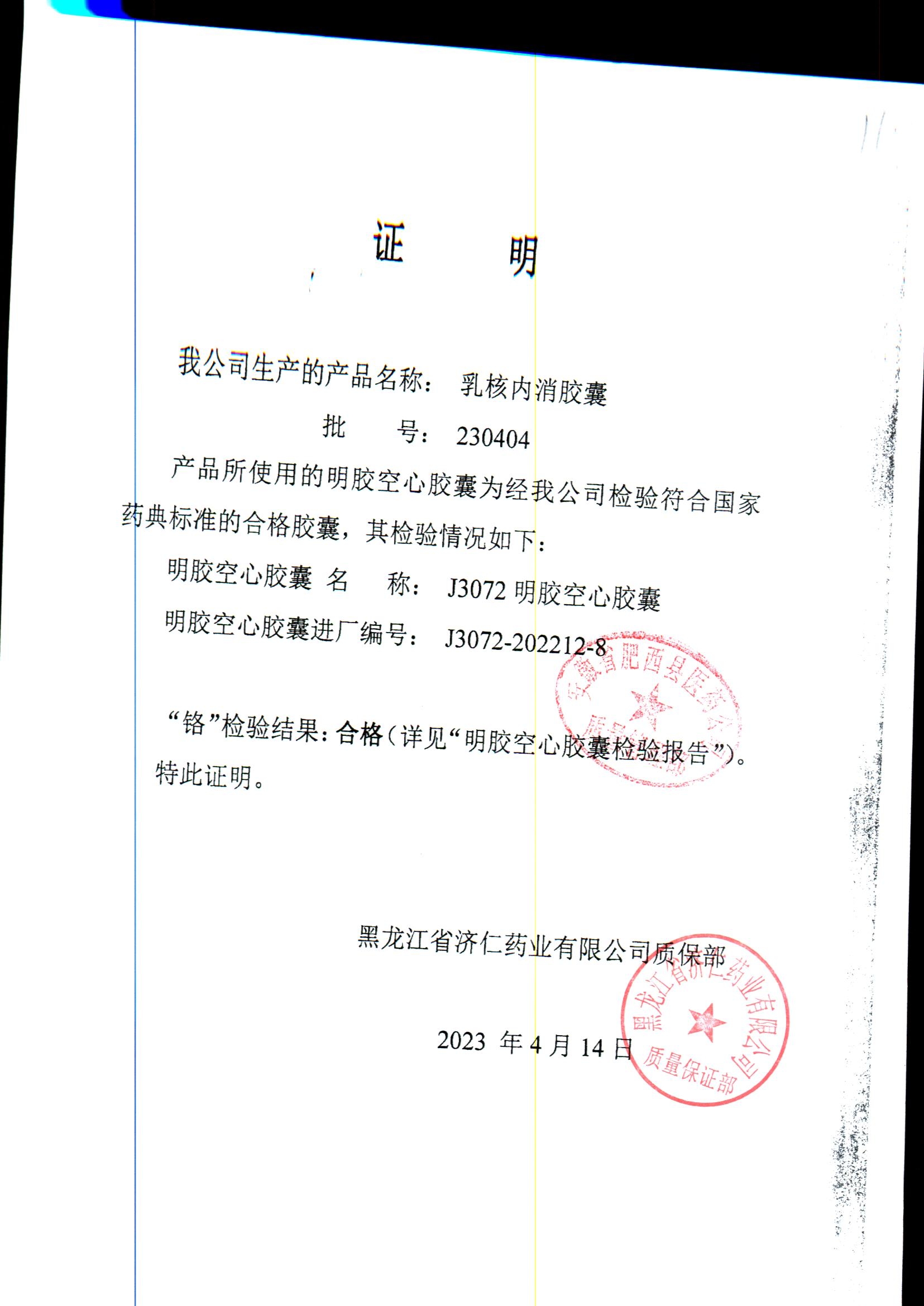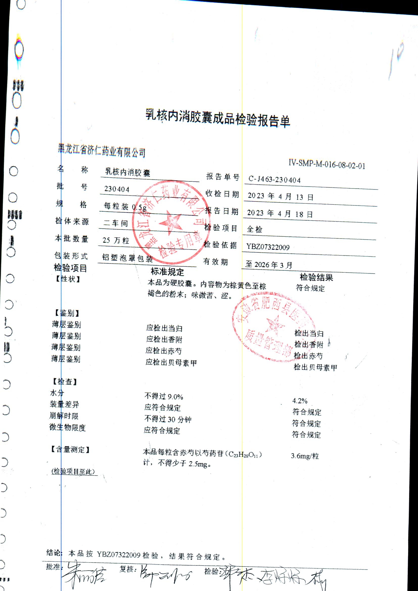 乳核内消胶囊 | 0.5g*10s*3板 | 220405/2 | 查看详情 |