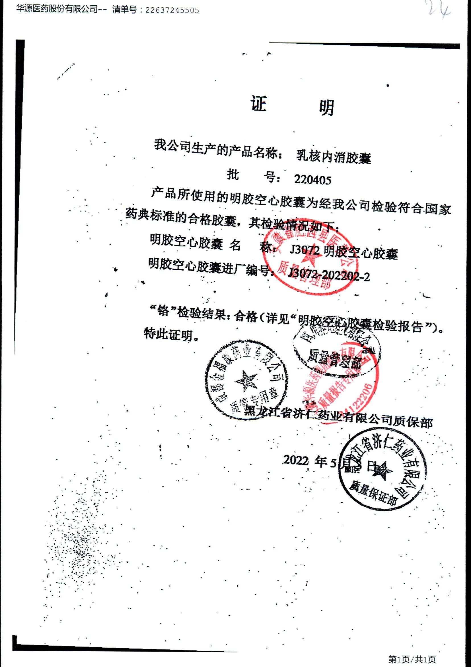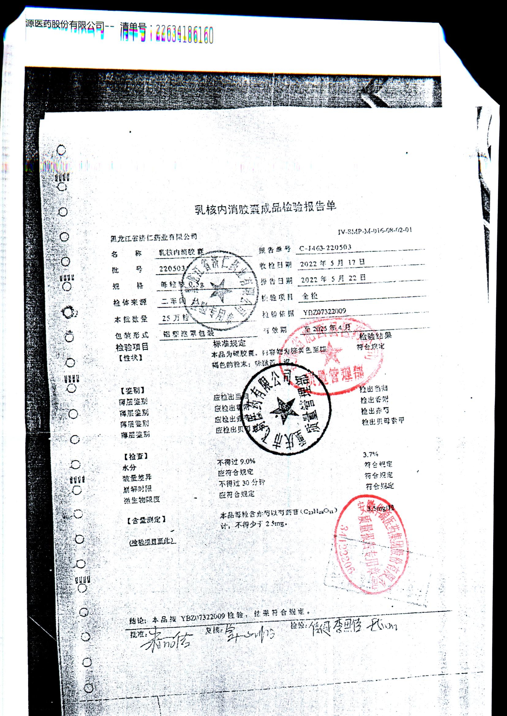 乳核内消胶囊 | 0.5g*10s*3板 | 220503/1 | 查看详情 |