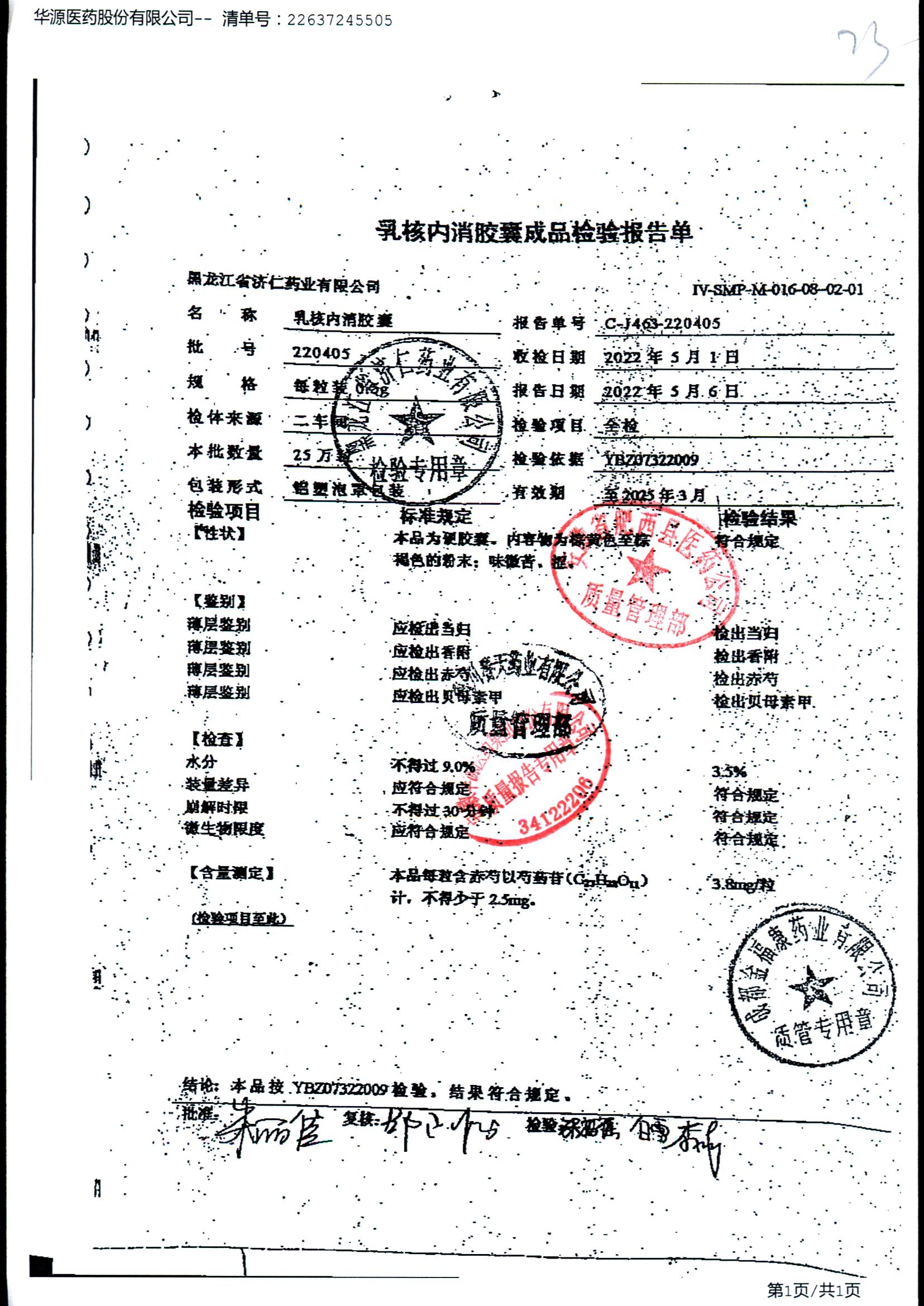 乳核内消胶囊 | 0.5g*10s*3板 | 220405/1 | 查看详情 |