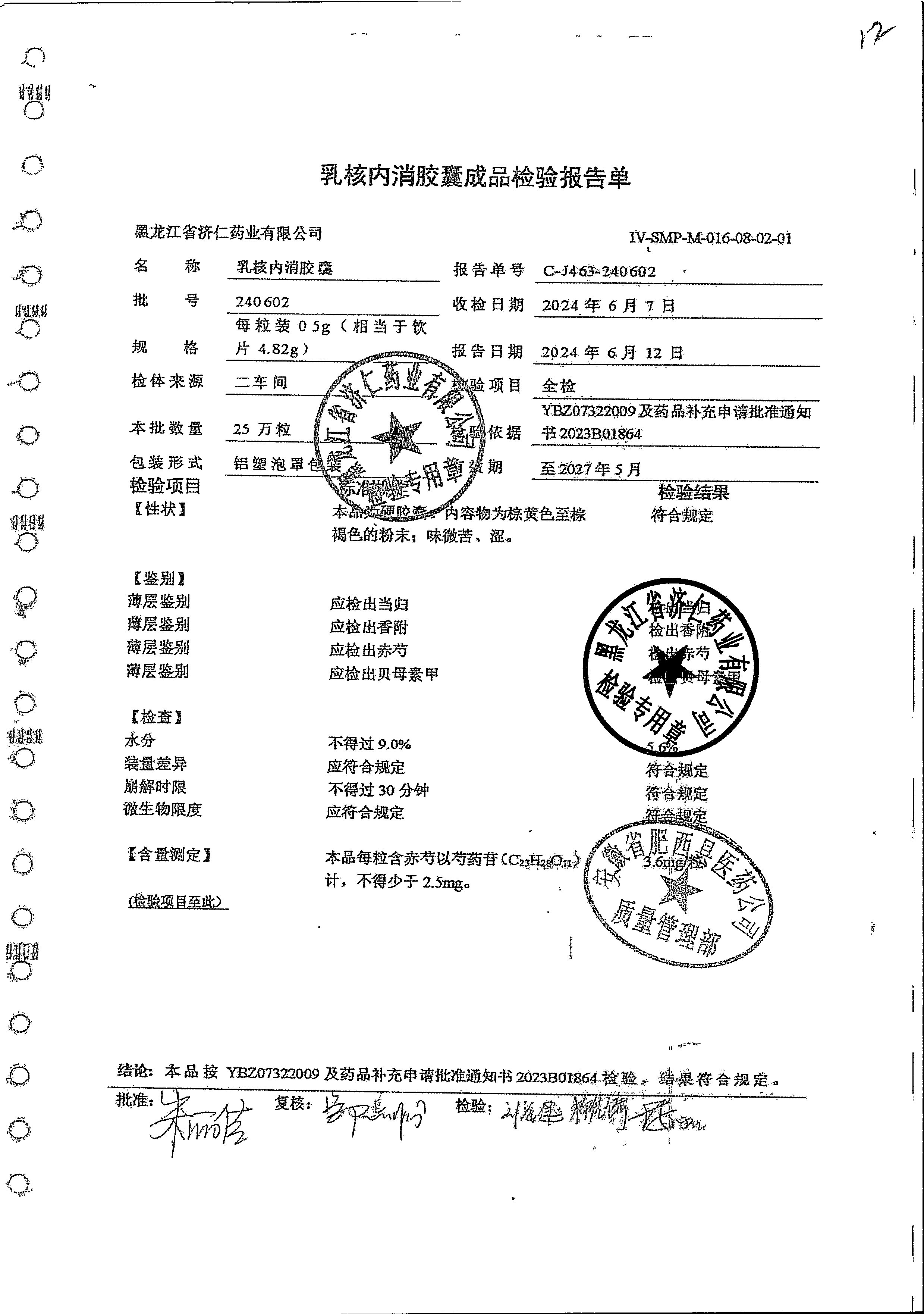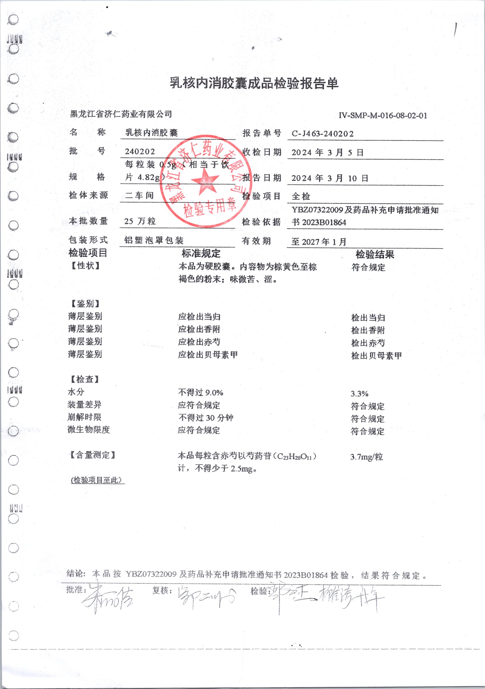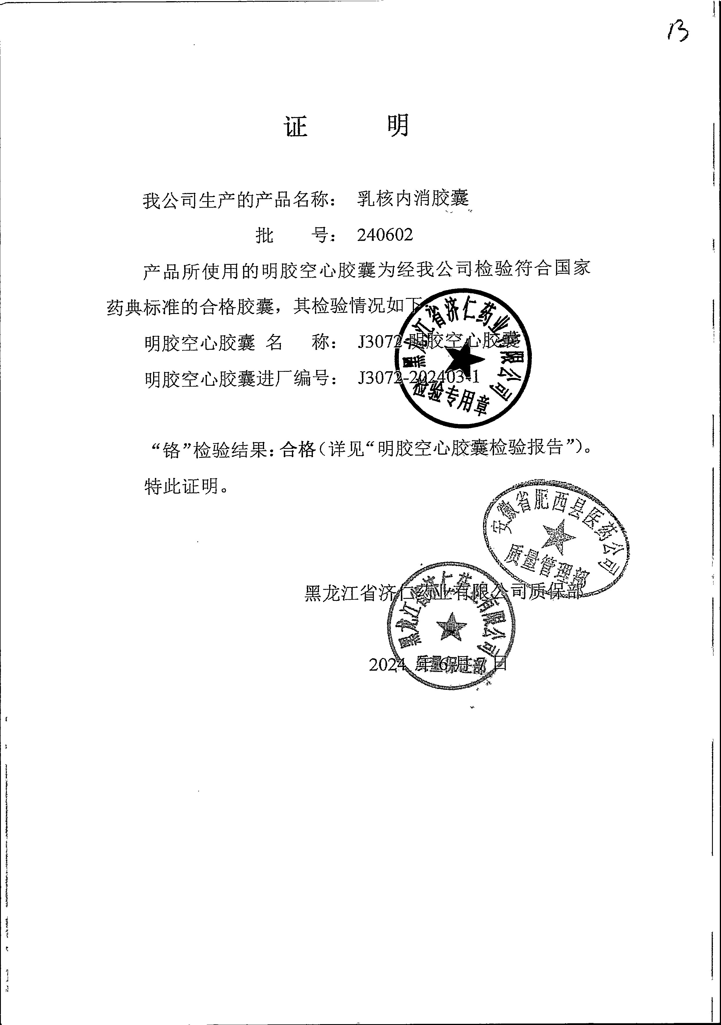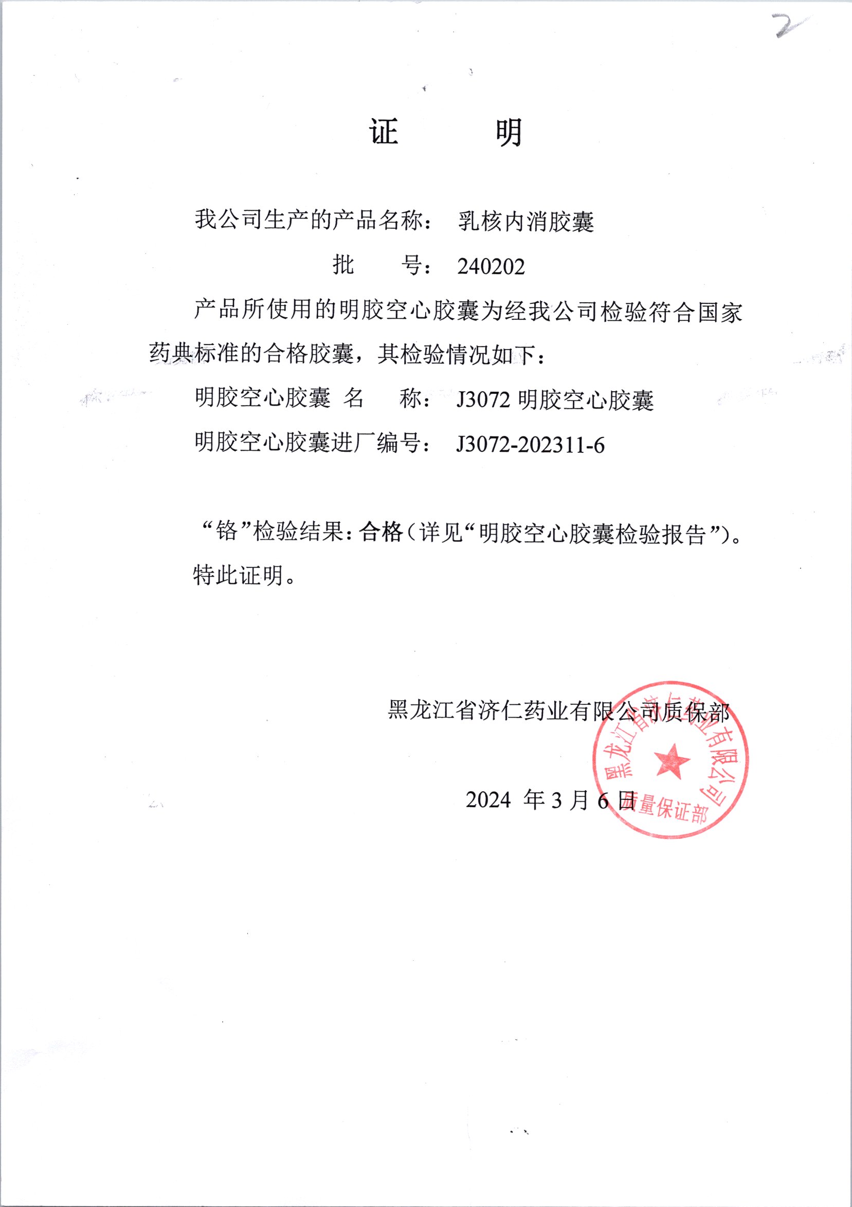 乳核内消胶囊 | 0.5g*10s*3板 | 240602/2 | 查看详情 |