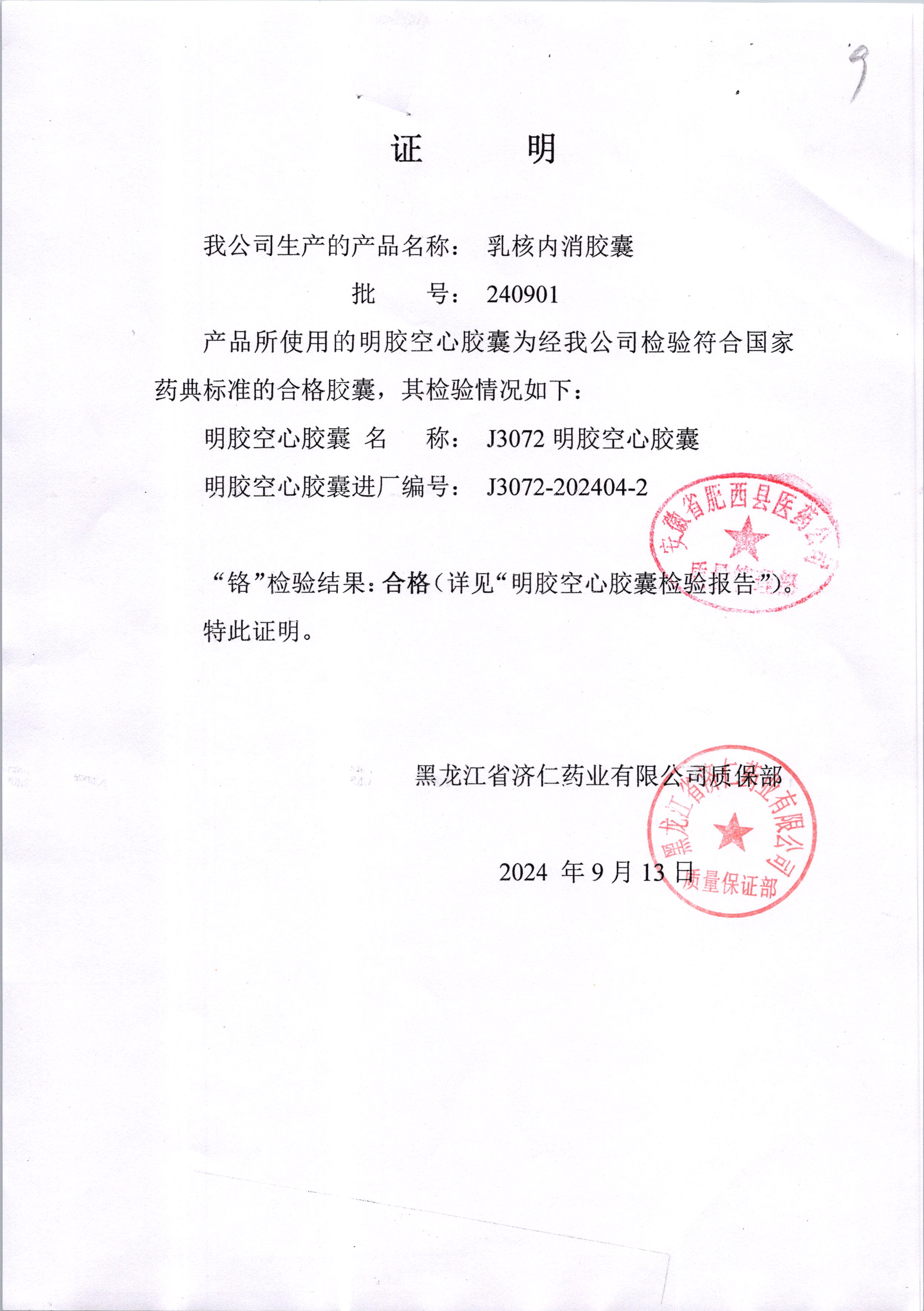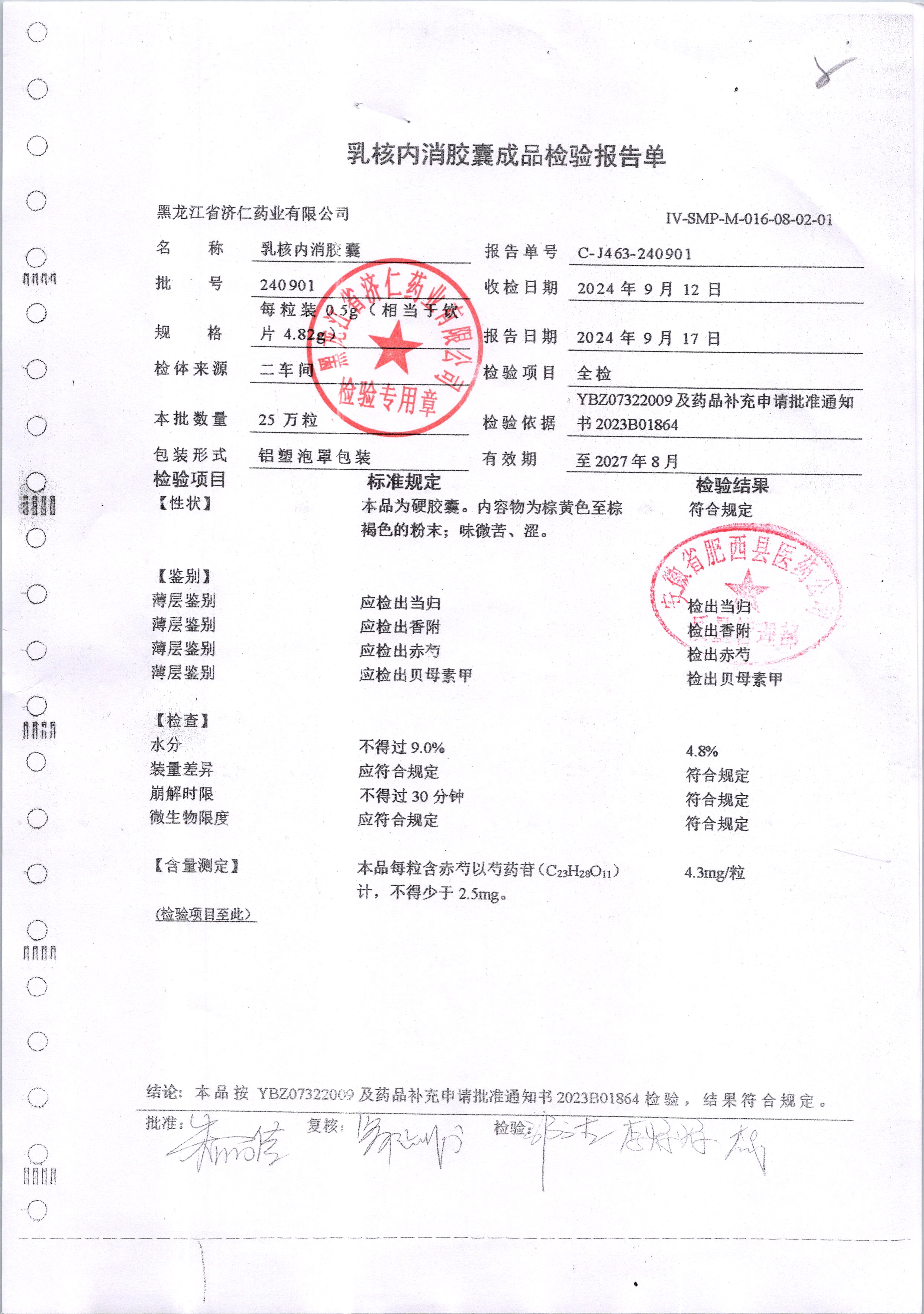 乳核内消胶囊 | 0.5g*10s*3板 | 240901/2 | 查看详情 |