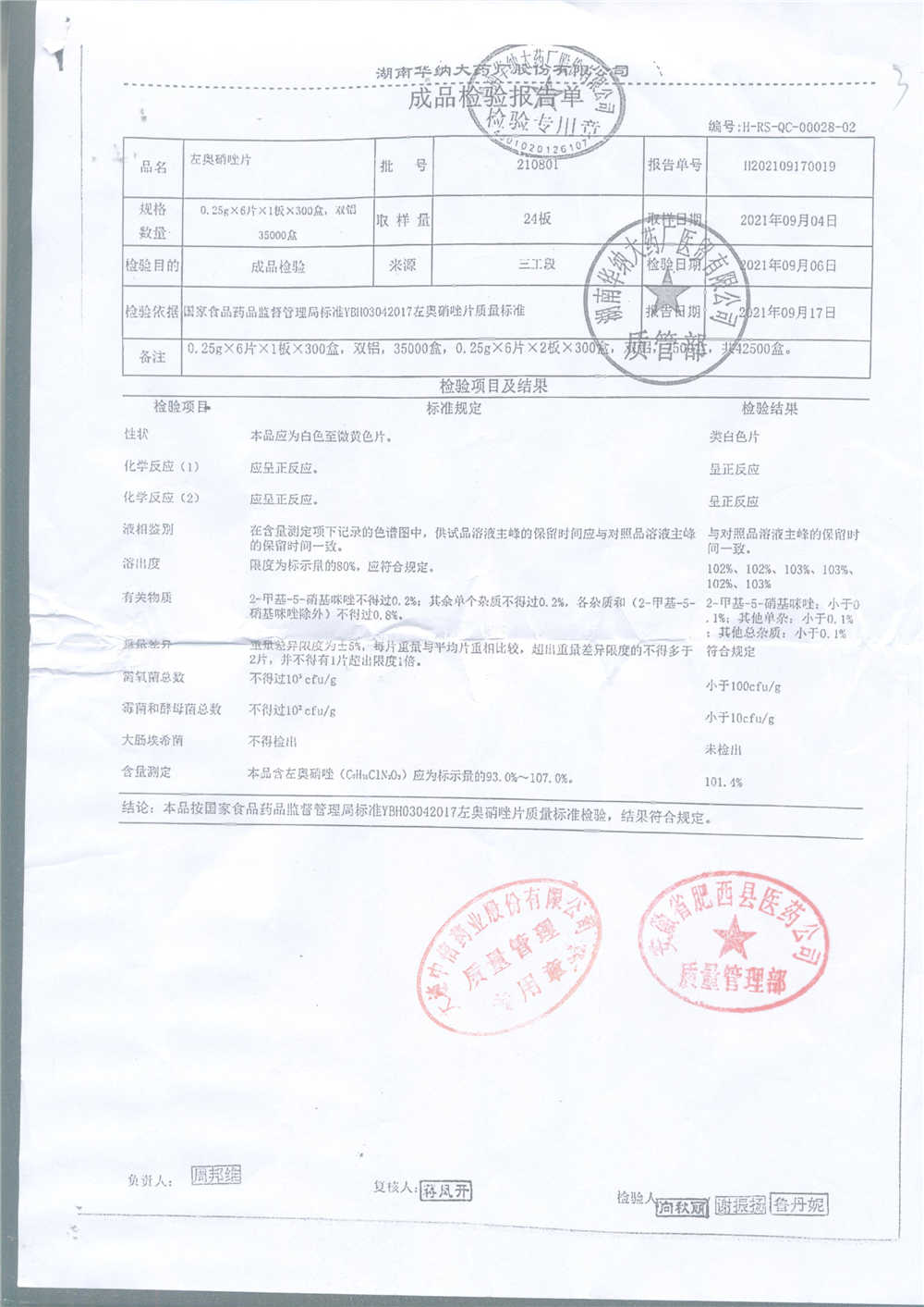 药检报告