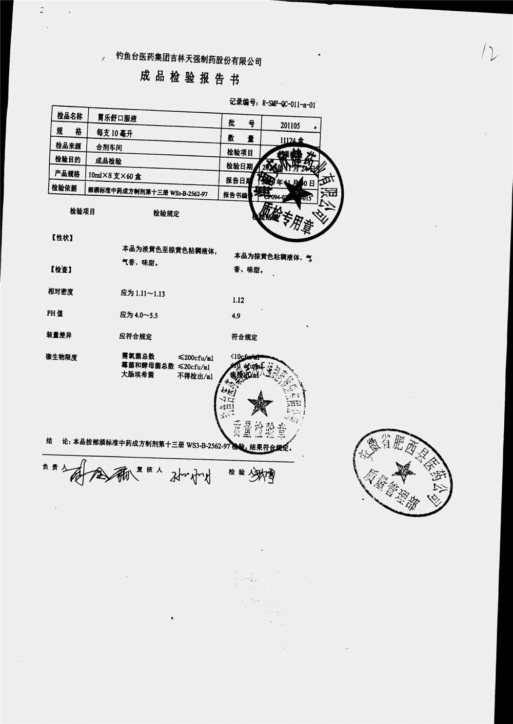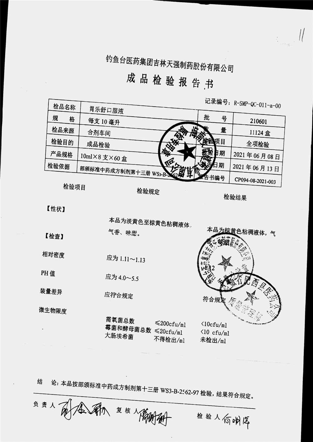 药检报告
