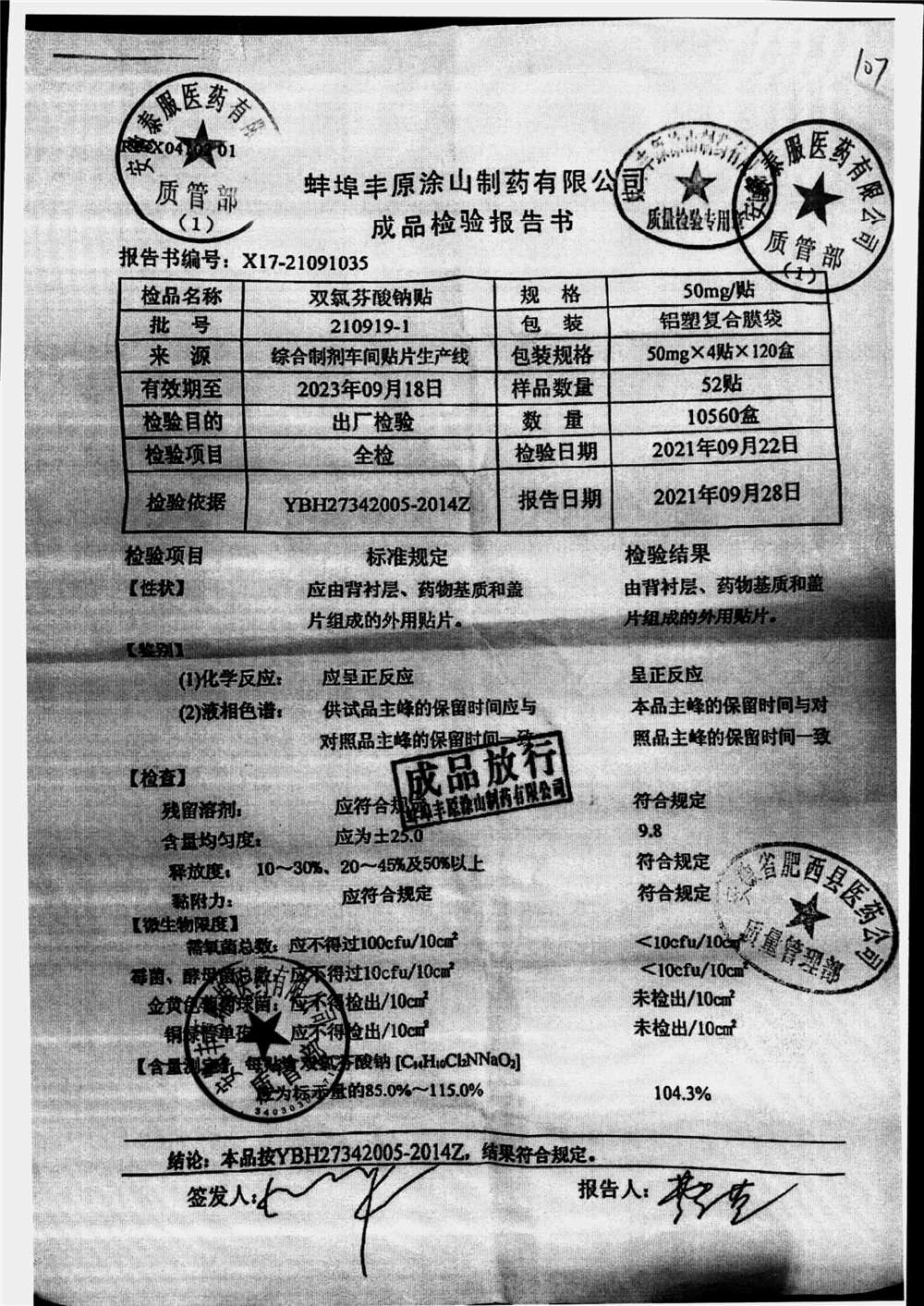 双氯芬酸钠贴 | 50mg*4贴 | 210919-1 | 查看详情 |