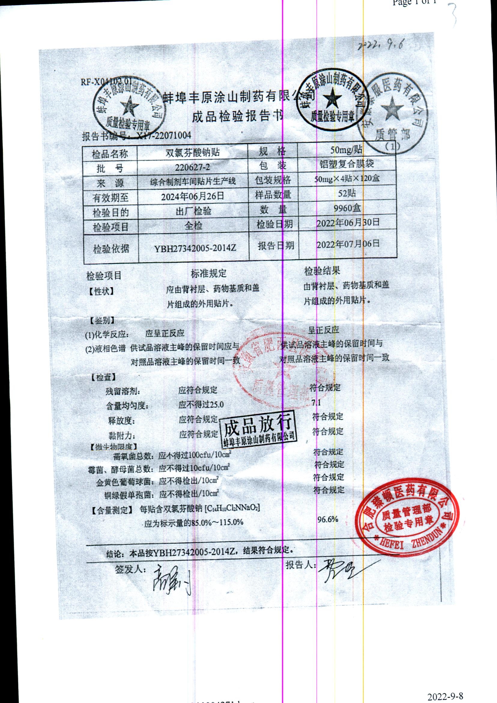 双氯芬酸钠贴 | 50mg*4贴 | 220627-2 | 查看详情 |