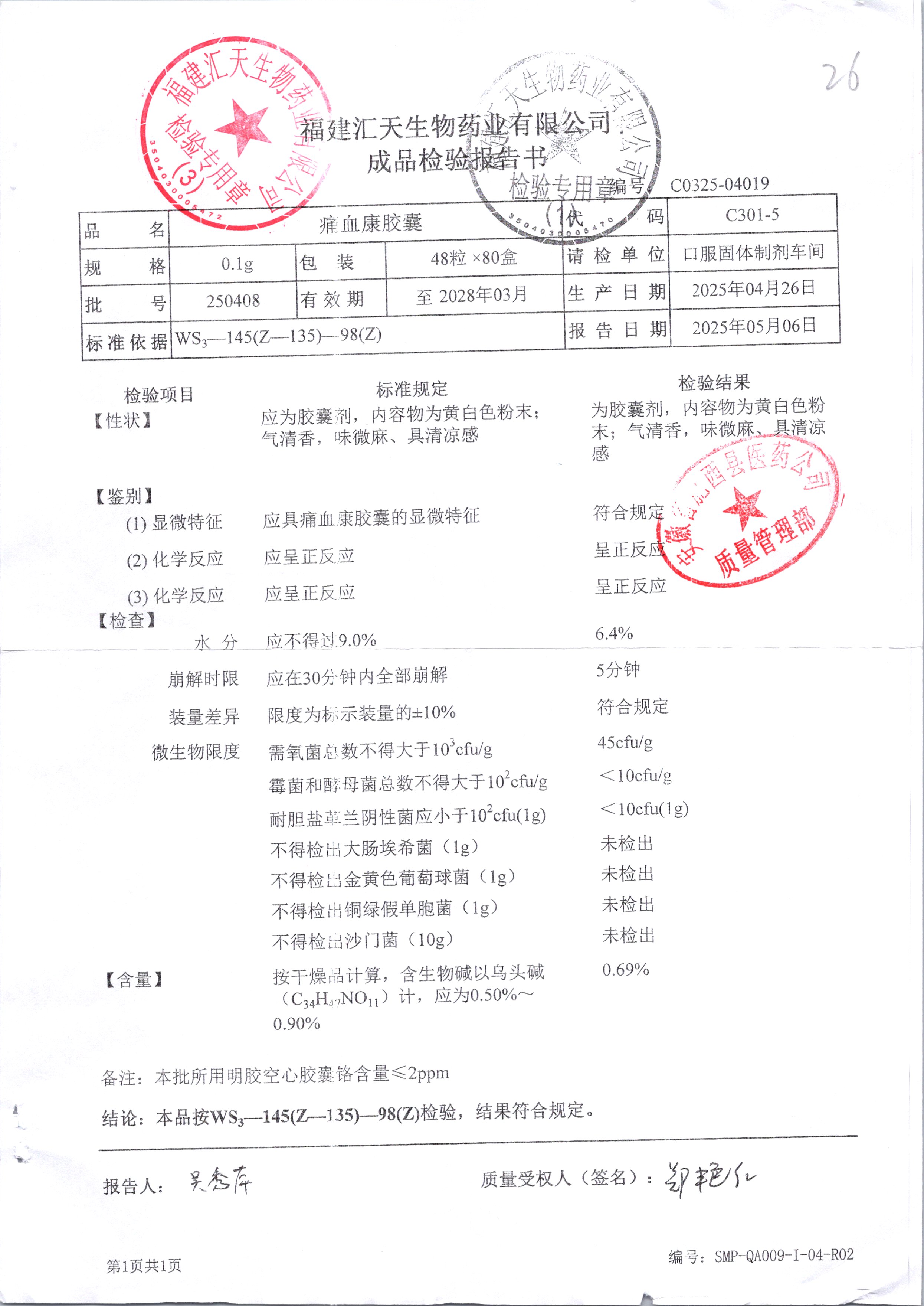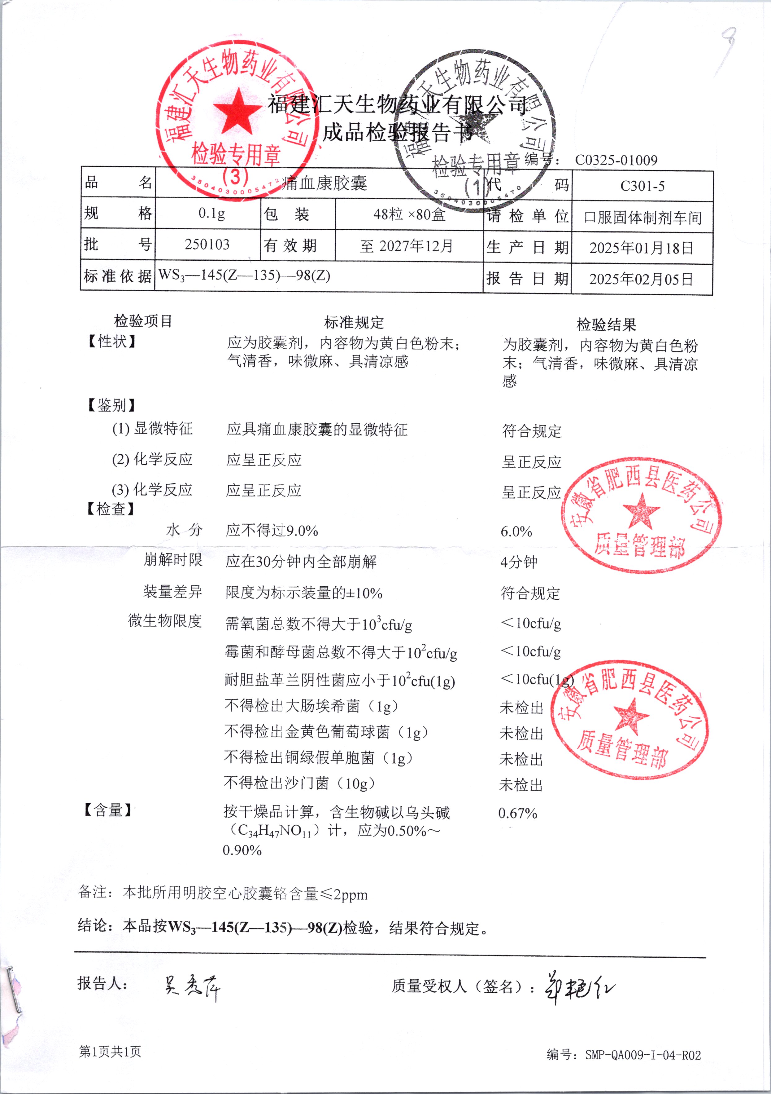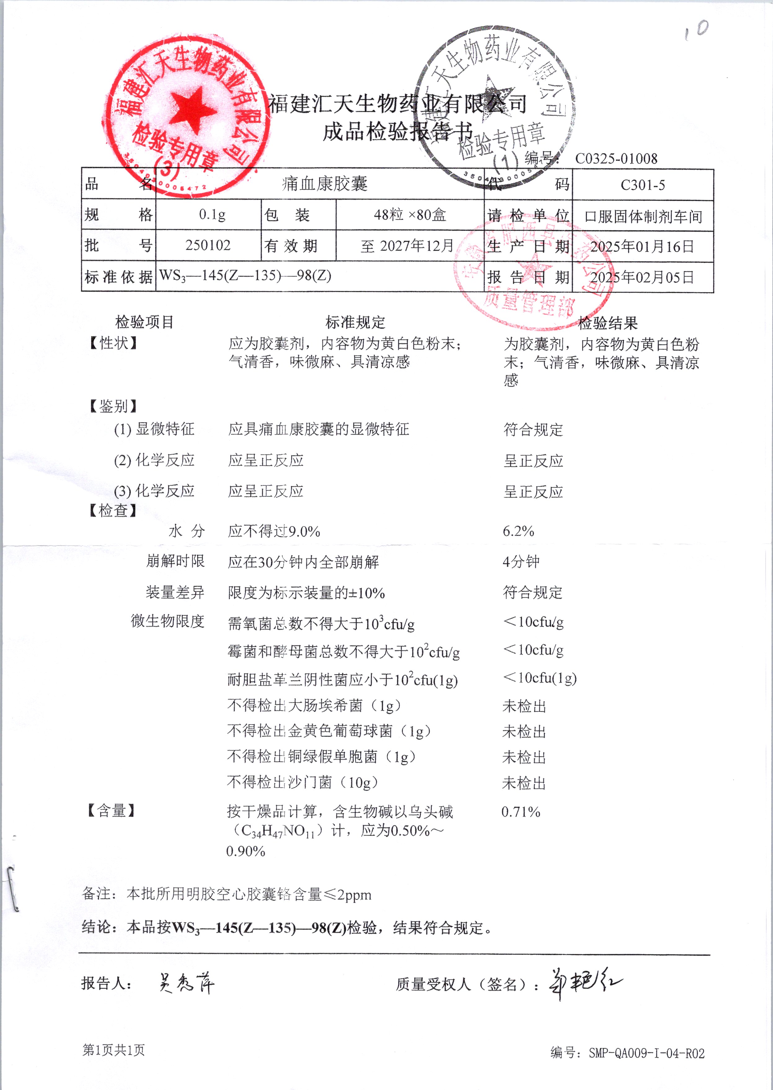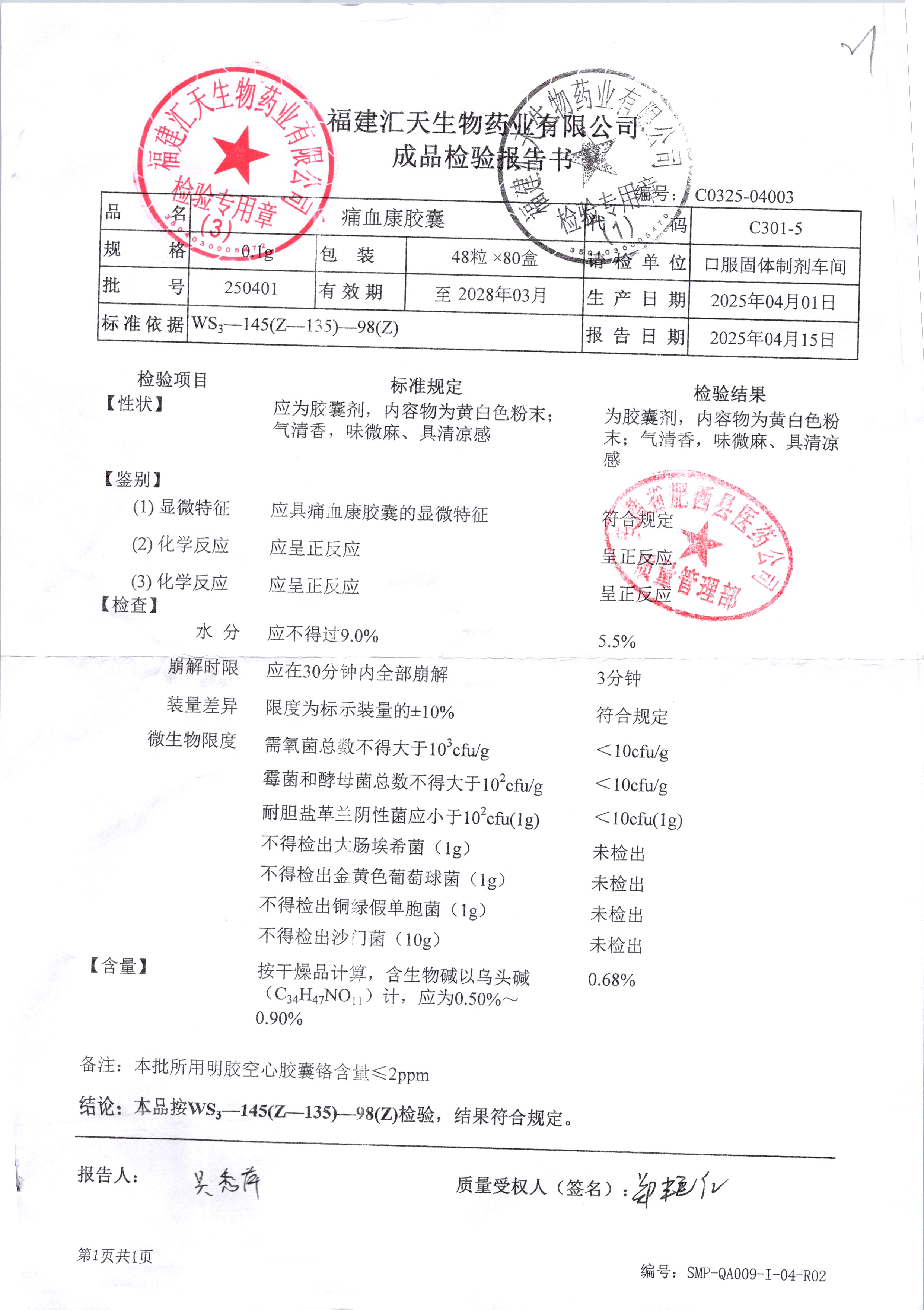 痛血康胶囊 | 0.2g*12s | 250401 | 查看详情 |