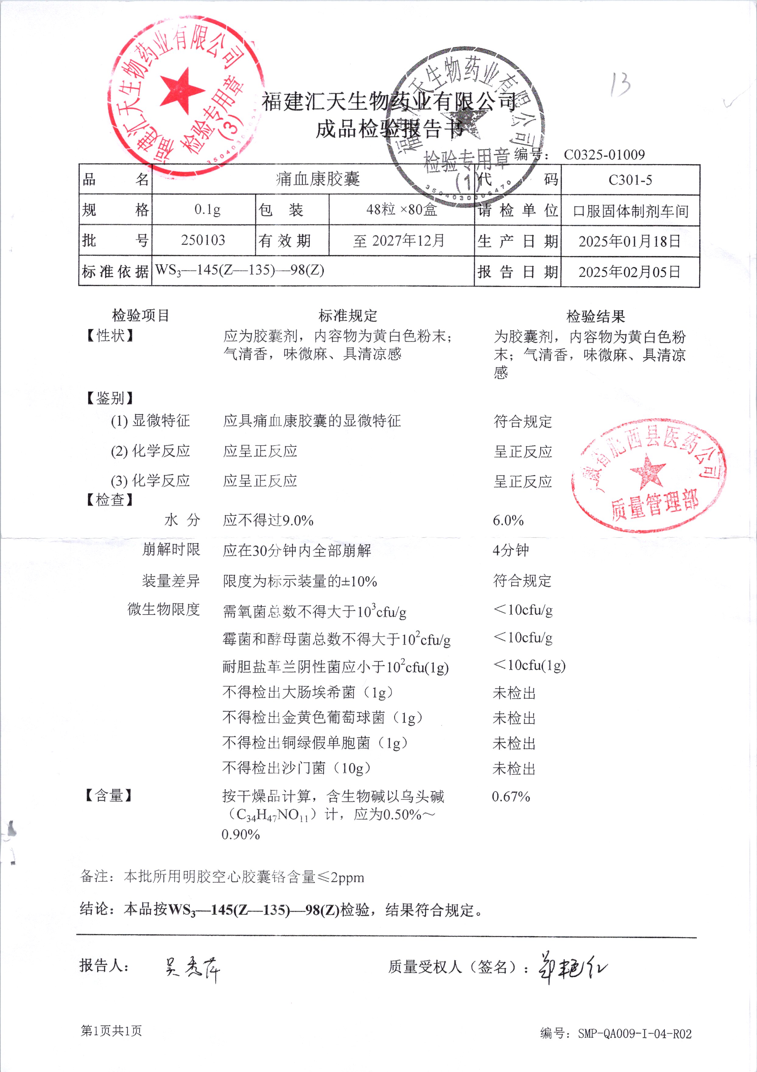 痛血康胶囊 | 0.2g*12s | 240601 | 查看详情 |