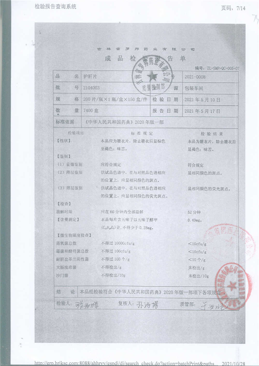 护肝片 | 200片 | 2310001 | 查看详情 |