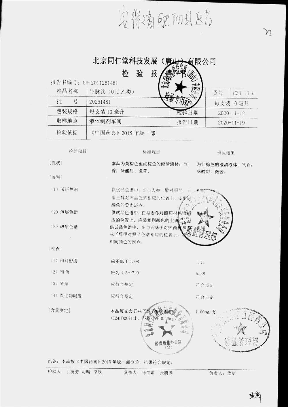 生脉饮 | 10ml*10支 | 20261481 | 查看详情 |