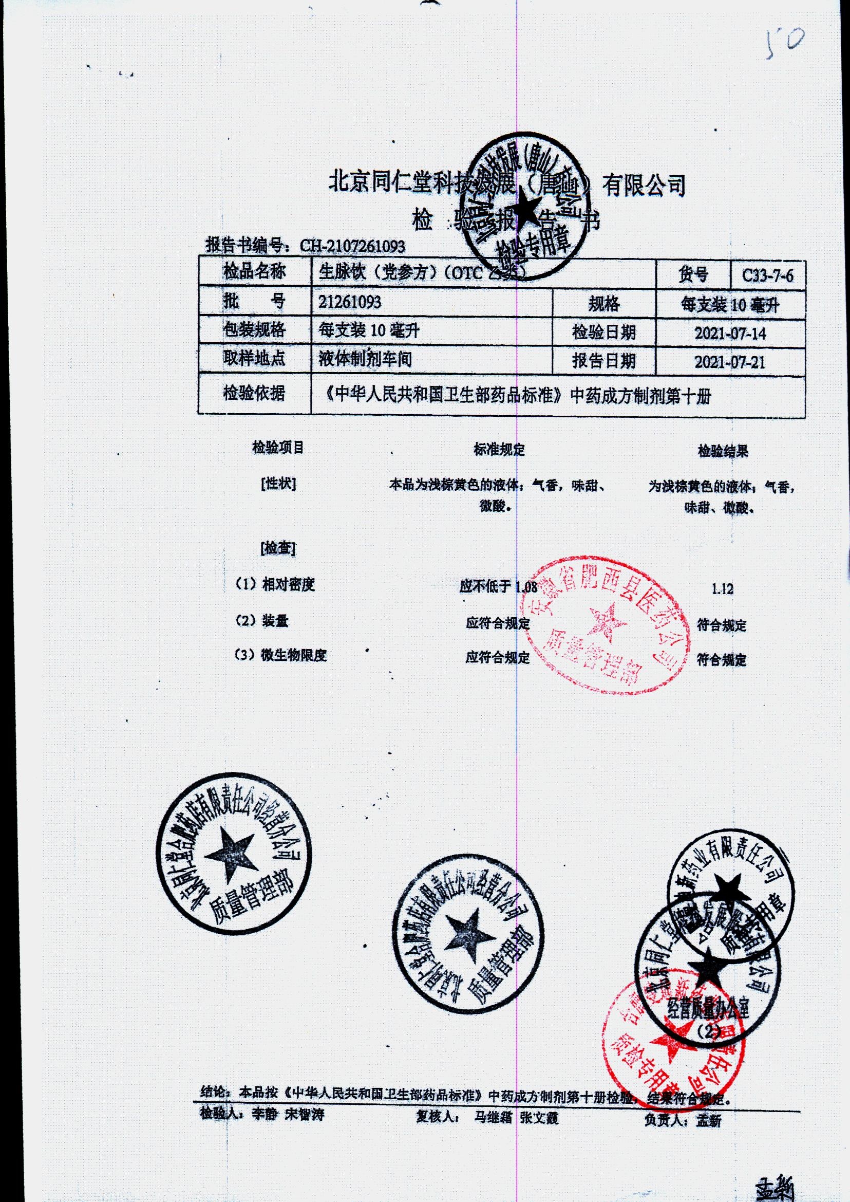 生脉饮 | 10ml*10支 | 21261093 | 查看详情 |