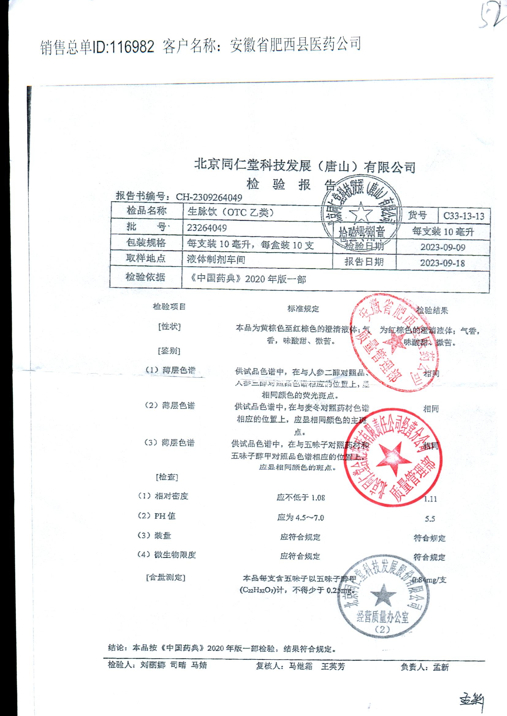 生脉饮 | 10ml*10支 | 23064049 | 查看详情 |
