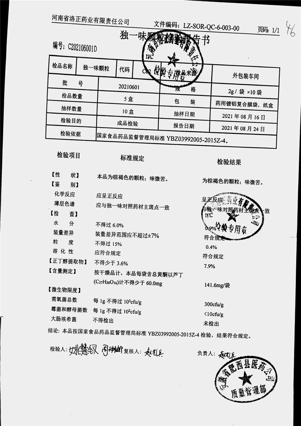 药检报告