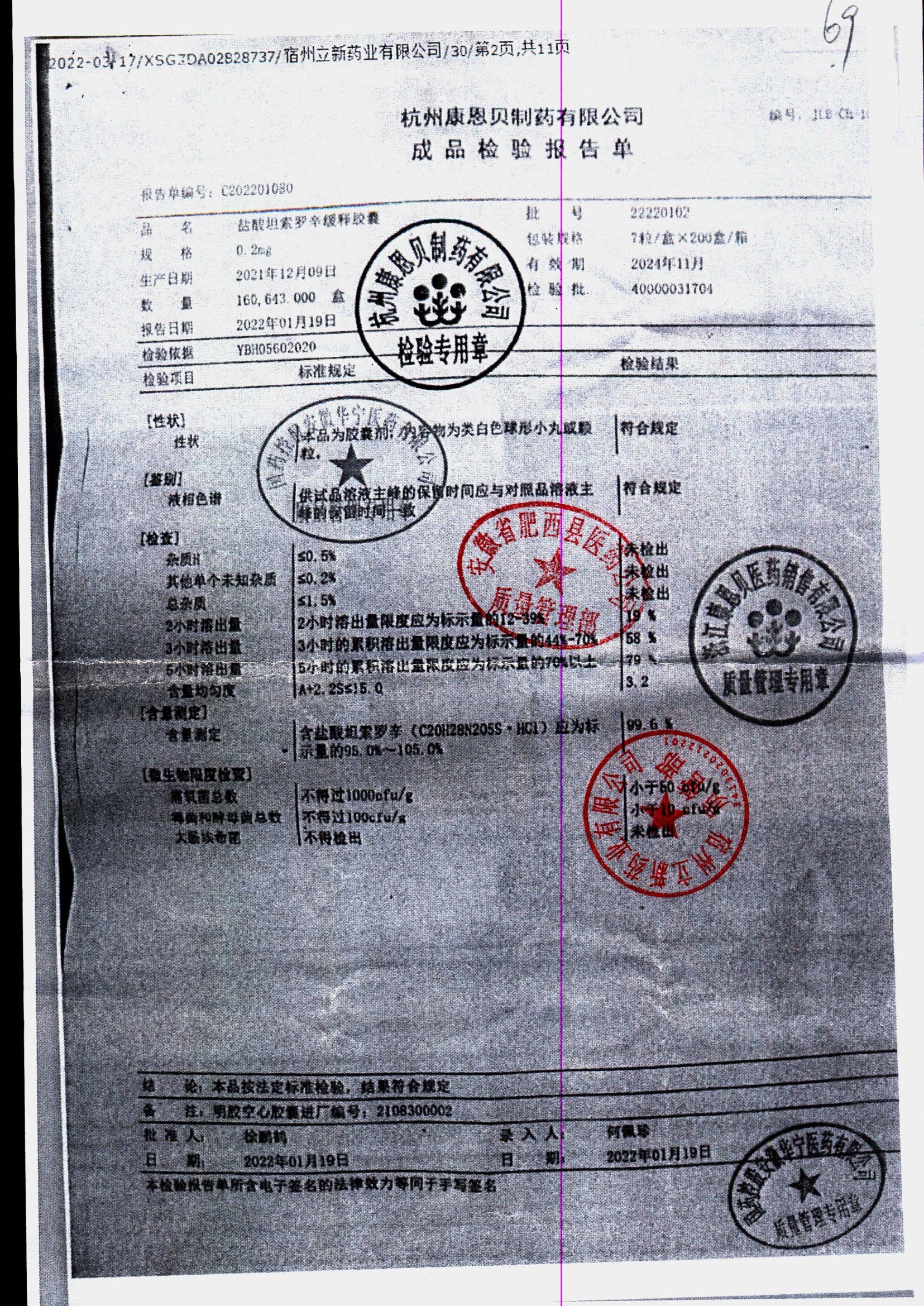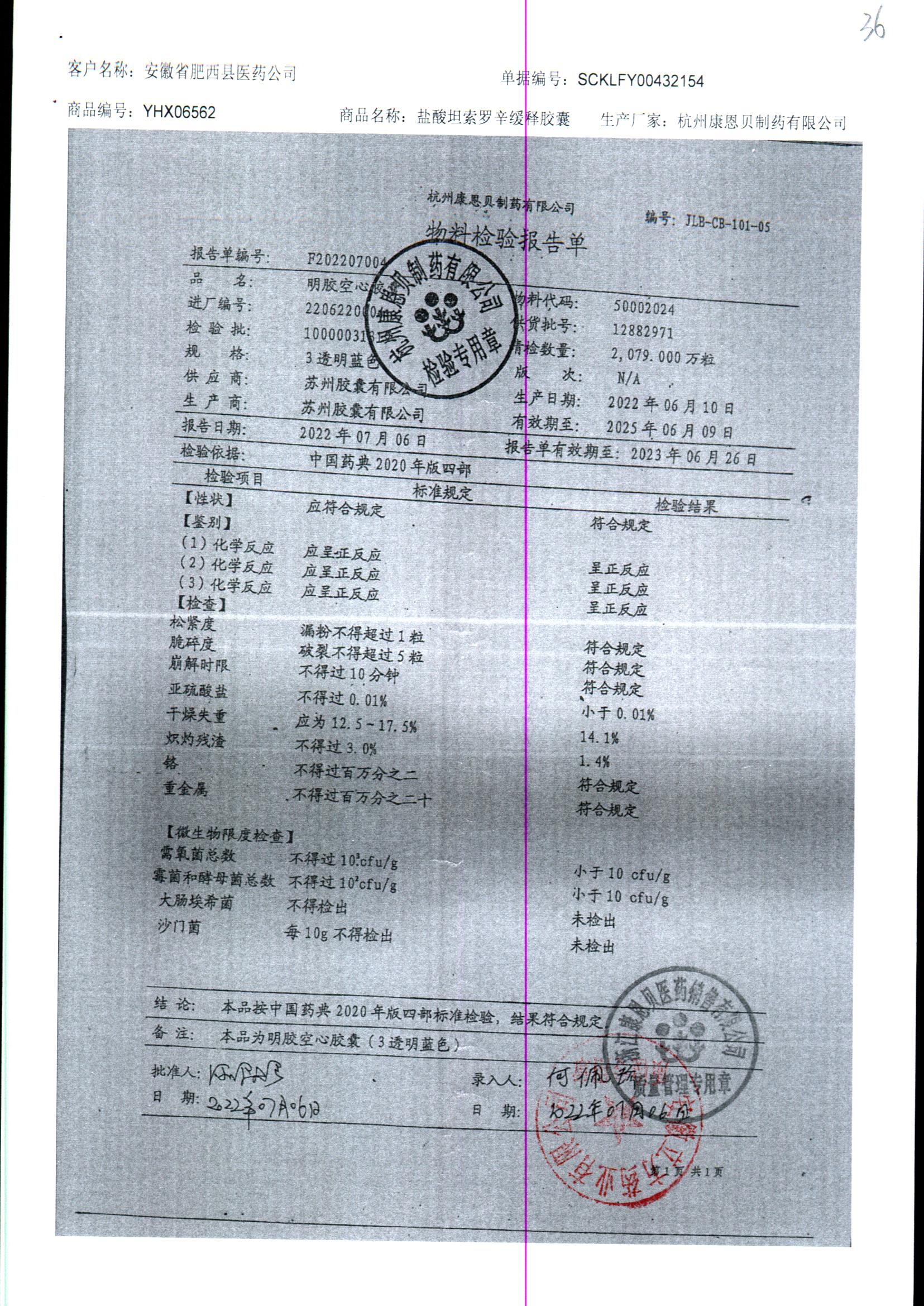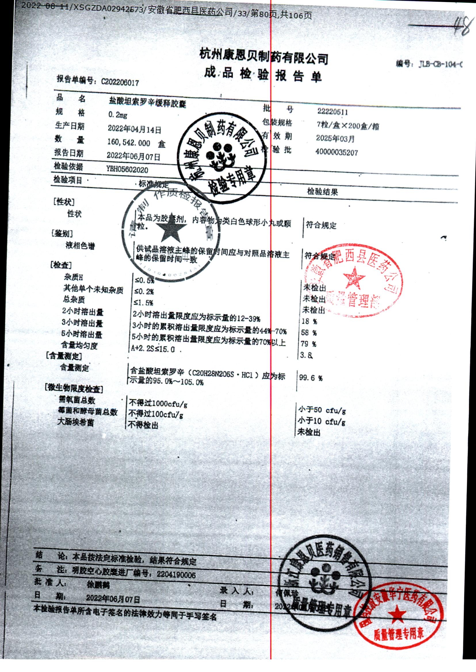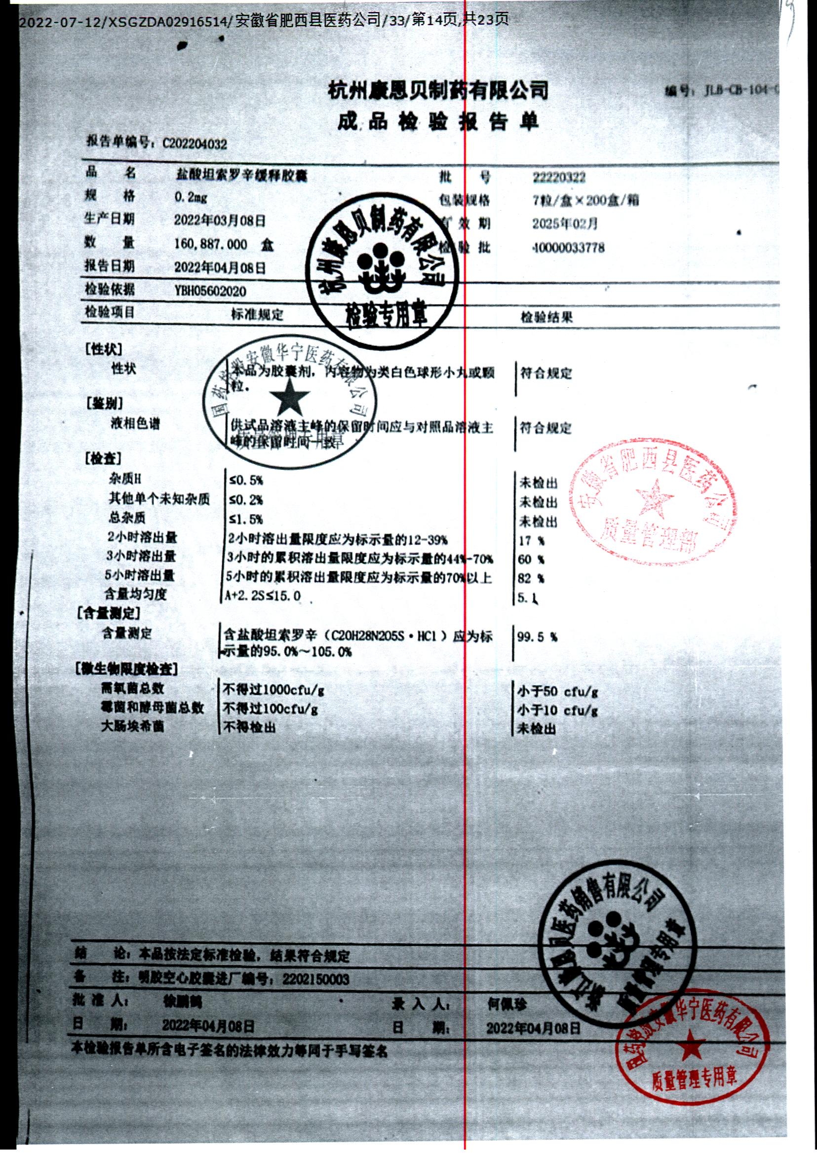 盐酸坦索罗辛缓释胶囊 | 0.2mg*7s | 22210702(1/2) | 查看详情 |