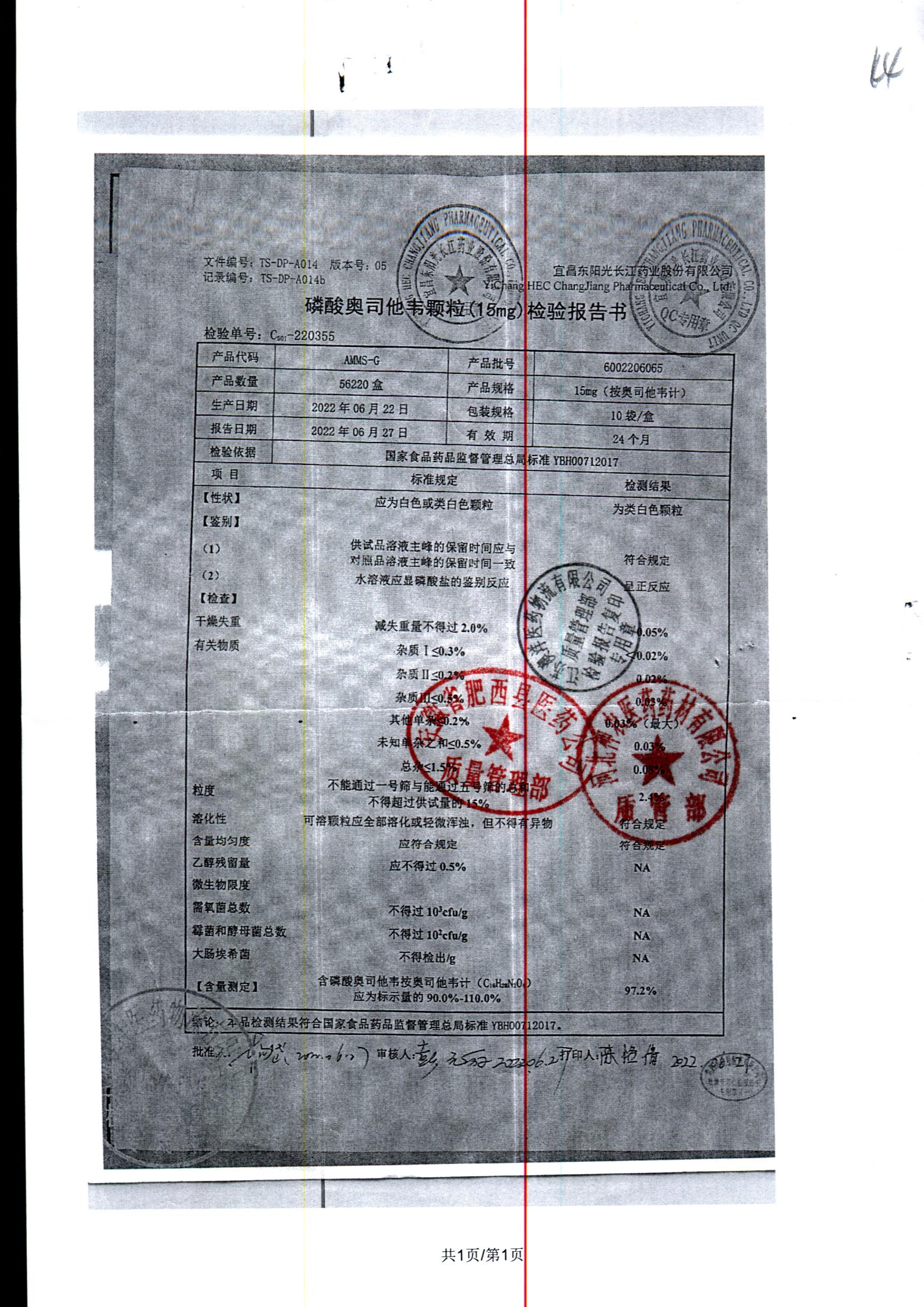 磷酸奥司他韦颗粒 | 15mg*10袋 | 6002311017 | 查看详情 |